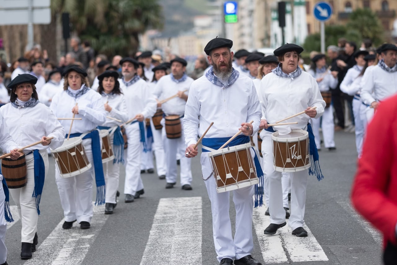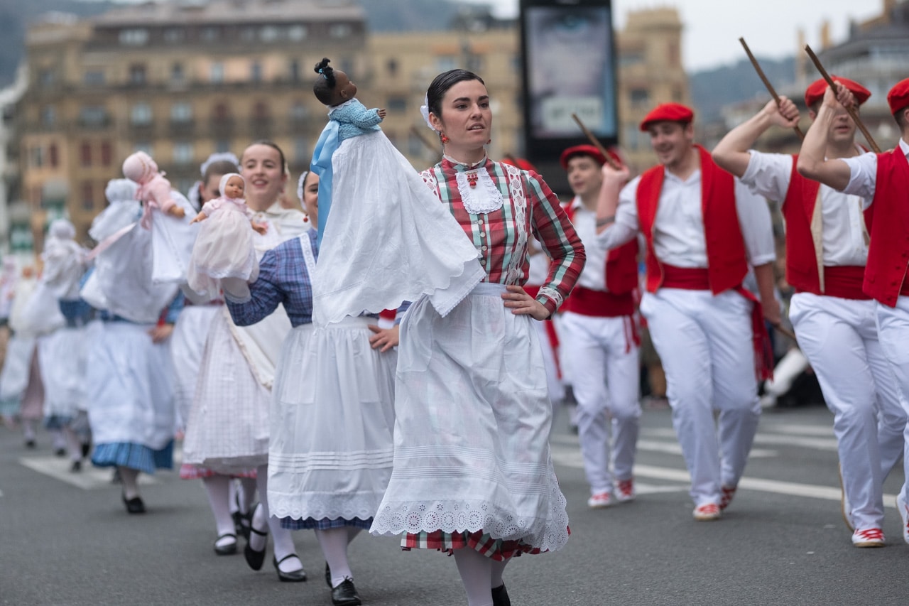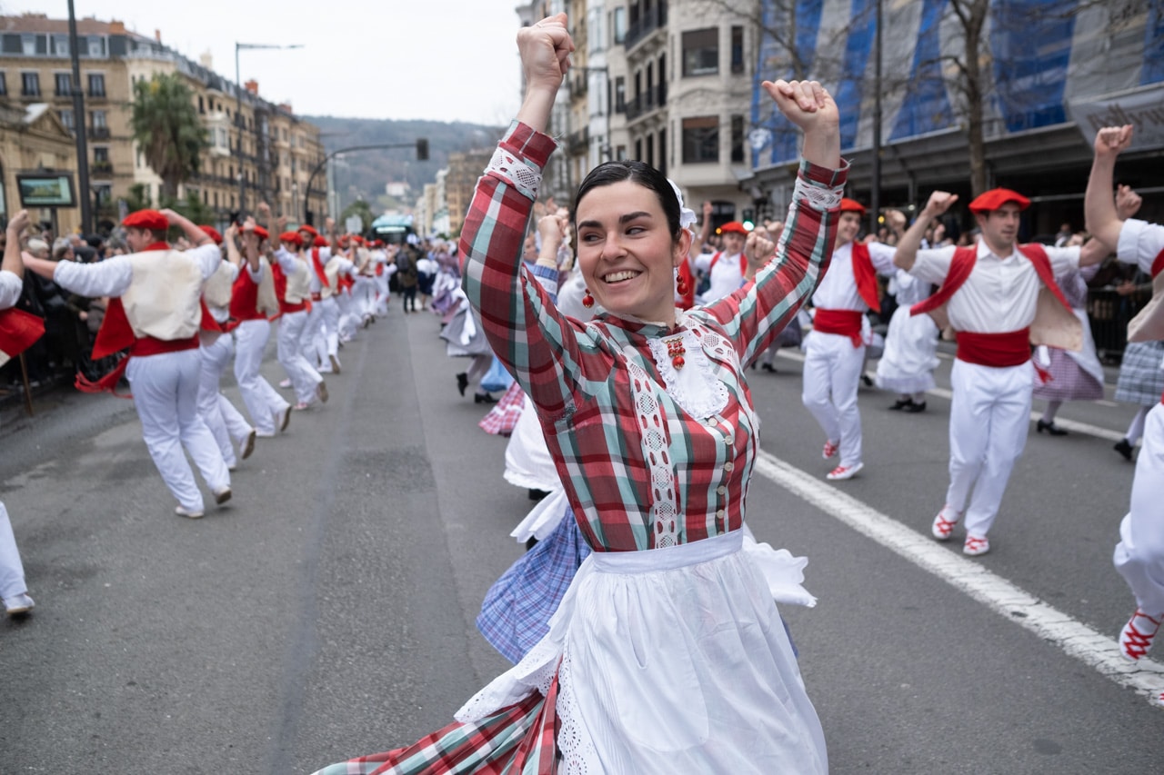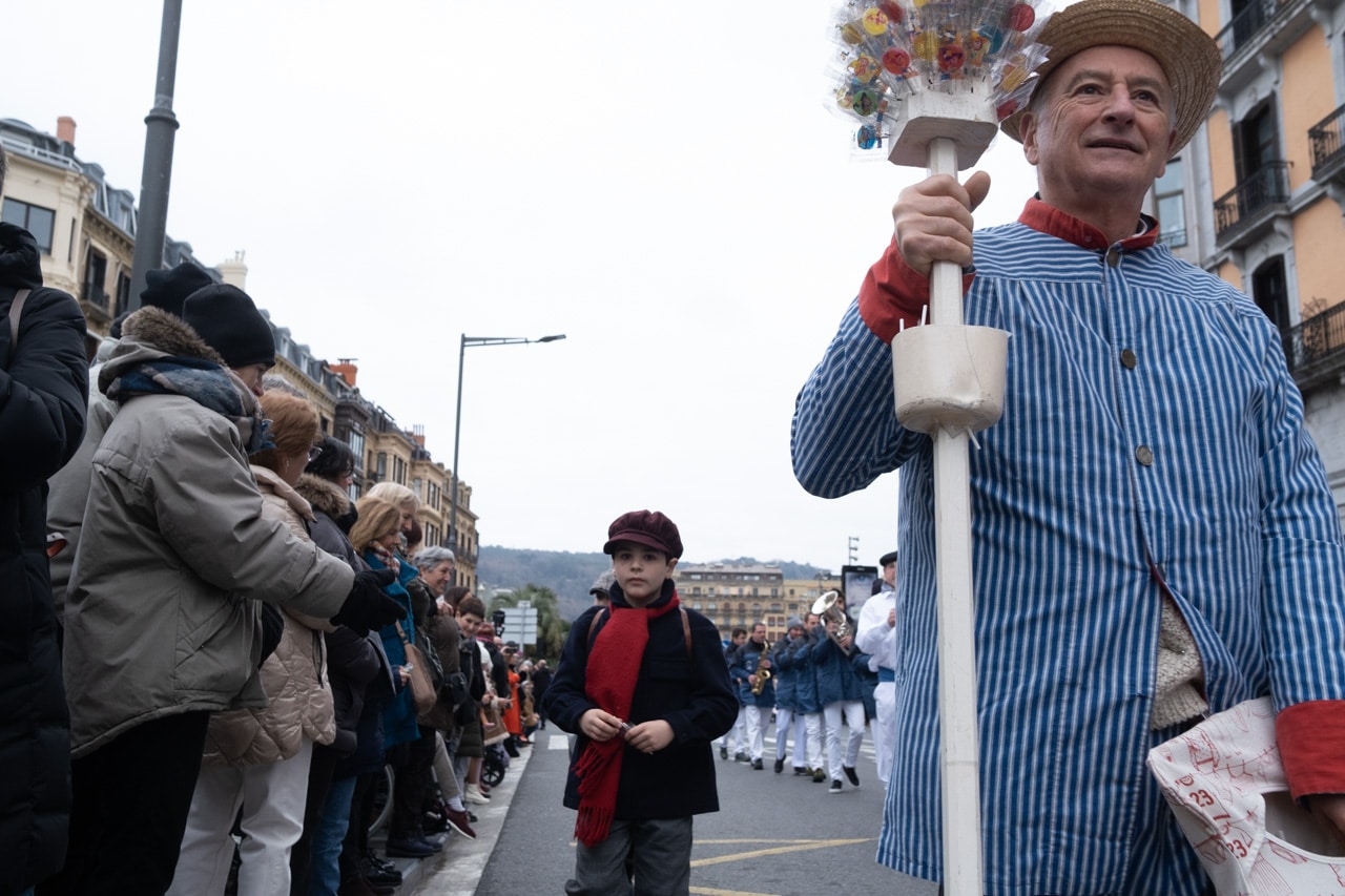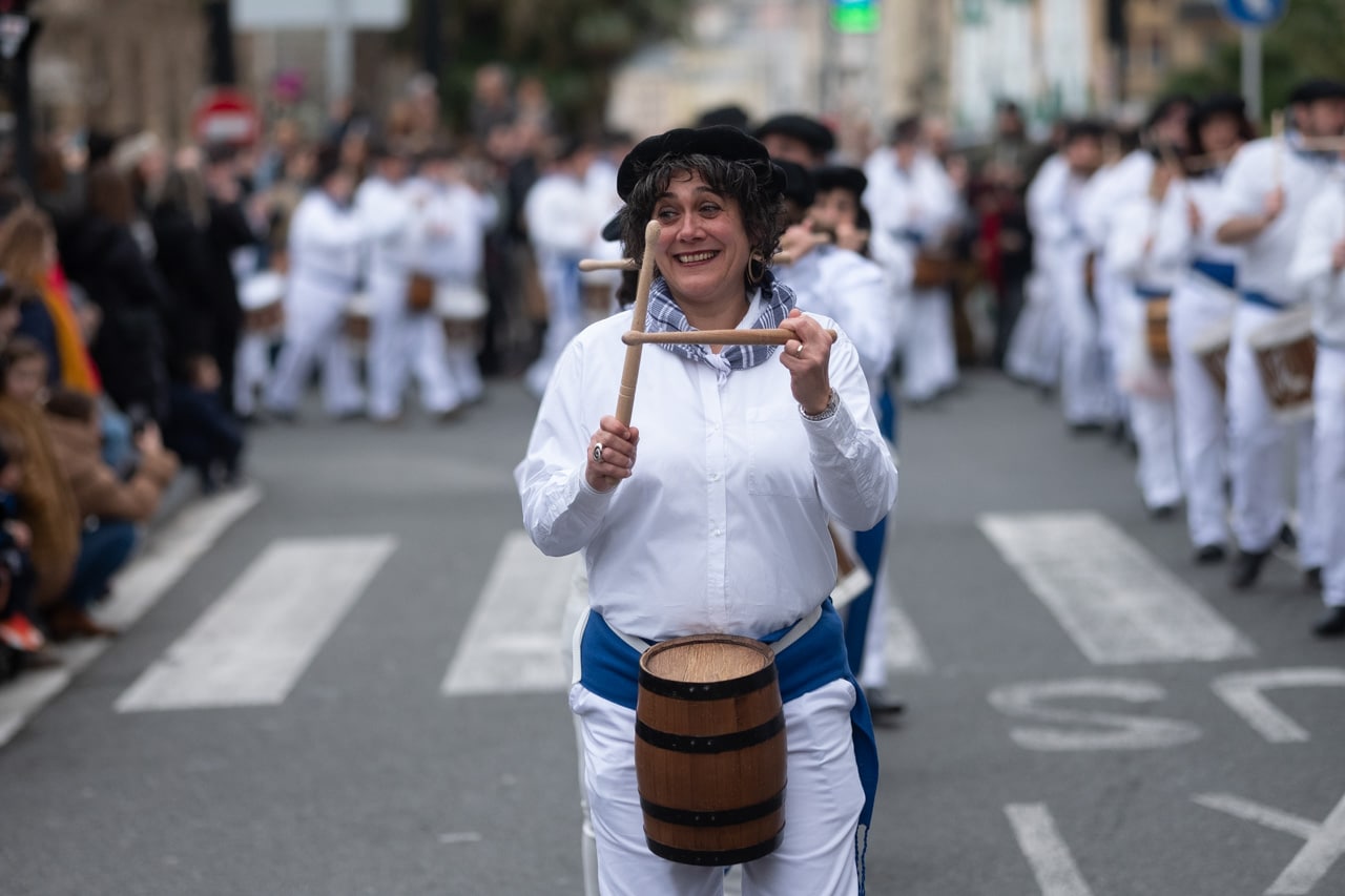 Una treintena de parejas ha participado este mediodía en la comparsa de “Inude eta Artzainak” de la Sociedad Kresala, que han salido este mediodía acompañadas por la txaranga The Joselontxos´s. También ha habido comparsas en Amara-Riberas y en Gros.