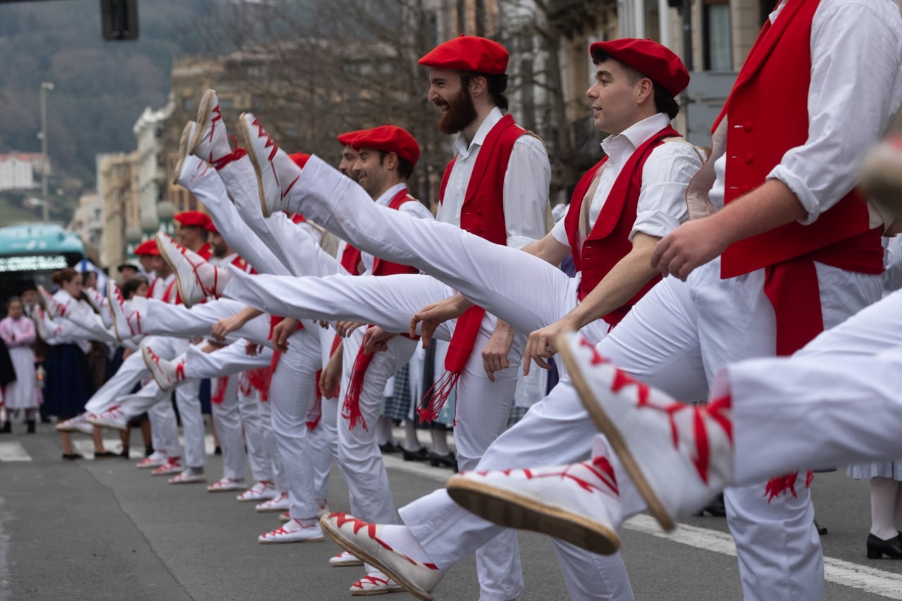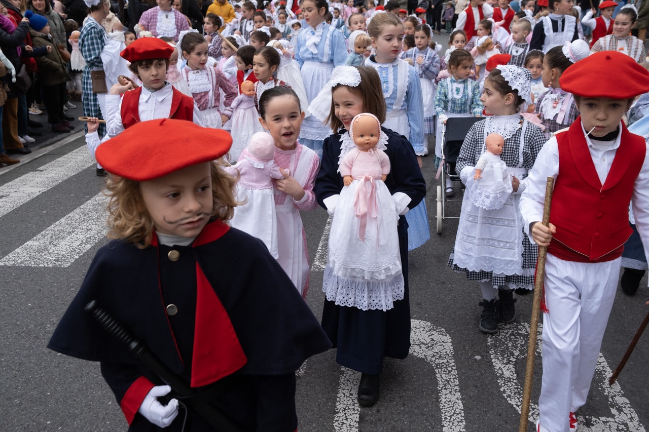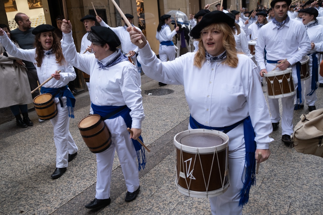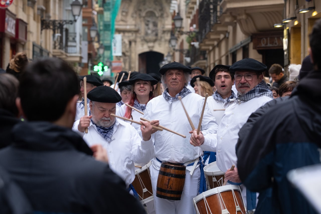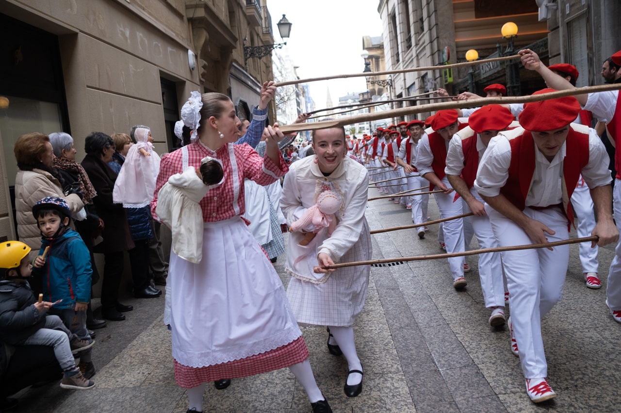 Una treintena de parejas ha participado este mediodía en la comparsa de “Inude eta Artzainak” de la Sociedad Kresala, que han salido este mediodía acompañadas por la txaranga The Joselontxos´s. También ha habido comparsas en Amara-Riberas y en Gros.