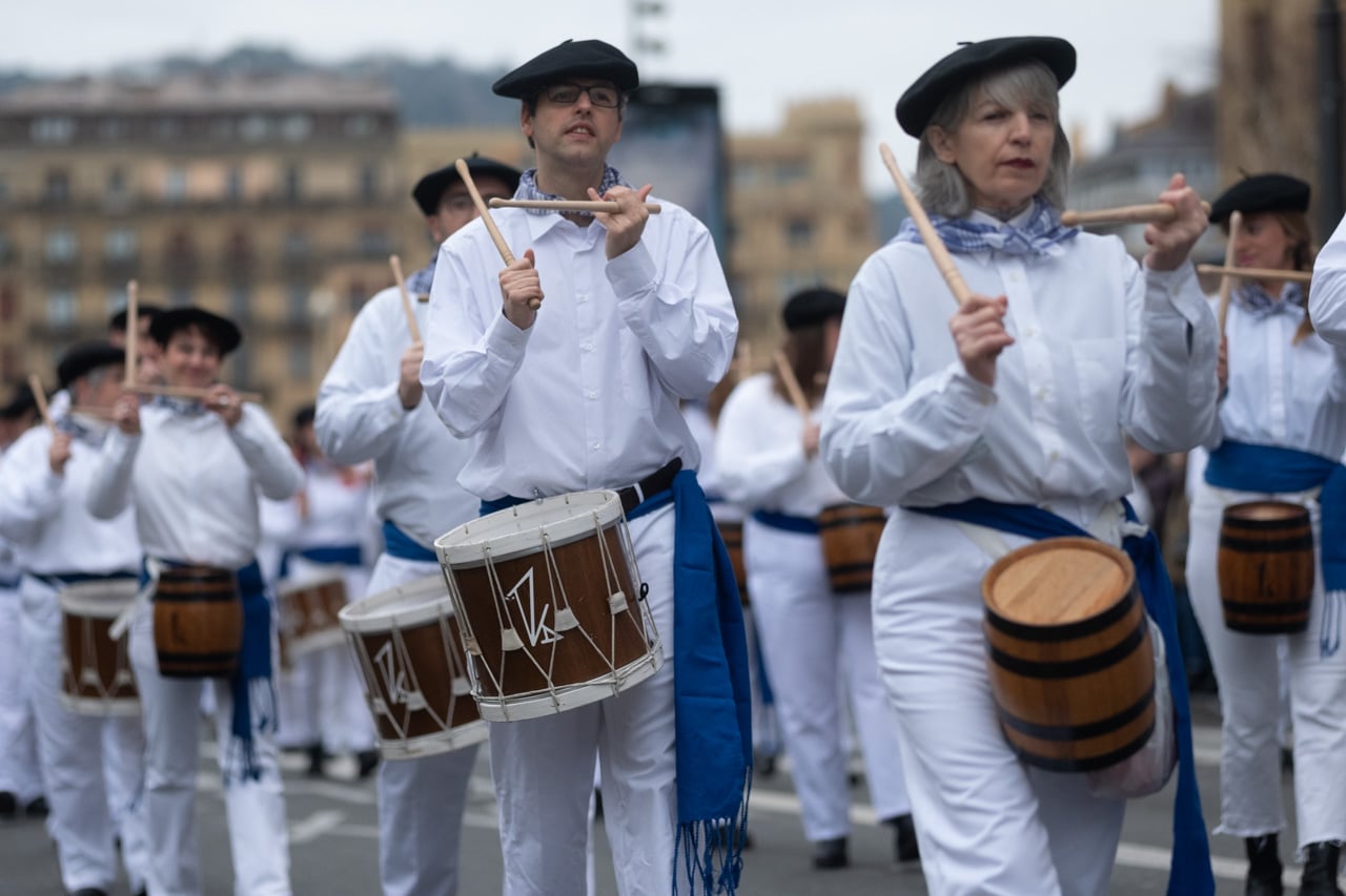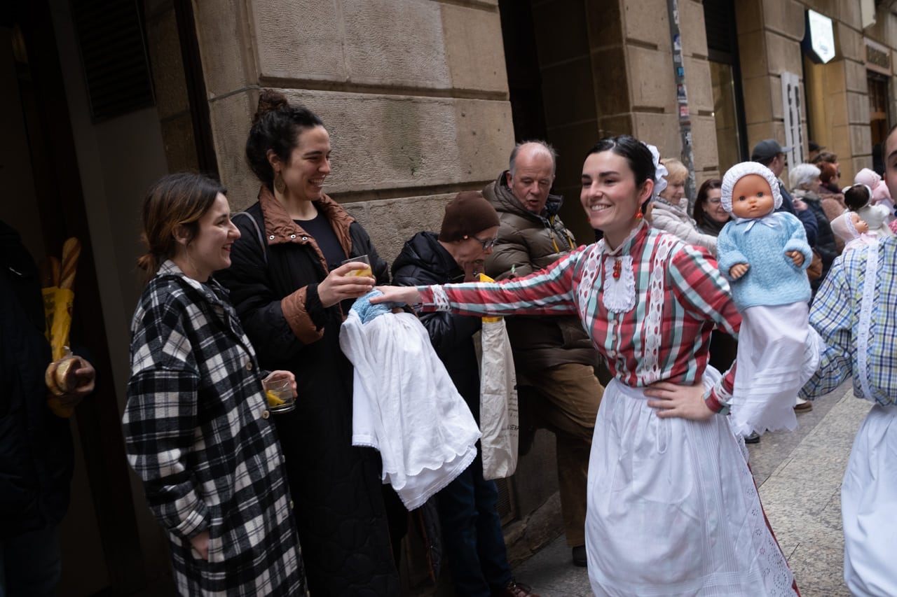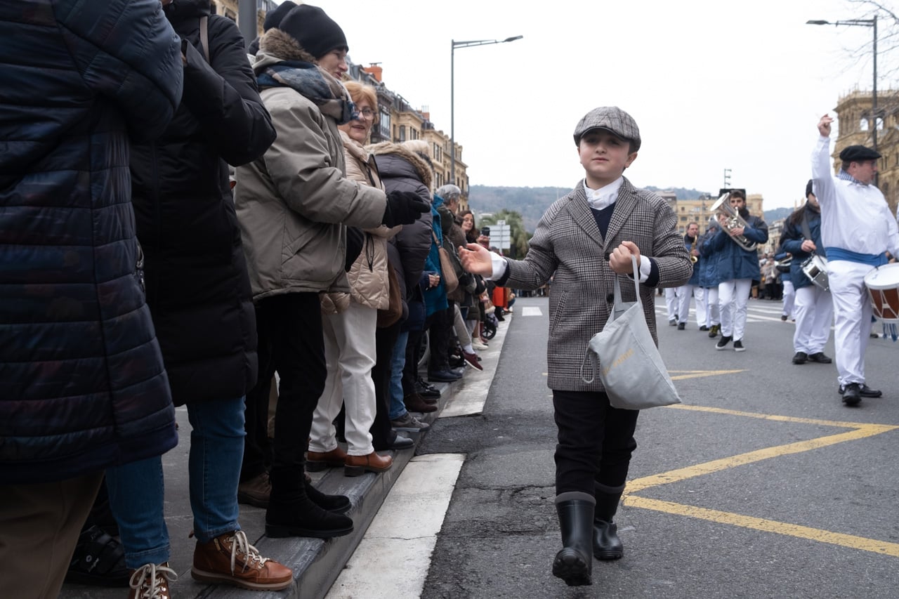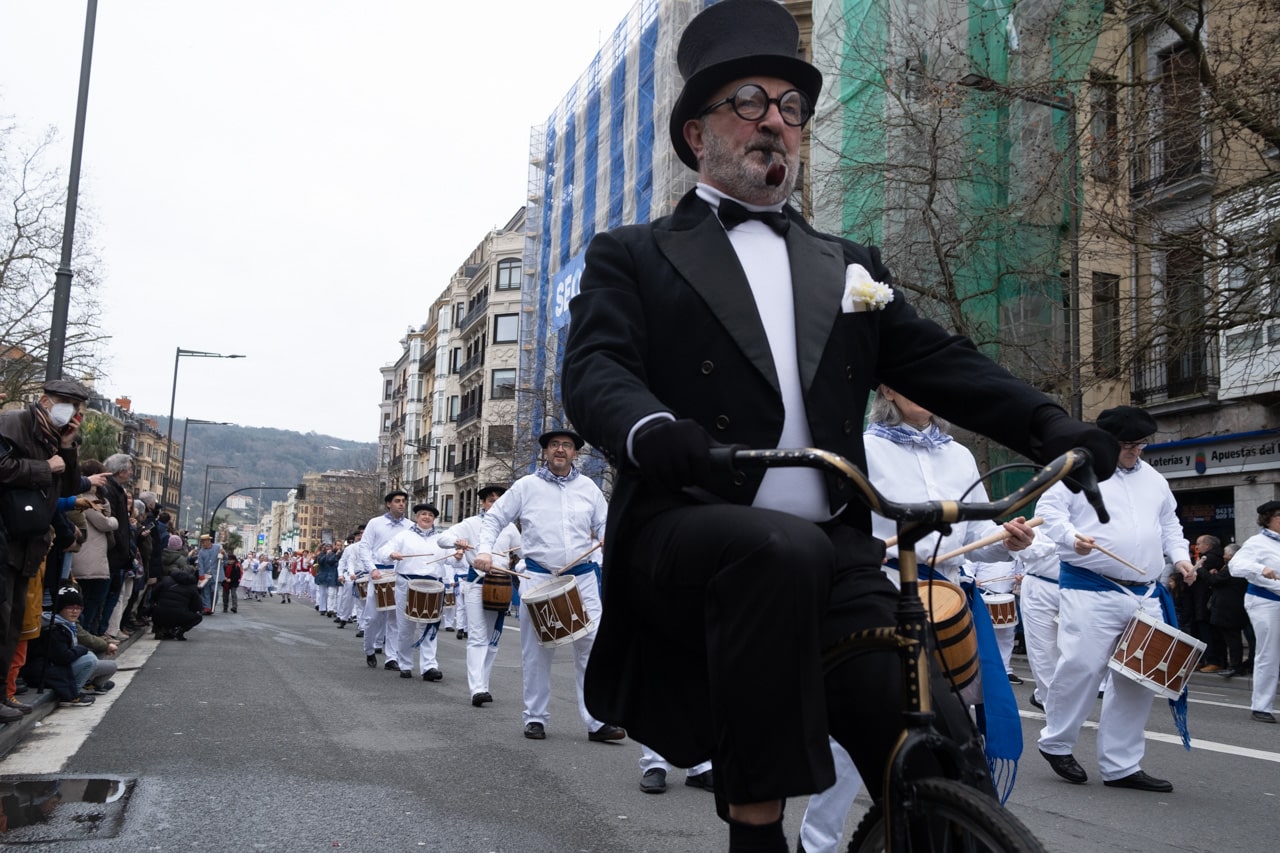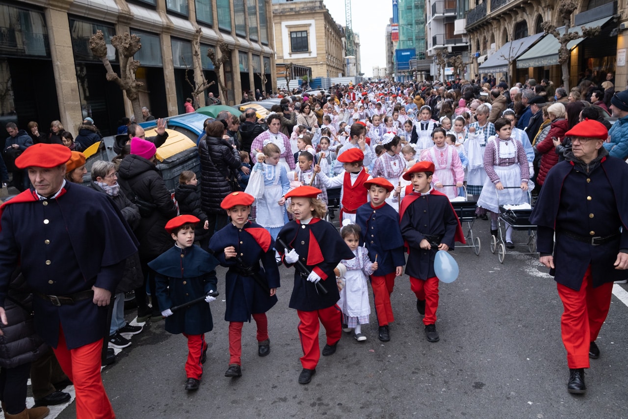 Una treintena de parejas ha participado este mediodía en la comparsa de “Inude eta Artzainak” de la Sociedad Kresala, que han salido este mediodía acompañadas por la txaranga The Joselontxos´s. También ha habido comparsas en Amara-Riberas y en Gros.