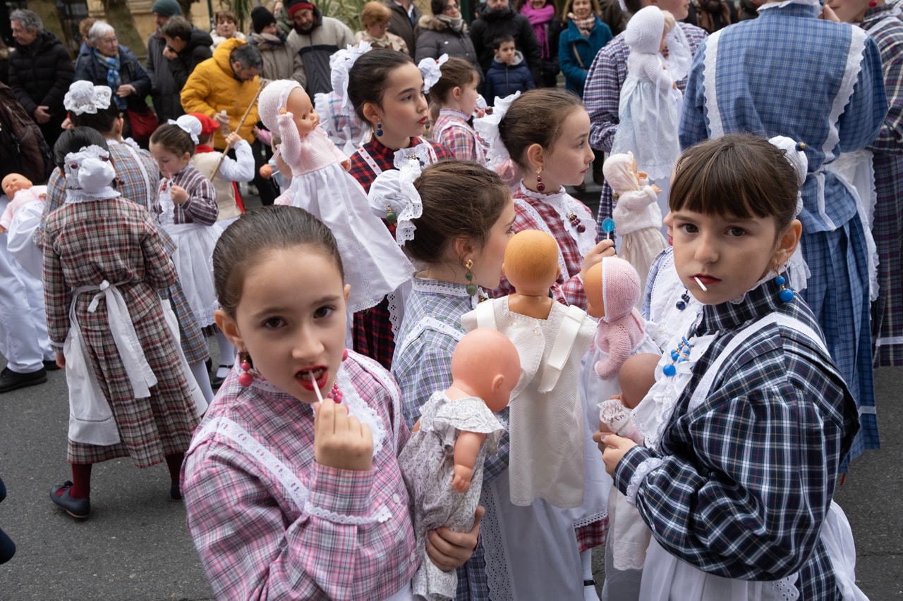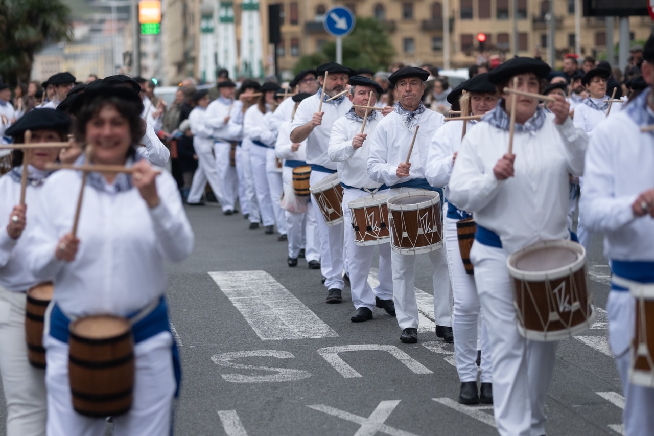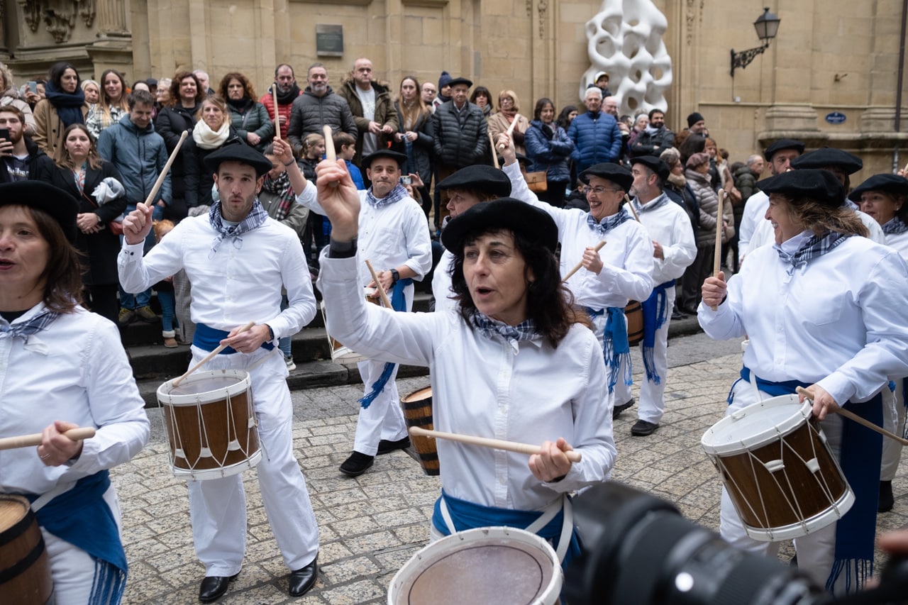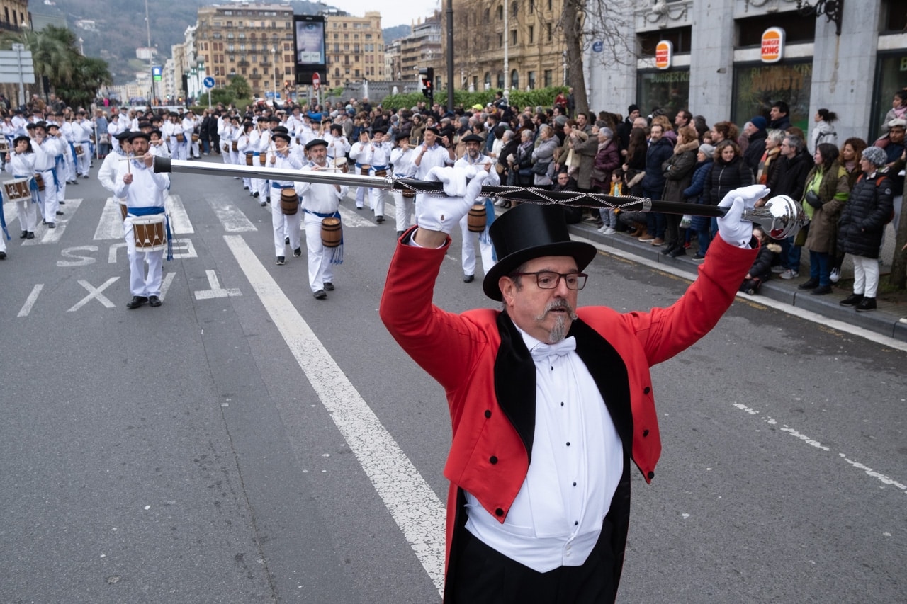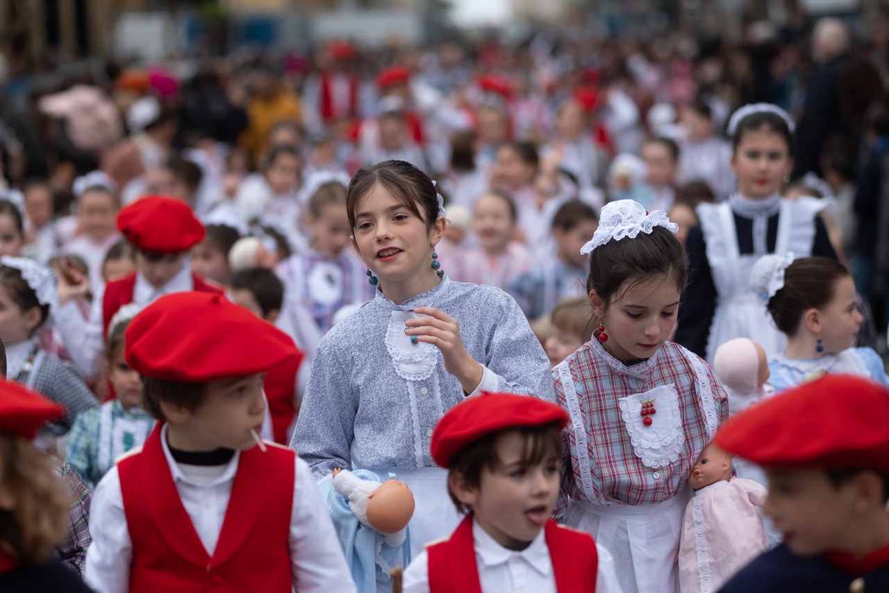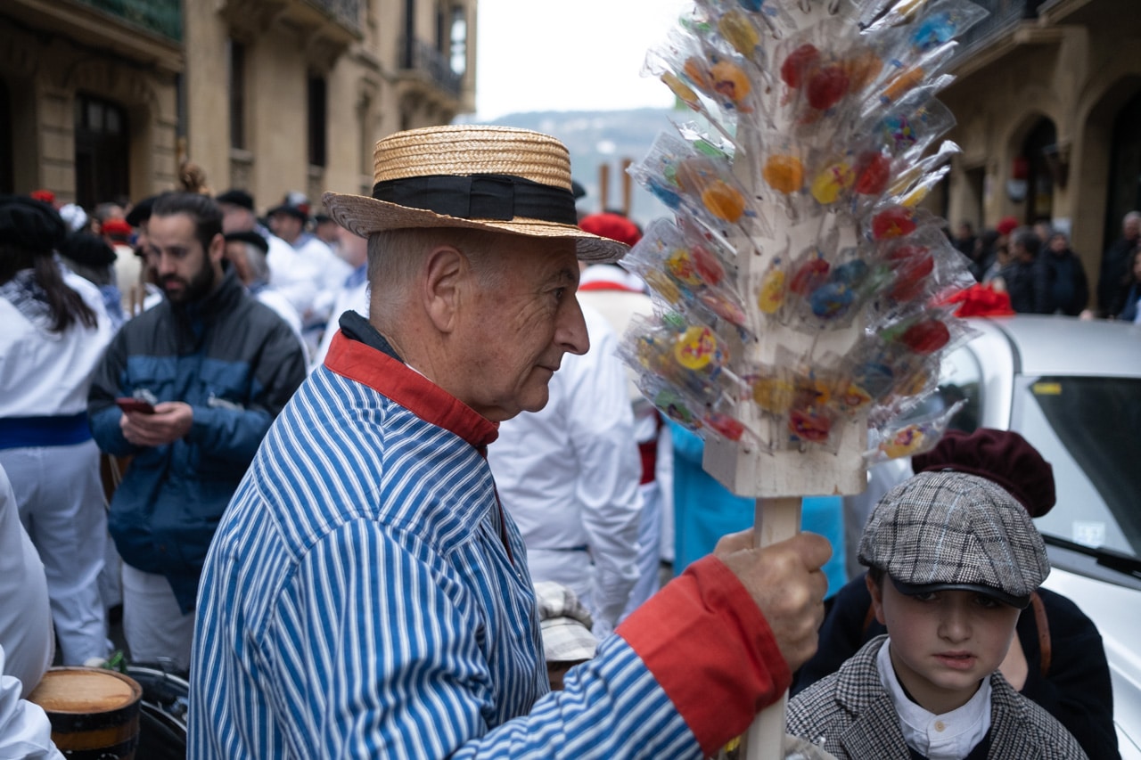 Una treintena de parejas ha participado este mediodía en la comparsa de “Inude eta Artzainak” de la Sociedad Kresala, que han salido este mediodía acompañadas por la txaranga The Joselontxos´s. También ha habido comparsas en Amara-Riberas y en Gros.
