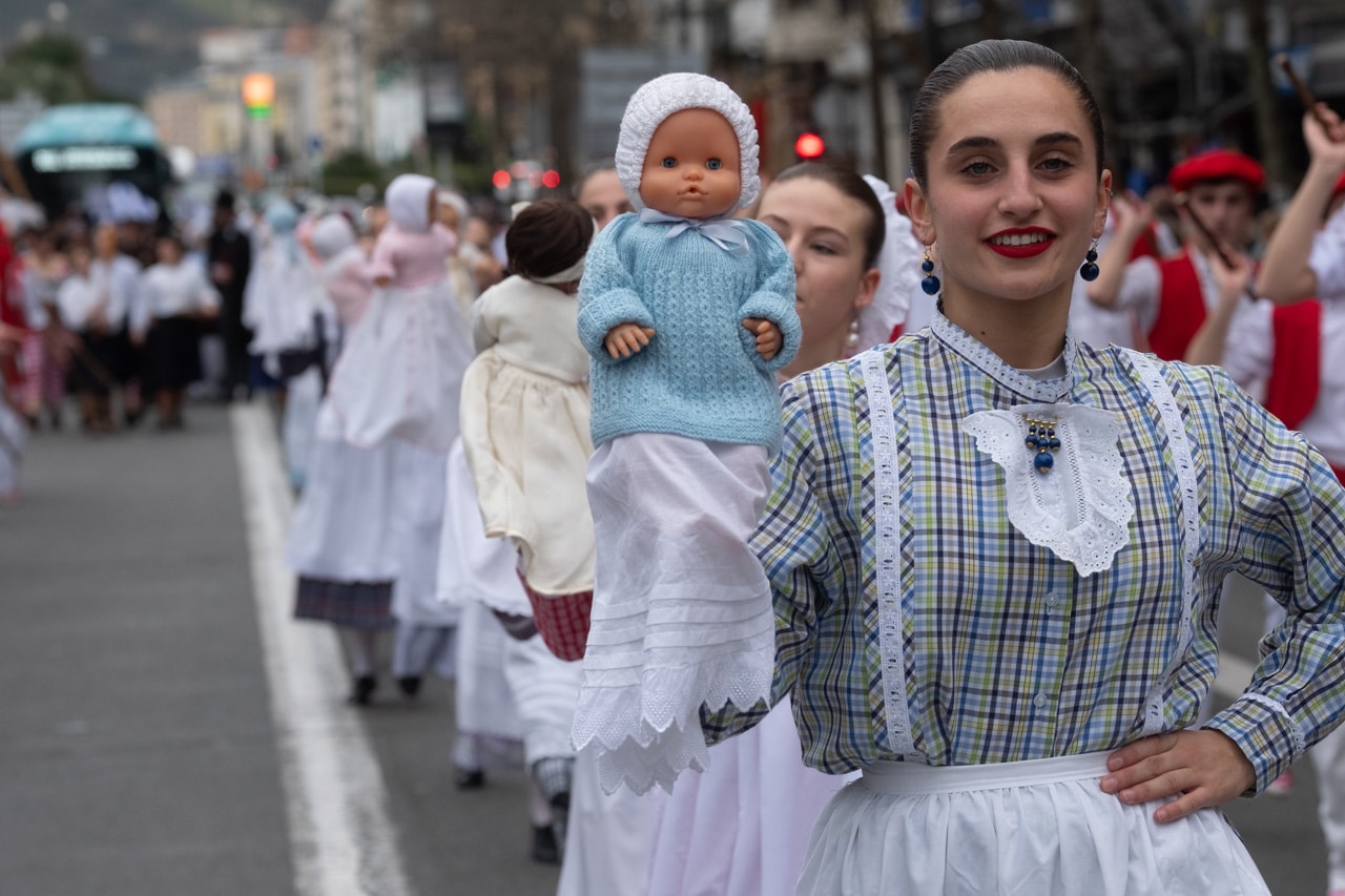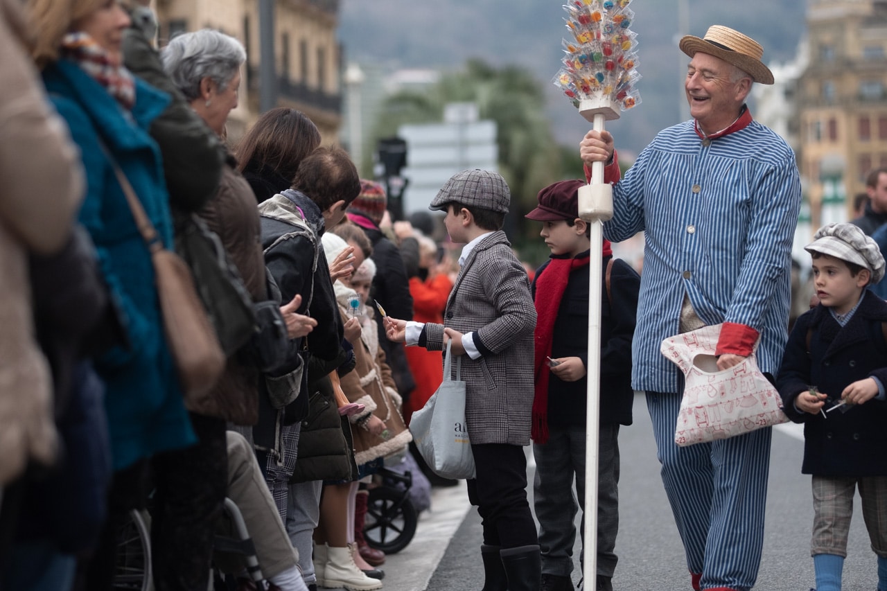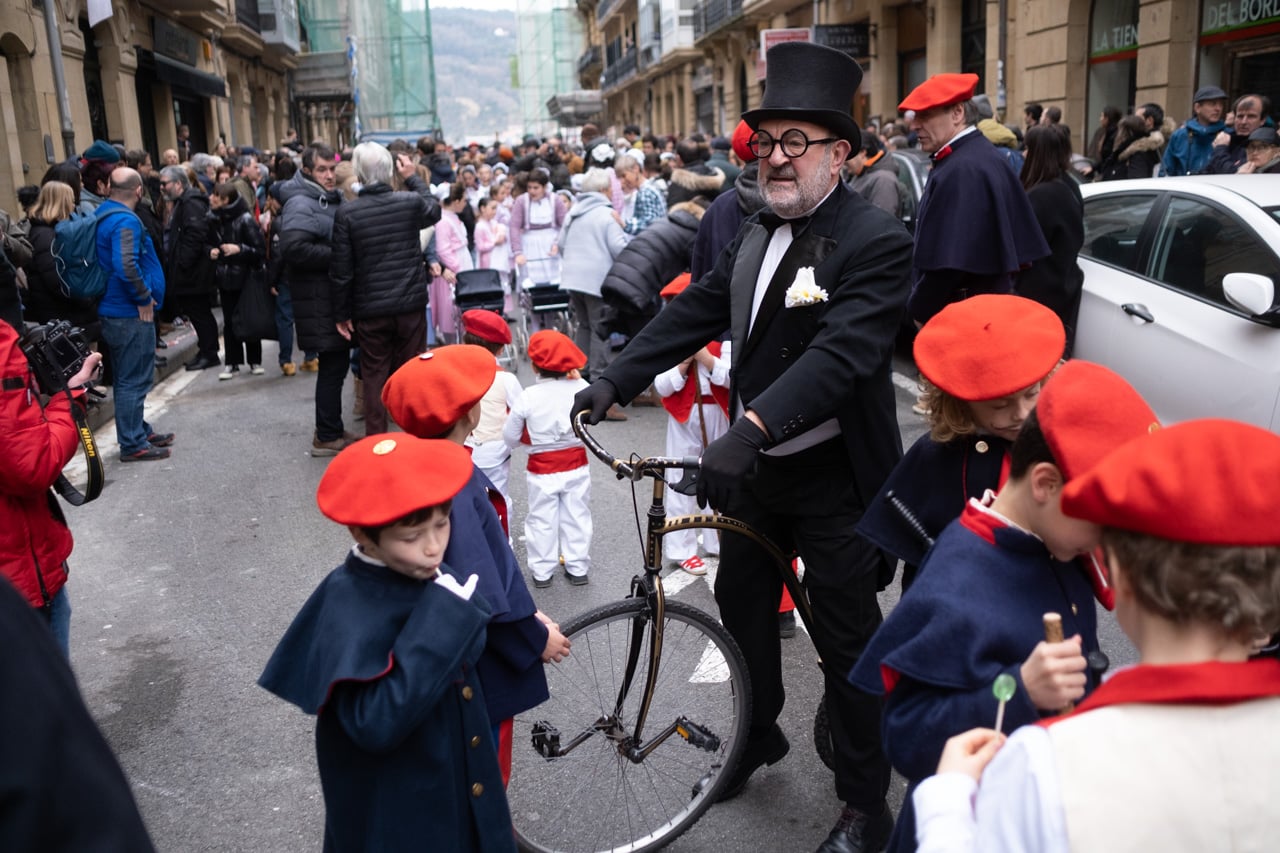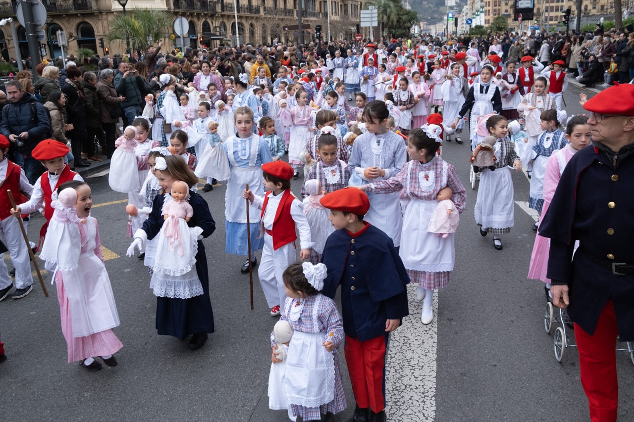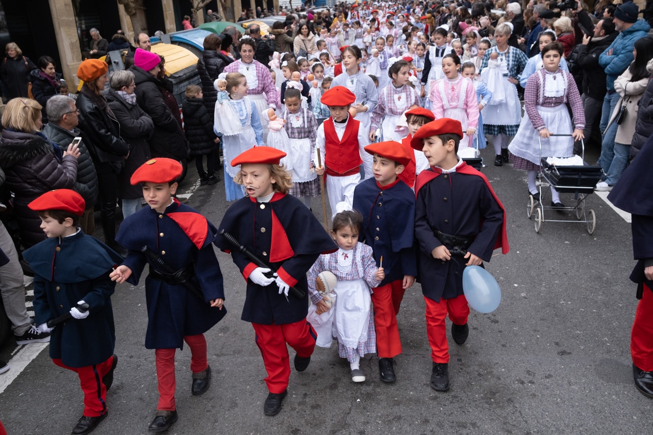 Una treintena de parejas ha participado este mediodía en la comparsa de “Inude eta Artzainak” de la Sociedad Kresala, que han salido este mediodía acompañadas por la txaranga The Joselontxos´s. También ha habido comparsas en Amara-Riberas y en Gros.