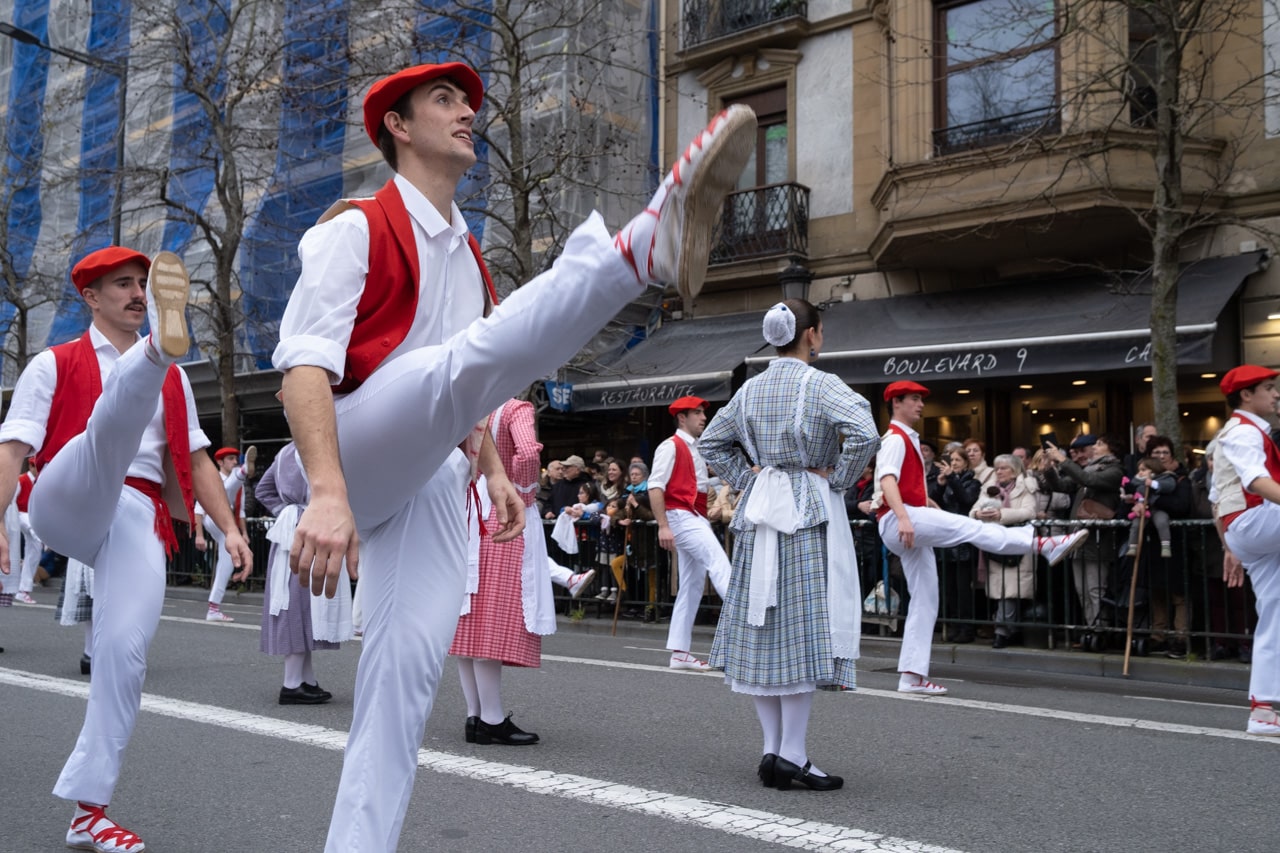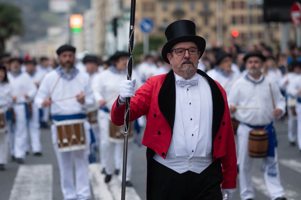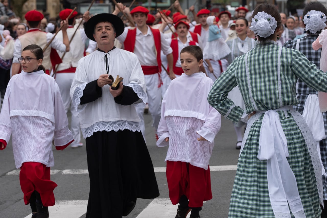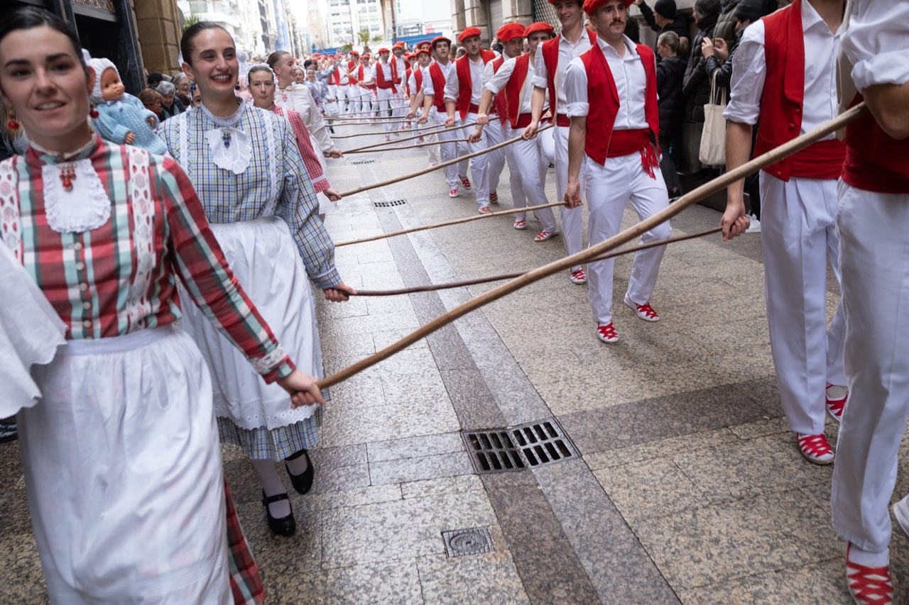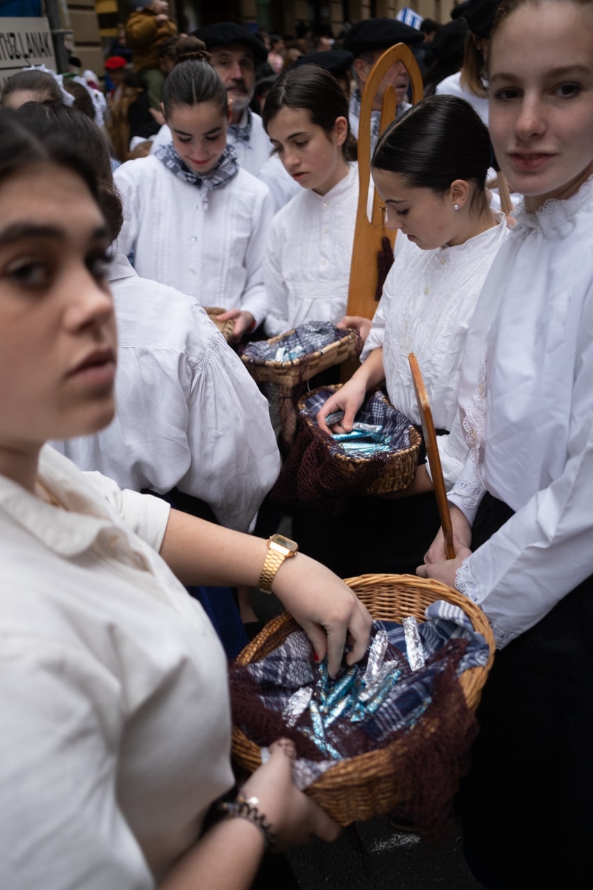 Una treintena de parejas ha participado este mediodía en la comparsa de “Inude eta Artzainak” de la Sociedad Kresala, que han salido este mediodía acompañadas por la txaranga The Joselontxos´s. También ha habido comparsas en Amara-Riberas y en Gros.