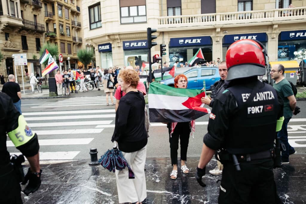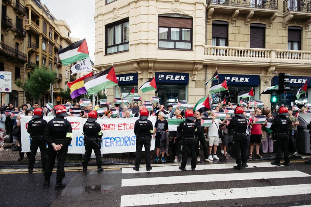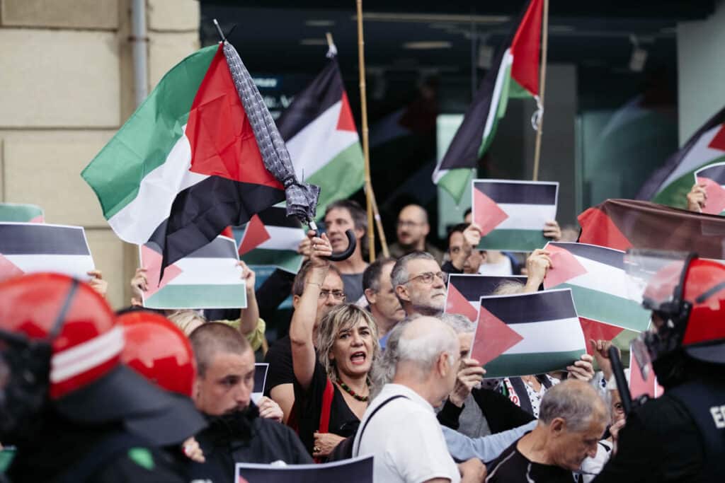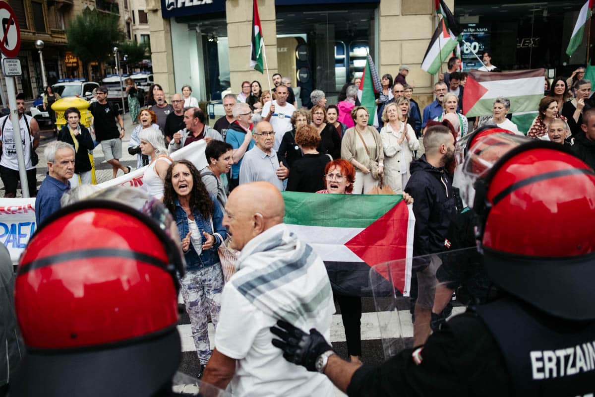 Momentos de mucha tensión se vivieron este miércoles por la noche ante el Kursaal donostiarra entre una docena de efectivos de la Ertzaintza y un centenar de manifestantes pro Palestina, que acudieron en protesta por el concierto de Andrés Calamaro. Cabe recordar que el músico ha salido en varias ocasiones a la palestra por sus manifestaciones a favor de Israel.