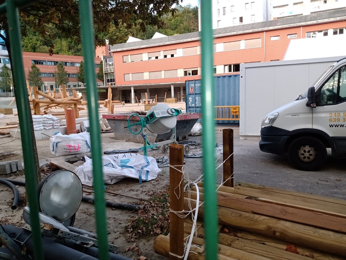 «Los padres de Amara Berri Morlans no celebramos el estreno del nuevo patio, que por ahora parece que está lejos, y los niños tampoco porque las obras son un incordio. Esta obra empezó tarde y va lentísima», denuncia L.I, que lleva a una niña al citado colegio y ha hecho hoy unas fotos desde el exterior del centro.