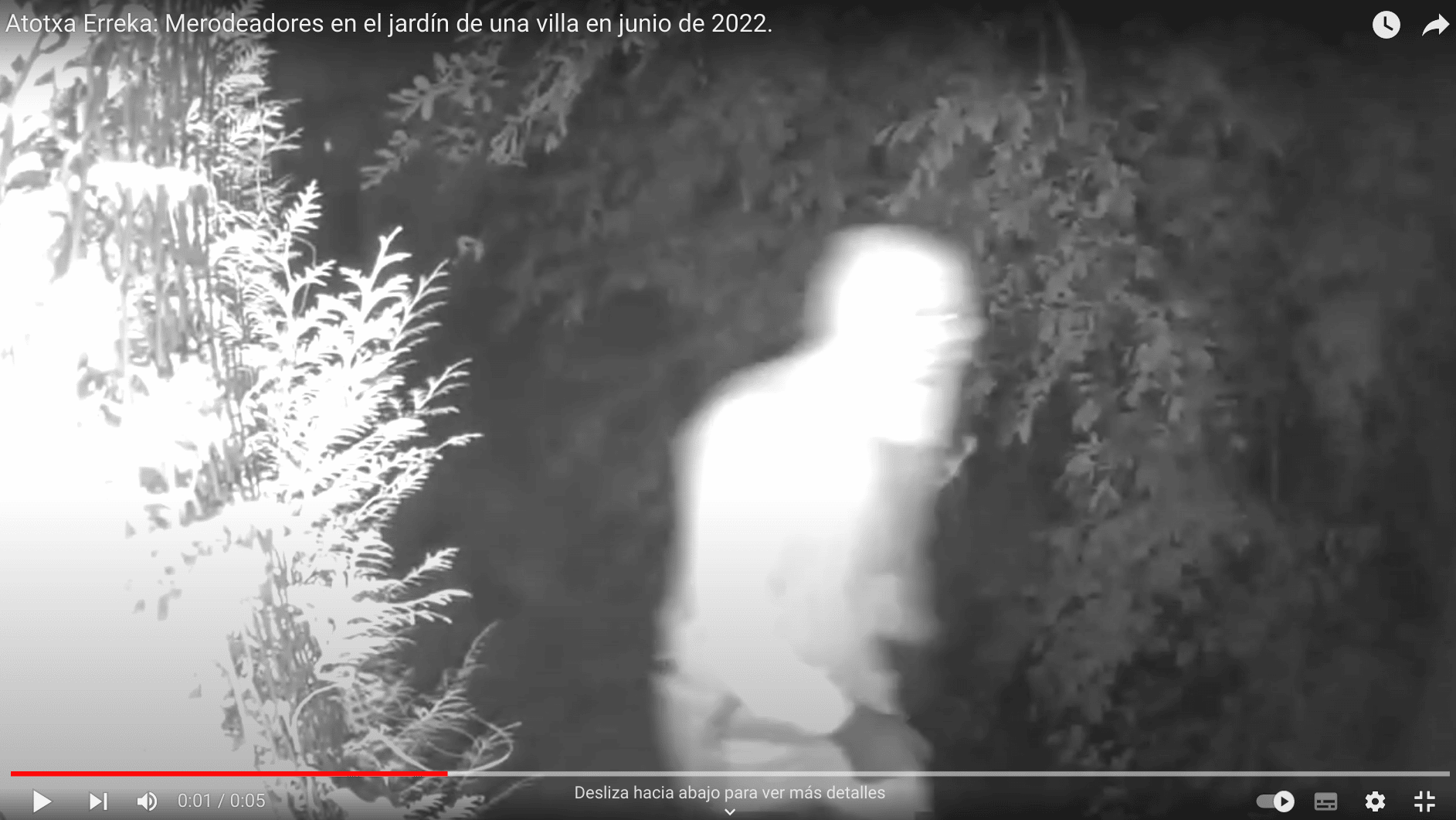 La cámara, que se conecta cuando hay movimiento, detectó en la noche del pasado sábado la imagen de una persona, encapuchada y con guantes, que se encontraba en el interior del jardín, y que hablaba en susurros con otra (o con otras). Cuando los merodeadores fueron conscientes de que había una cámara, abandonaron la villa.