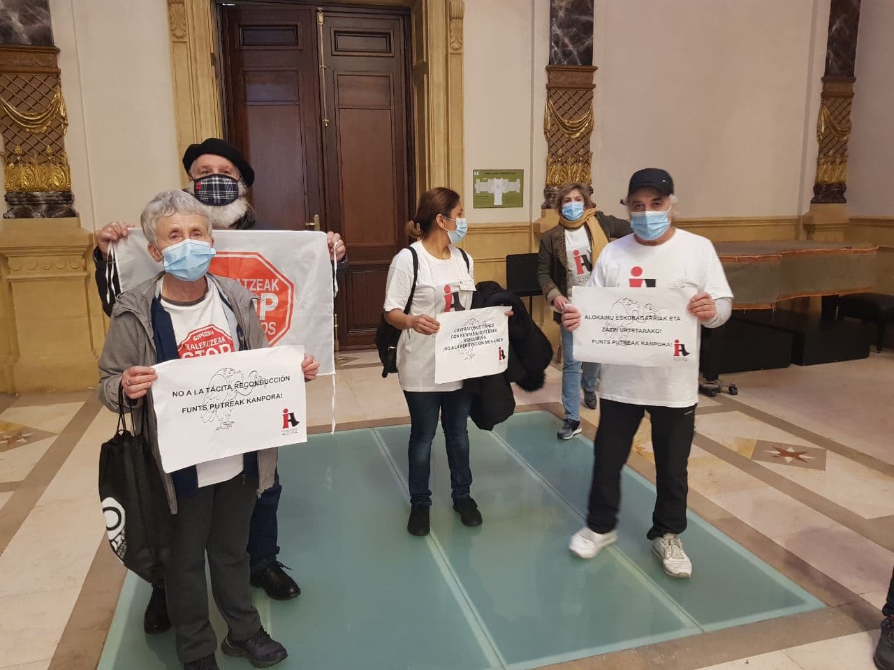 Inquilinos de Azora ha trasladado hoy su sensación de incertidumbre al Ayuntamiento donostiarra, donde Elkarrekin Donostia y EH Bildu han presentado una moción de control reclamando al Gobierno municipal su mediación con el fondo Buitre Azora. «Se ha cumplido ya un año desde que se produjo la compra de los inmuebles de la Inmobiliaria Vascongada por parte del fondo Buitre y, a pesar del compromiso de intermediación que anunció el alcalde, los inquilinos seguimos sin tener ningún tipo de garantías sobre nuestros alquileres», advierten los vecinos, que han contado una vez más con el apoyo de Stop Desahucios.