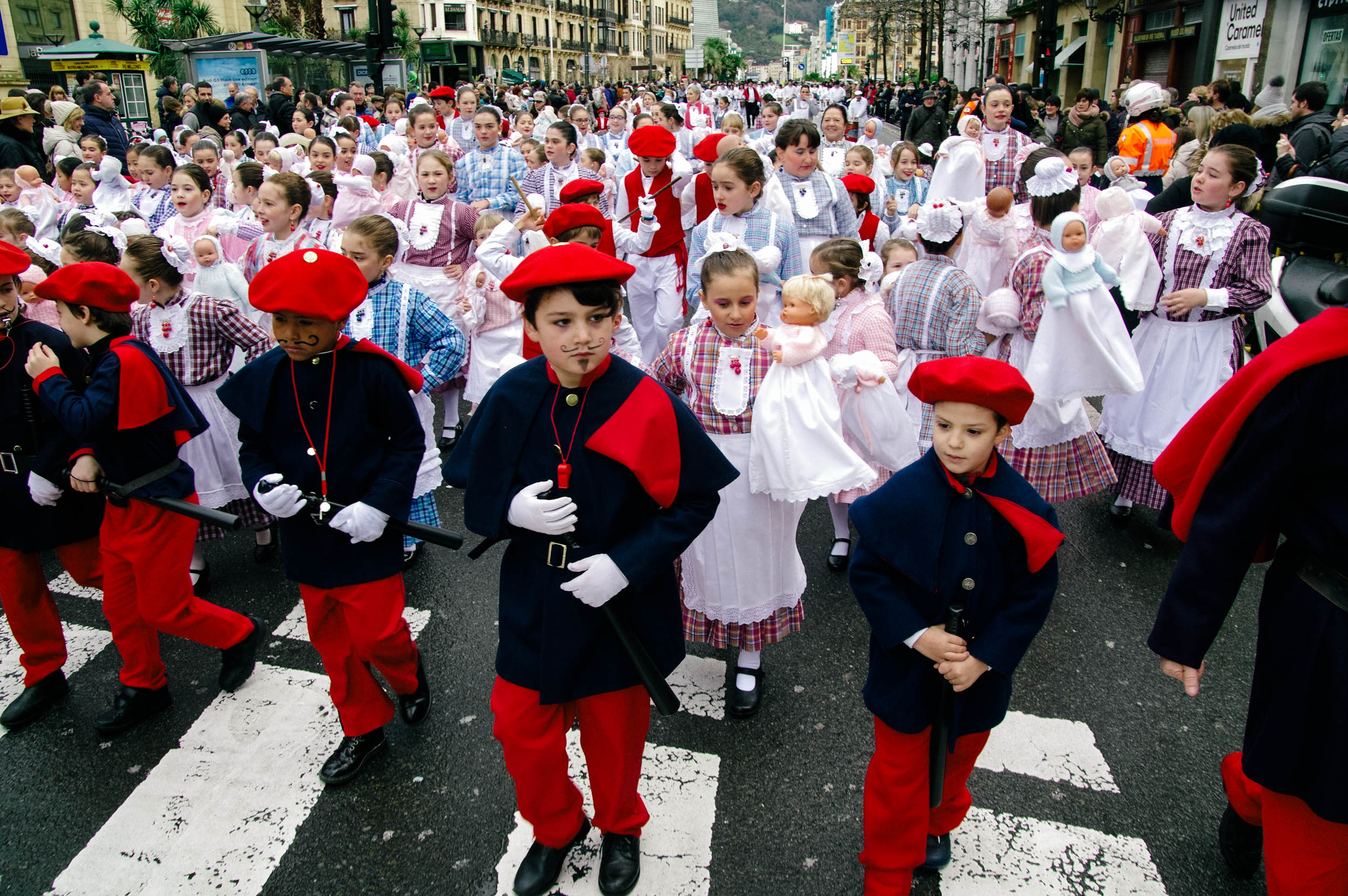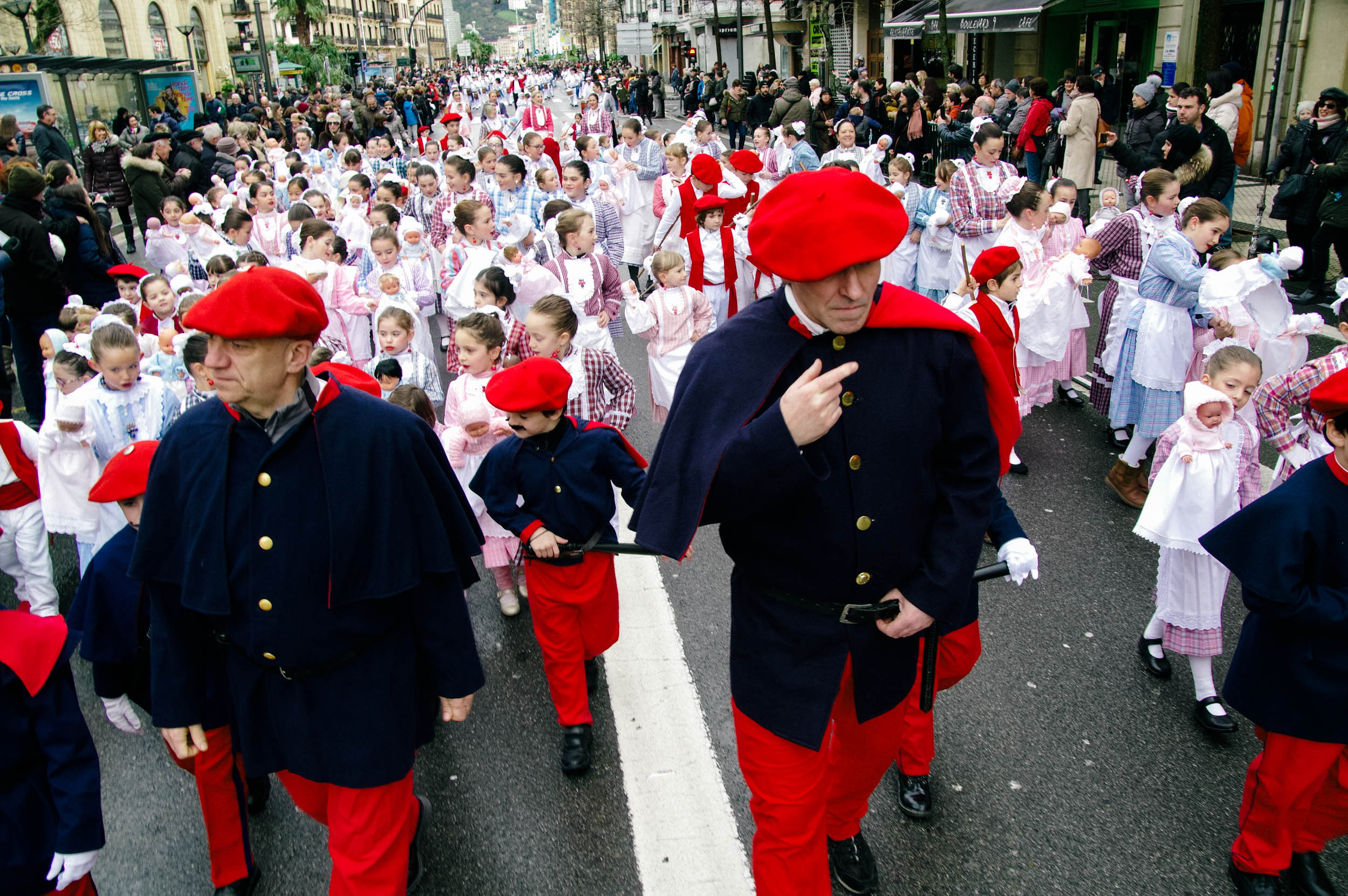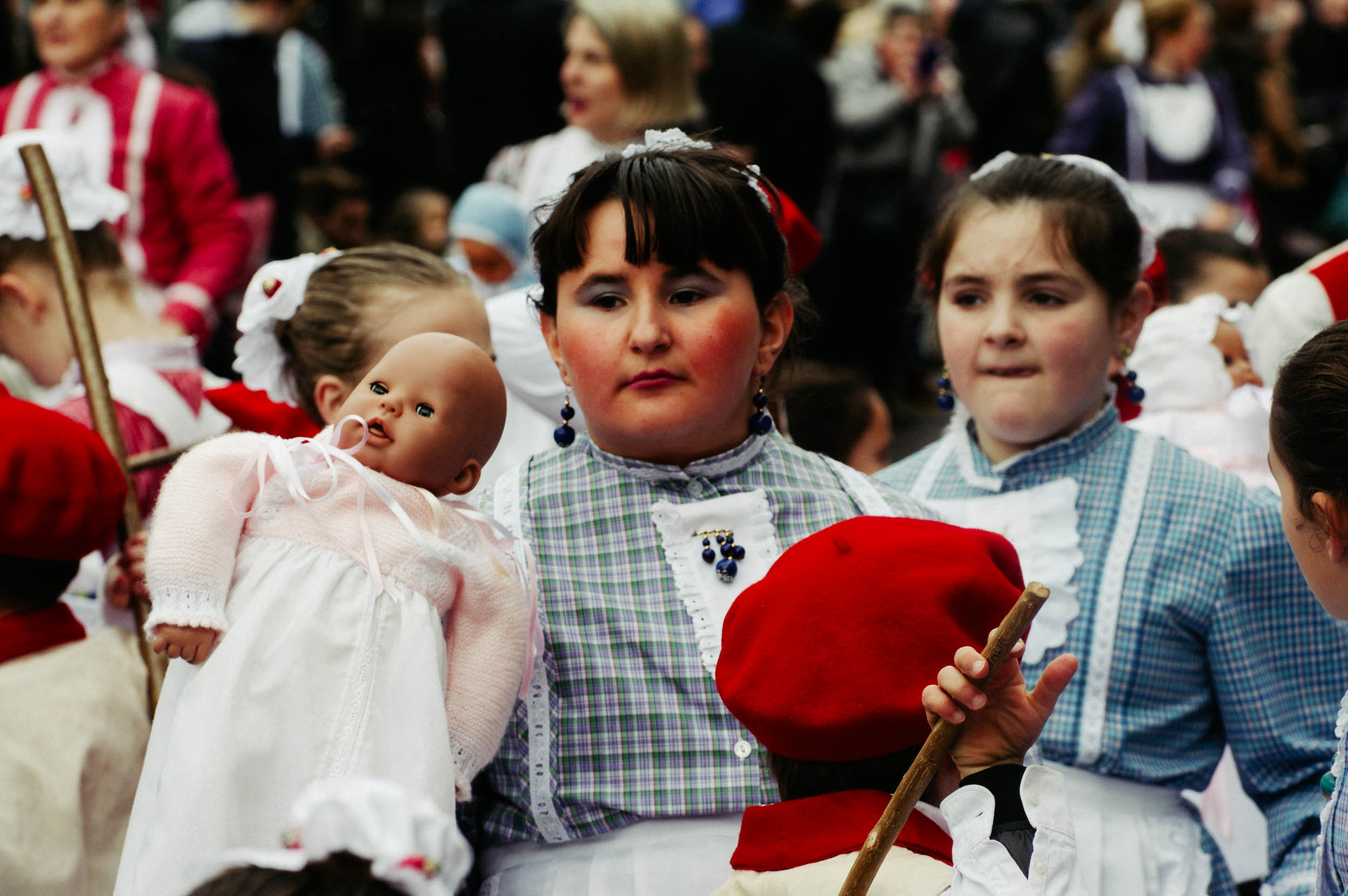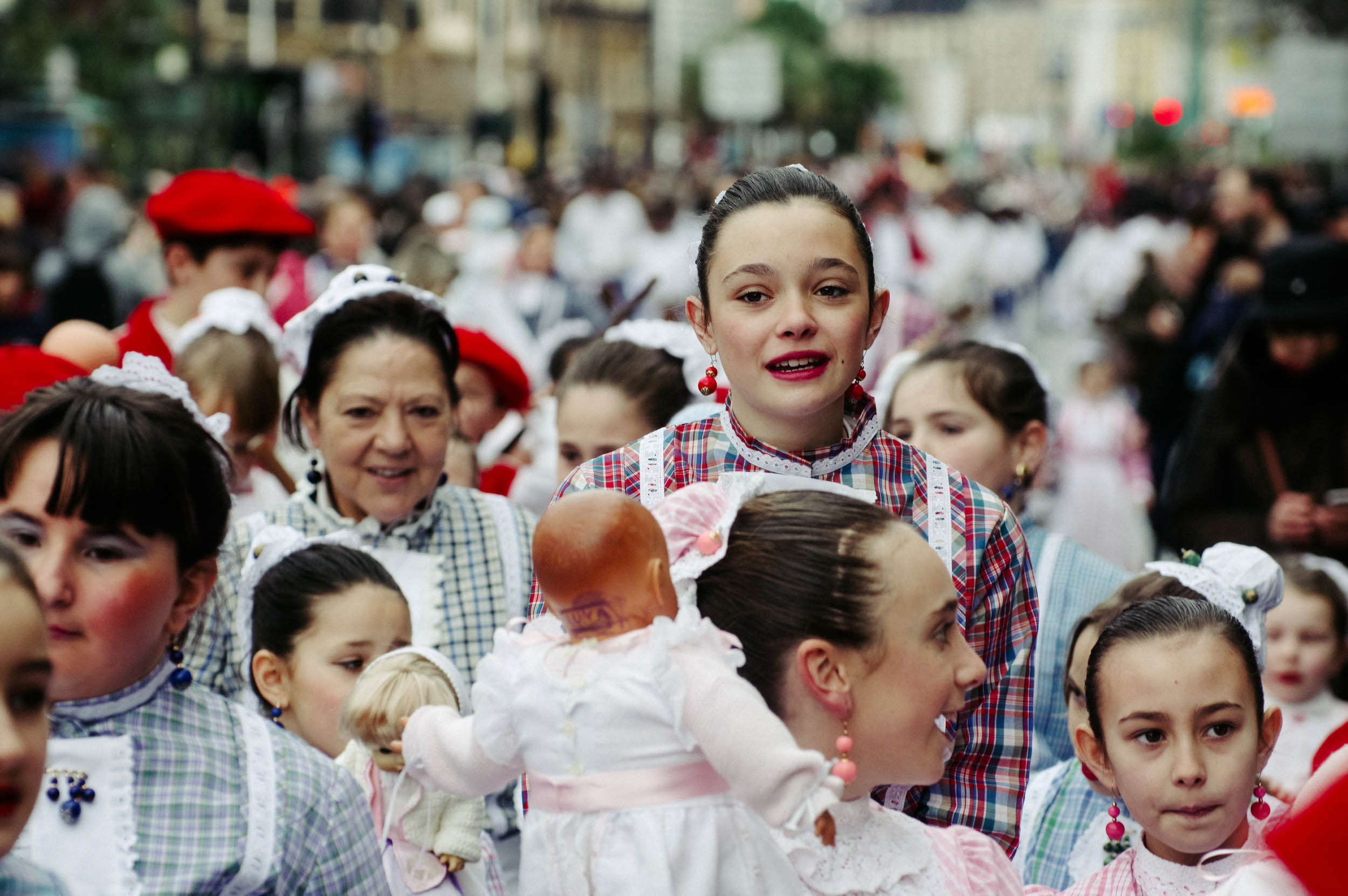 Inudes y artzaiak, nodrizas y pastores, han desfilado un año más por la Parte Vieja (con el perdón de la lluvia hasta que han entrado en la plaza de la Constitución) con los galanteos propios de la fiesta y con muy buen ambiente pese al tiempo. Como todos los años inudes y artzaiak han recorrido las calles con la música de Sarriegui moviendo sus ‘bebés’ con su particular coreografía en una tradición que se remonta a 1885 y que cobra fuerza año tras año.