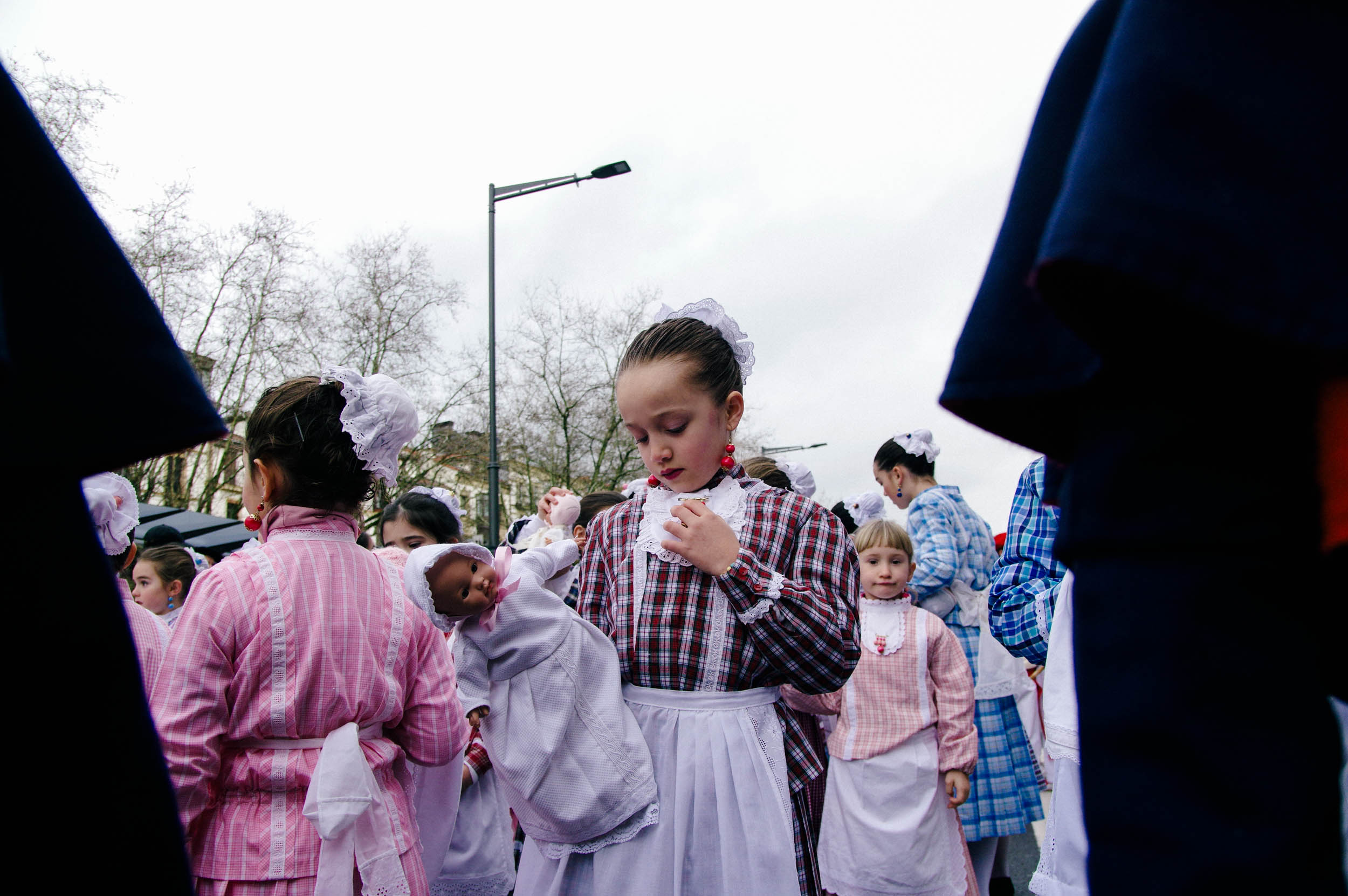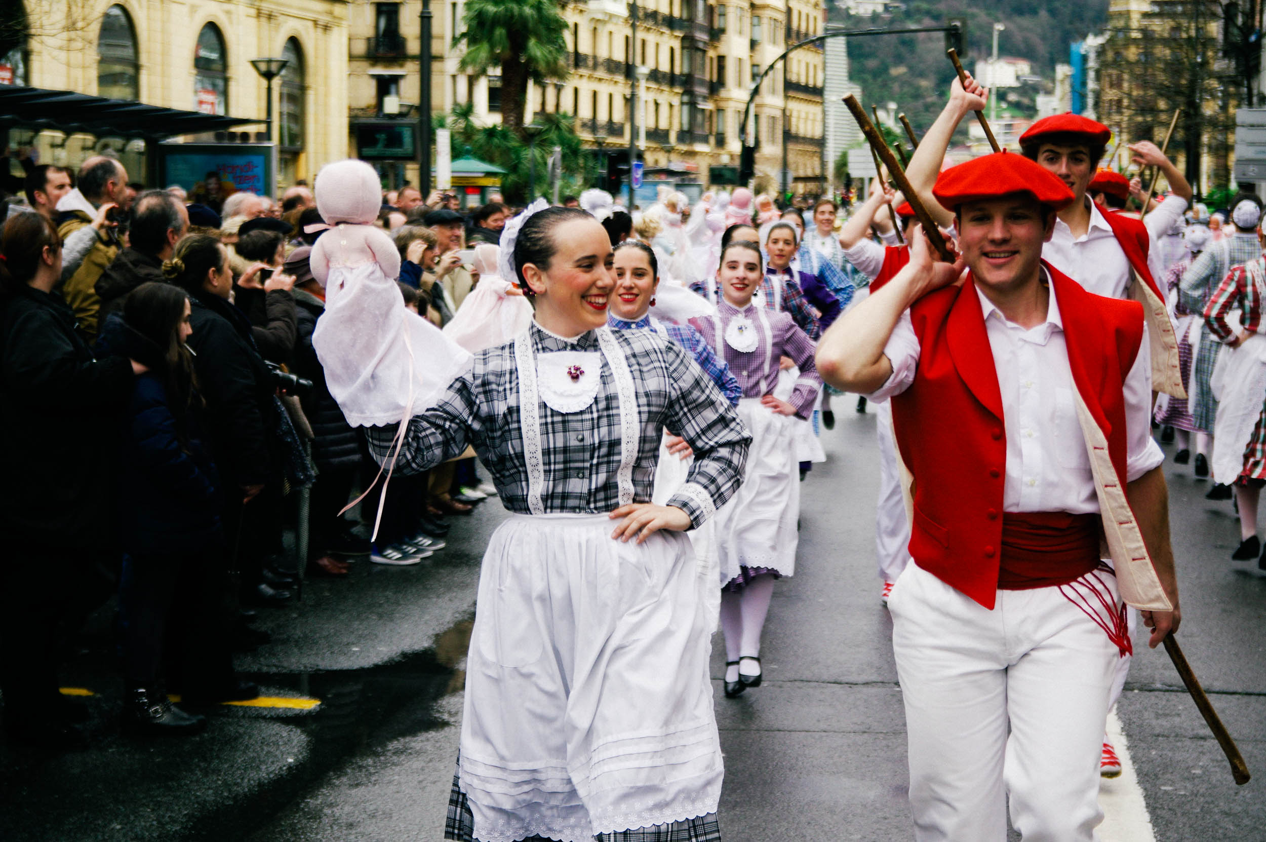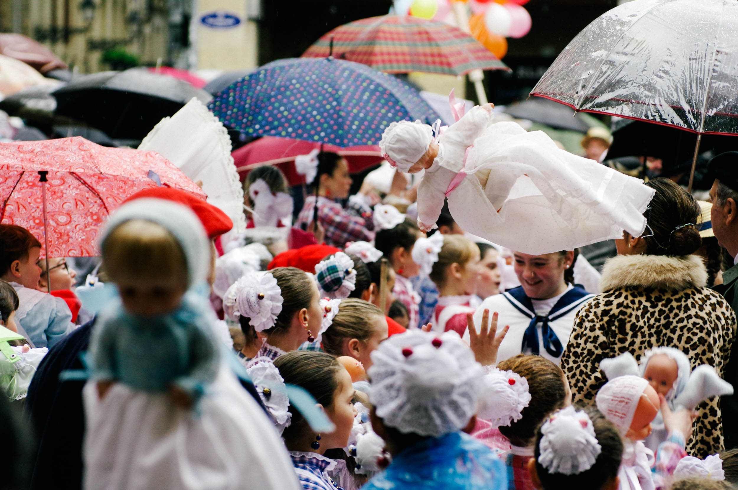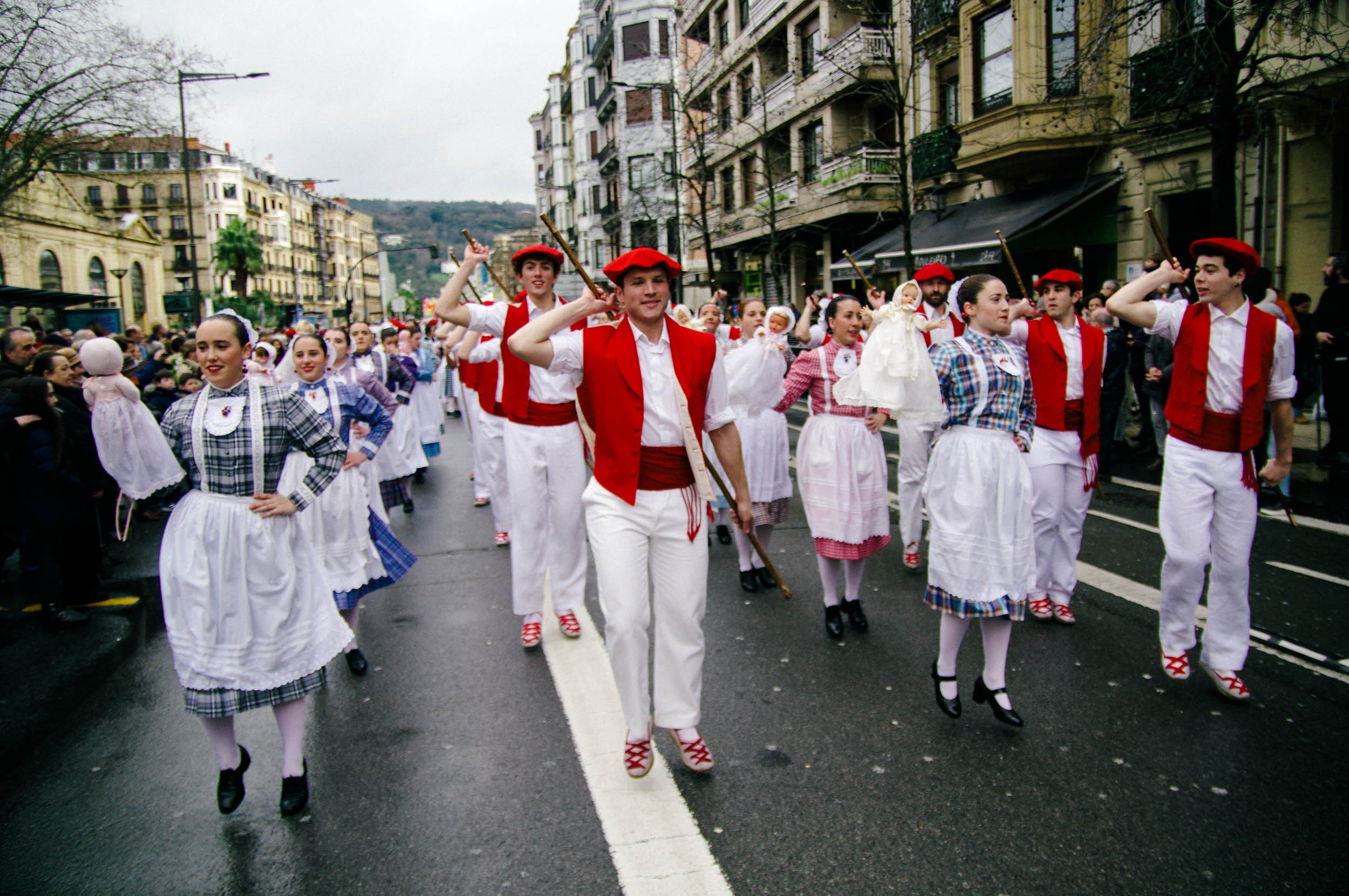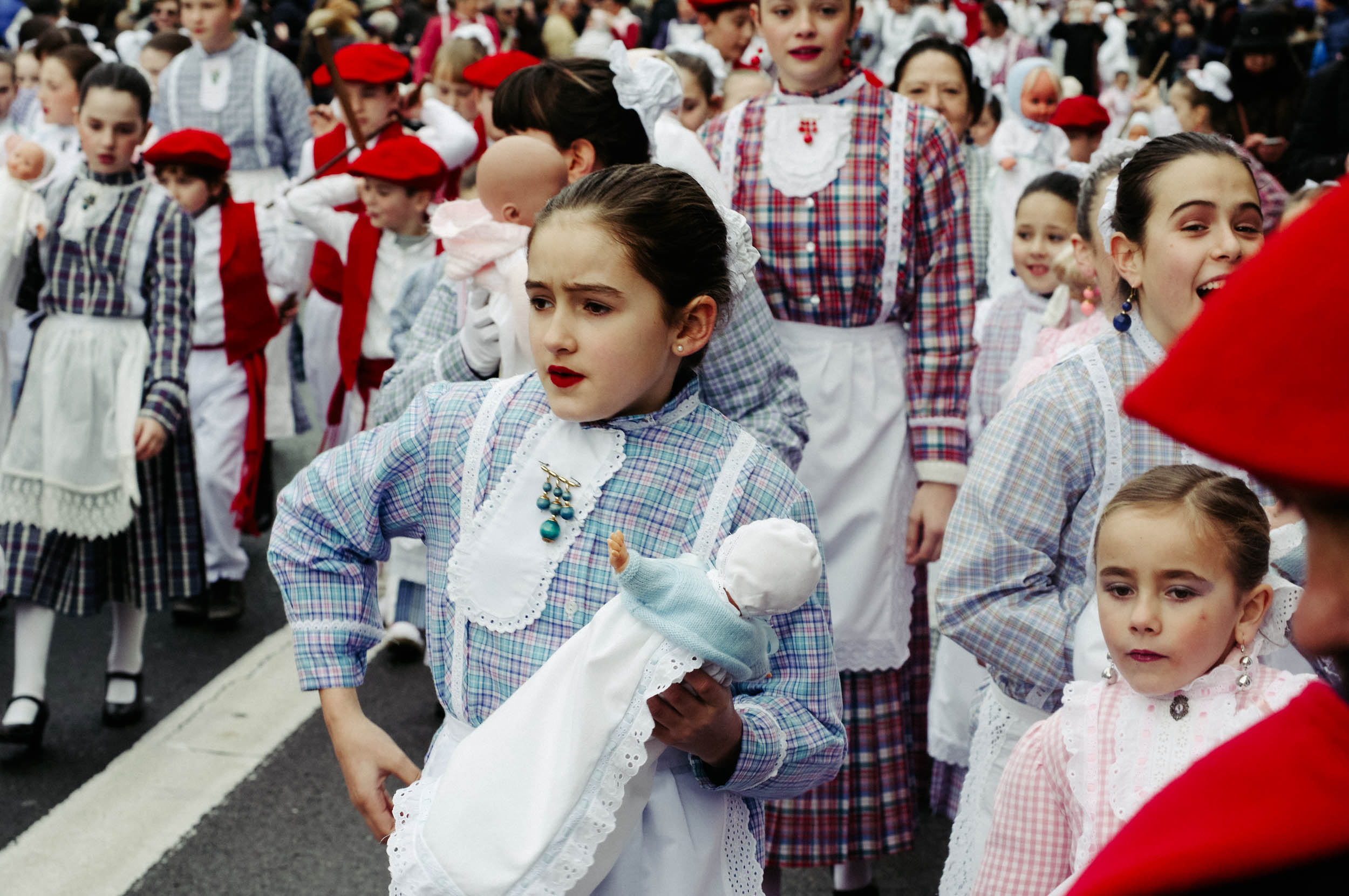 Inudes y artzaiak, nodrizas y pastores, han desfilado un año más por la Parte Vieja (con el perdón de la lluvia hasta que han entrado en la plaza de la Constitución) con los galanteos propios de la fiesta y con muy buen ambiente pese al tiempo. Como todos los años inudes y artzaiak han recorrido las calles con la música de Sarriegui moviendo sus ‘bebés’ con su particular coreografía en una tradición que se remonta a 1885 y que cobra fuerza año tras año.