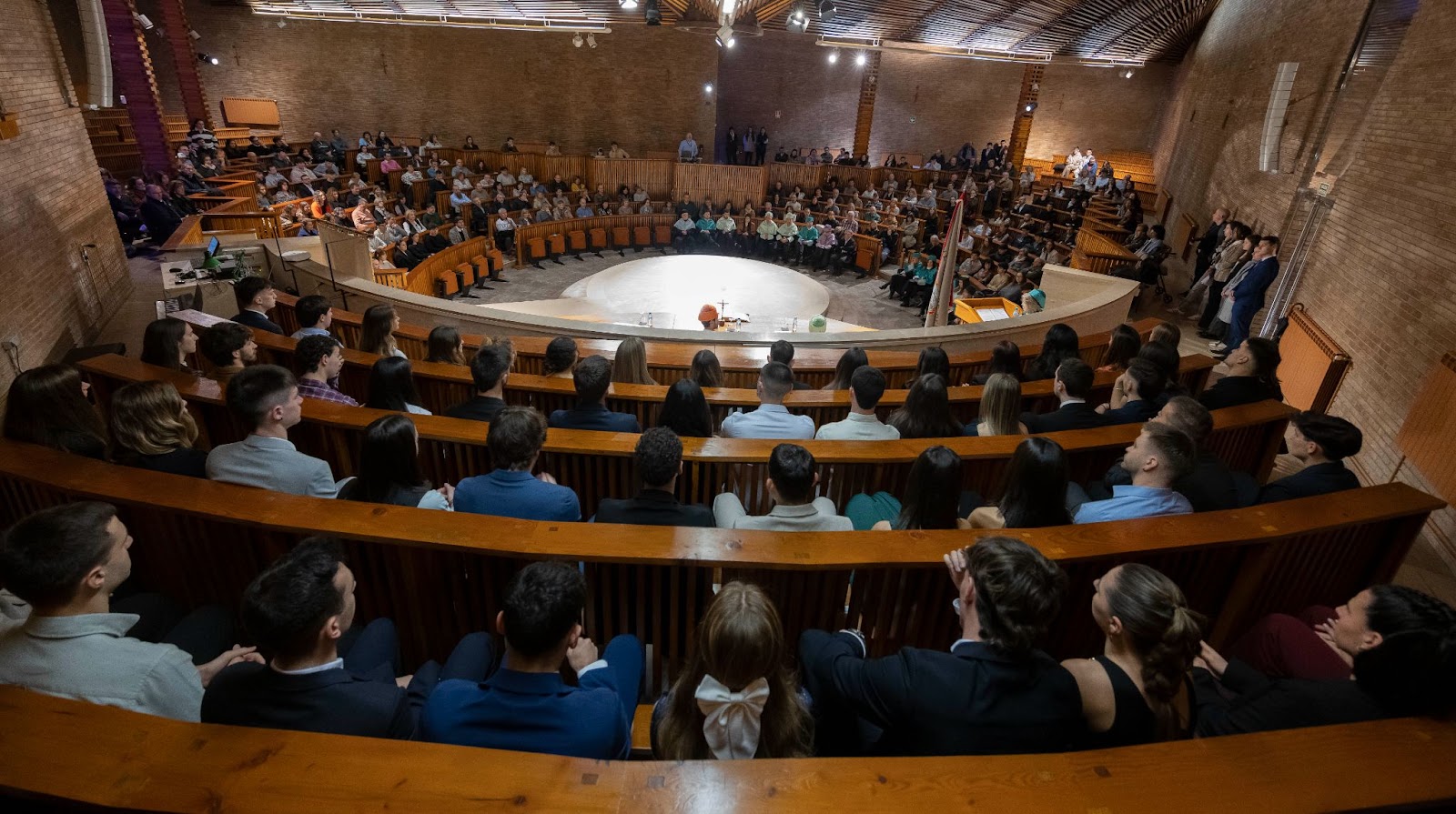 El acto estuvo presidido por el vicerrector de campus Xabier Riezu y contó la presencia del claustro de profesores y familiares, quienes entonaron el «Agur Jaunak» acompañados por la Easo Gazte Abesbatza.