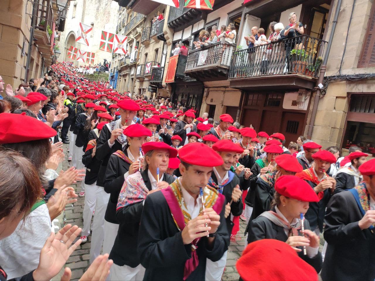 Al término del desfile de Jaizkibel, su capitana, Nora Ferreira, se ha felicitado porque éste ha sido el primer año que su compañía ha podido salir de la zona de Gernikako Arbola «separada sólo unos metros respecto a las otras compañías».