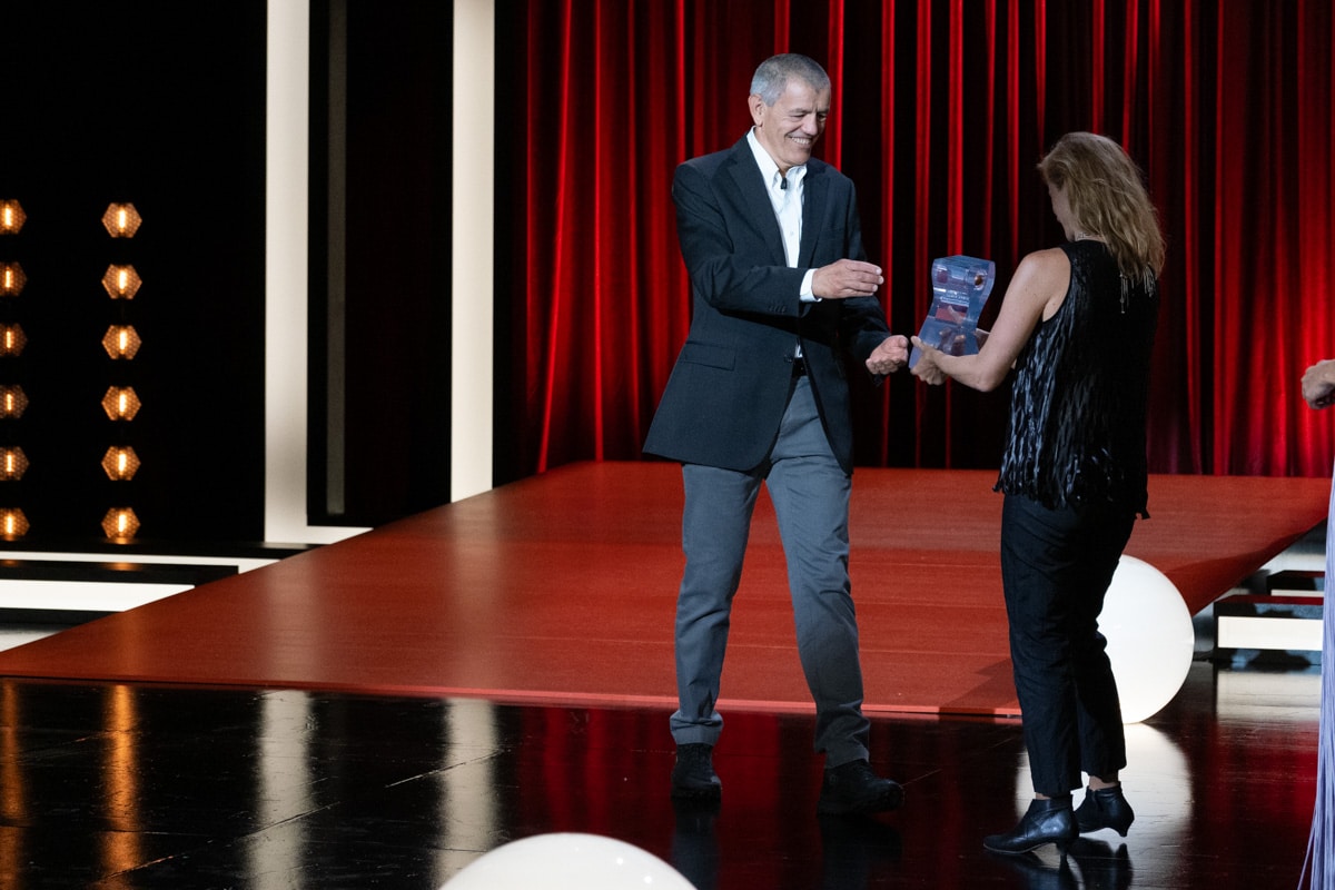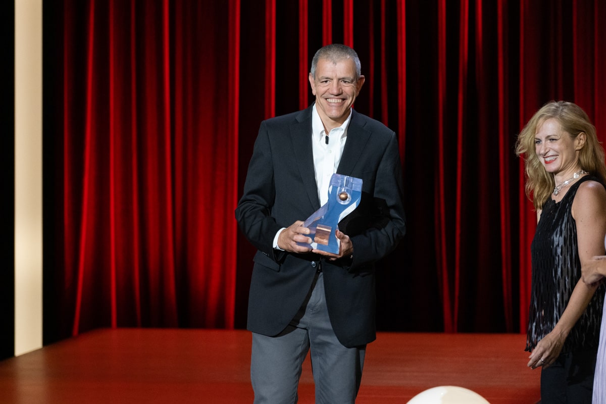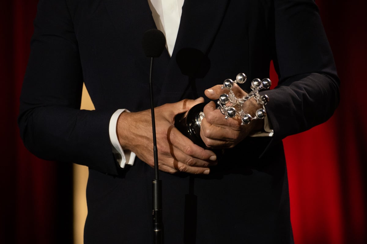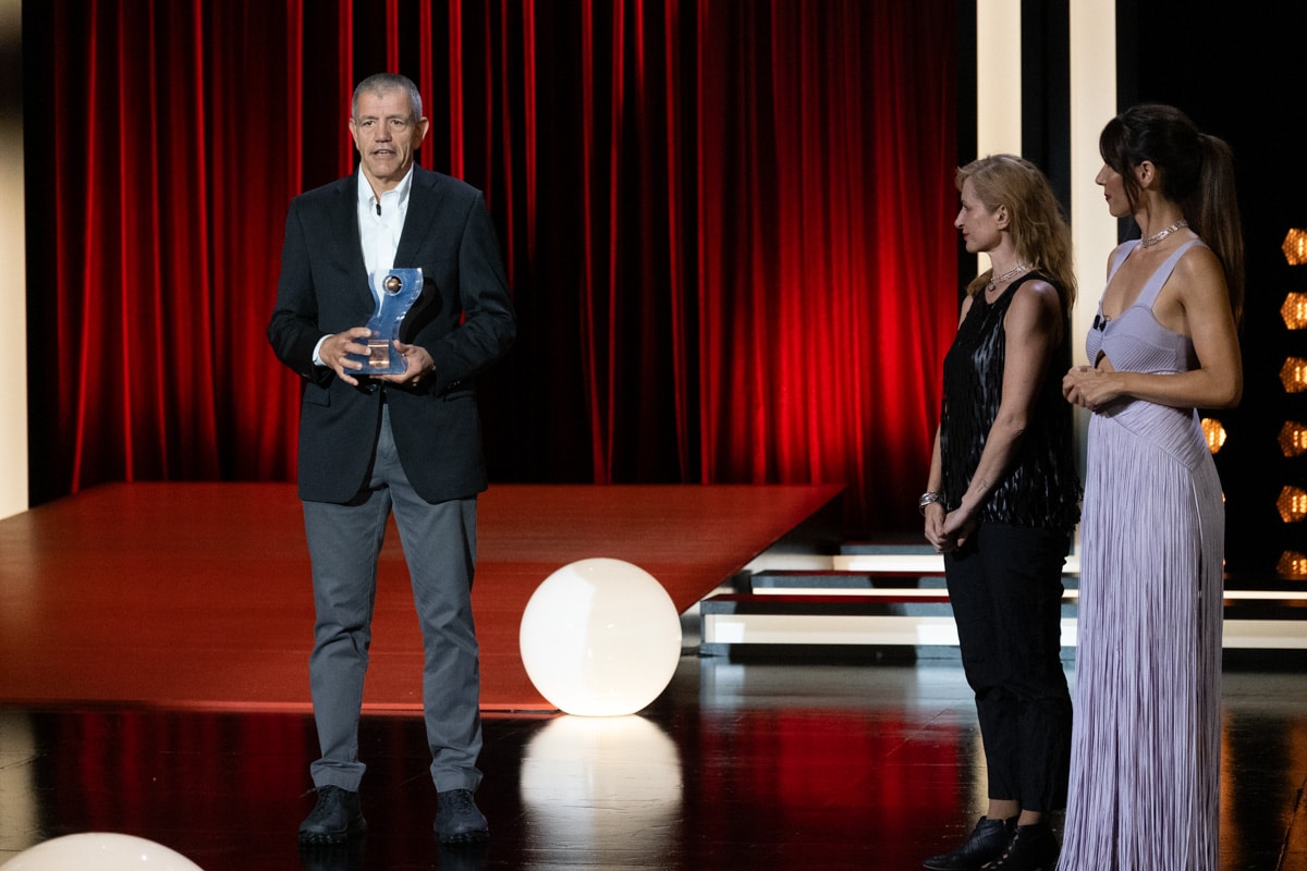 El premio, correspondiente a la edición de 2023 y que no pudo recoger debido a la huelga de actores en Hollywood, lo recibió de manos de su «maestro», el profesor de interpretación y director de teatro Juan Carlos Corazza y acompañado en el escenario por sus hermanos Mónica y Carlos Bardem.