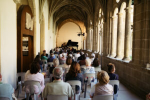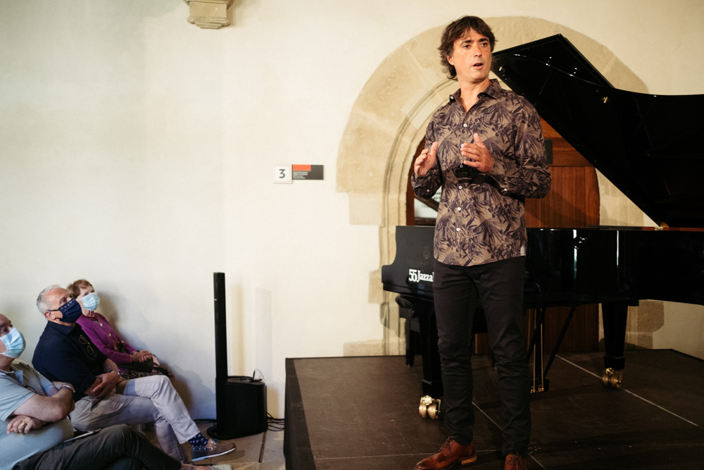 Antes del concierto en el Victoria Eugenia ha tenido lugar la cita en el claustro de San Telmo. En este caso con el pianista donostiarra Mikel Azpiroz, que ha interpretado una colección de temas de los discos Gaua y Zuri. Los conciertos del claustro dejan huella este festival.