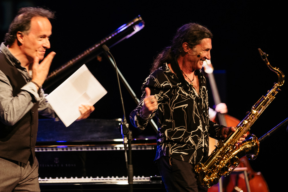 El músico Jorge Pardo ha recogido hoy el premio Donostiako Jazzaldia en el Teatro Victoria Eugenia. Allí ha dado un concierto junto a otro premiado, Iñaki Salvador, y ha disfrutado del calor del público y del reencuentro con un festival que adora.