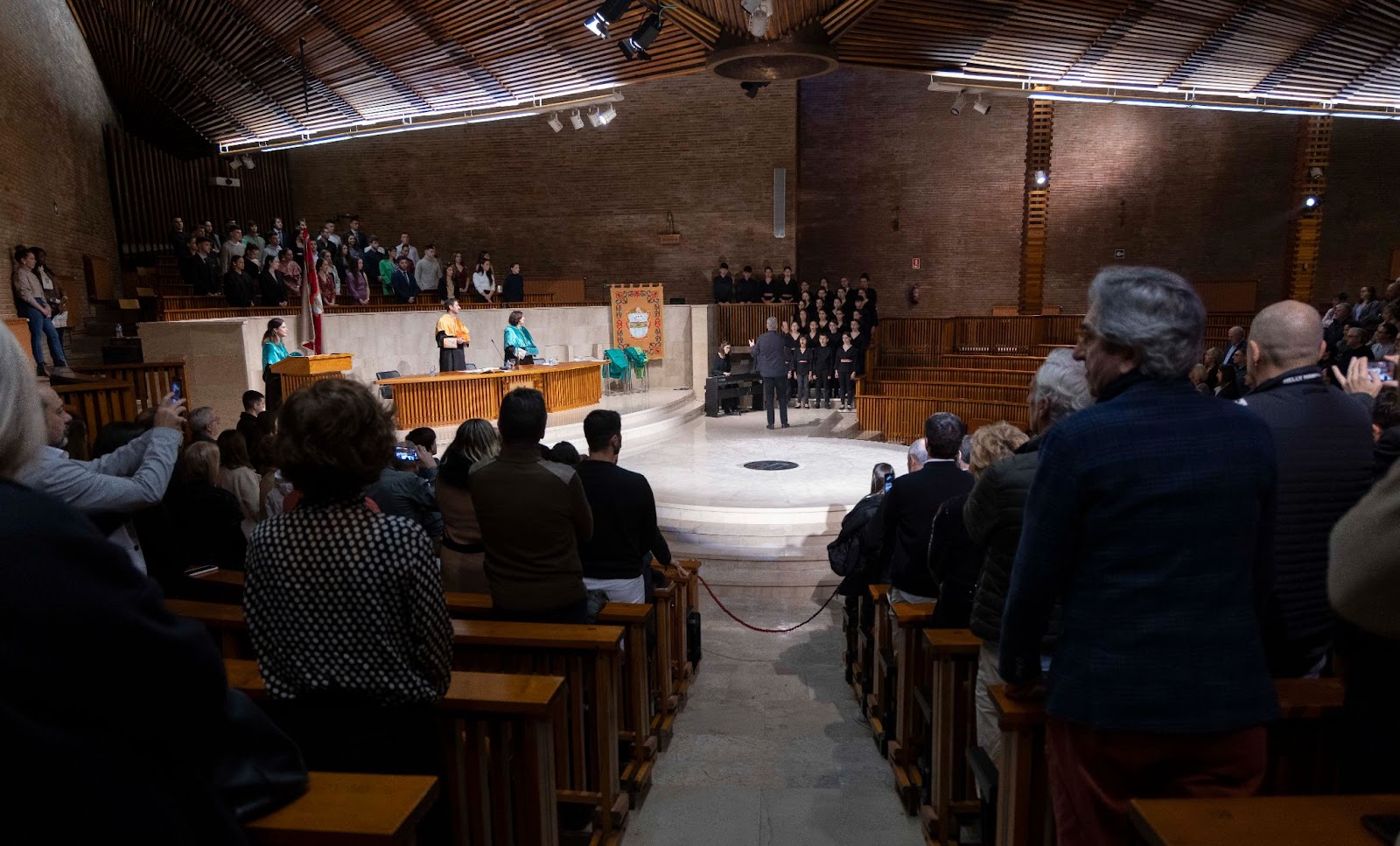 El solemne acto comenzó a las 12 horas con la presencia del claustro de profesores y familiares, quienes entonaron el «Agur Jaunak» acompañados por la Escolanía Easo.