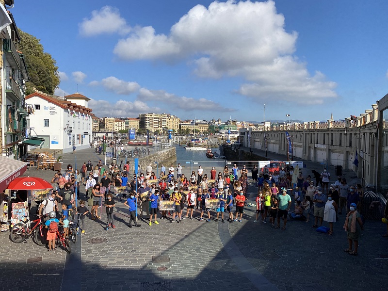 La plataforma Kaia Bizirik se concentró ayer en el Muelle para reivindicar el baño, la pesca, el juego y recreo infantil en la rampa, el Náutico y en general todo el Puerto. Actividades y usos que se han visto afectadas por las restricciones de la pandemia, si bien desde la agrupación consideran que esto no es más que una excusa.