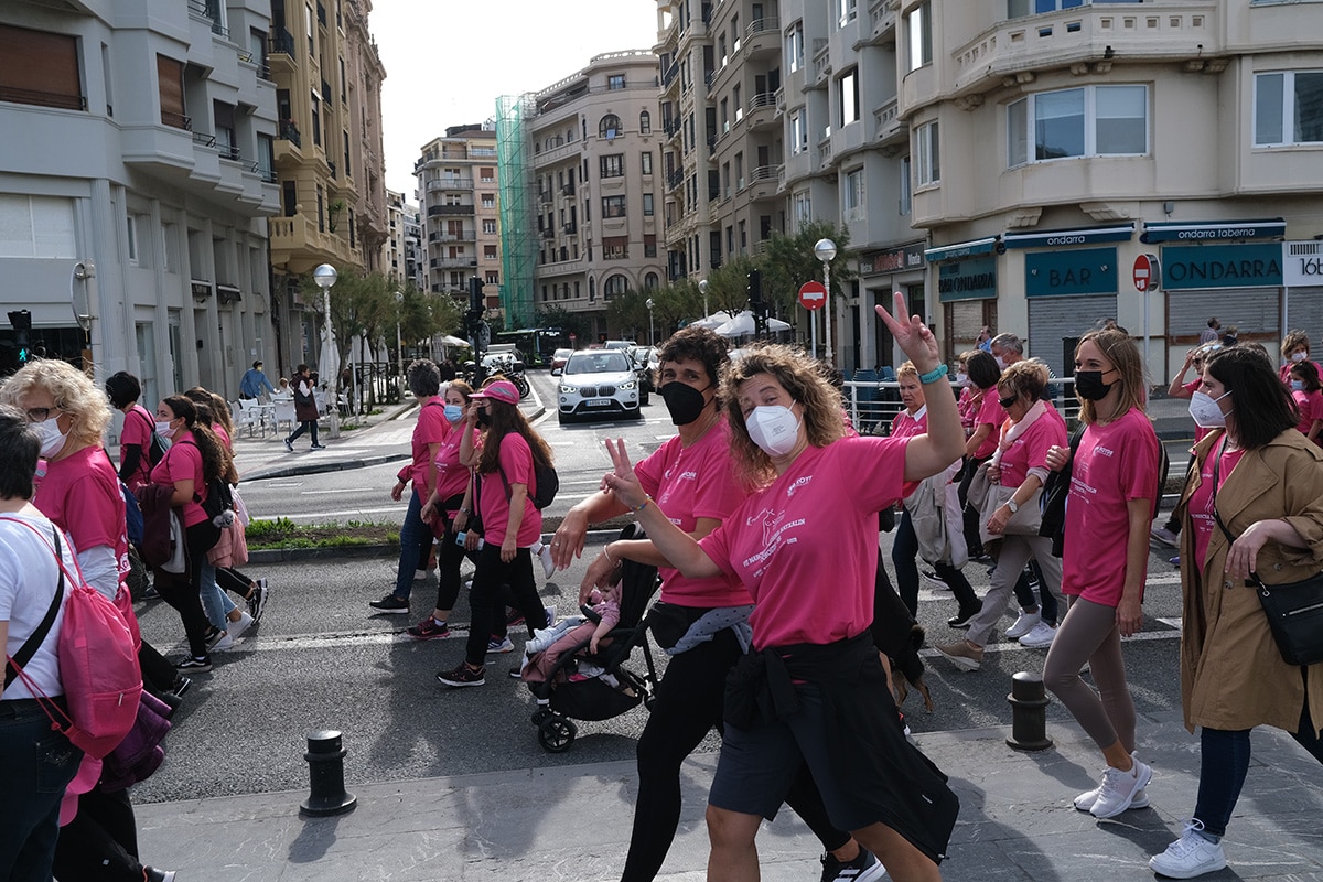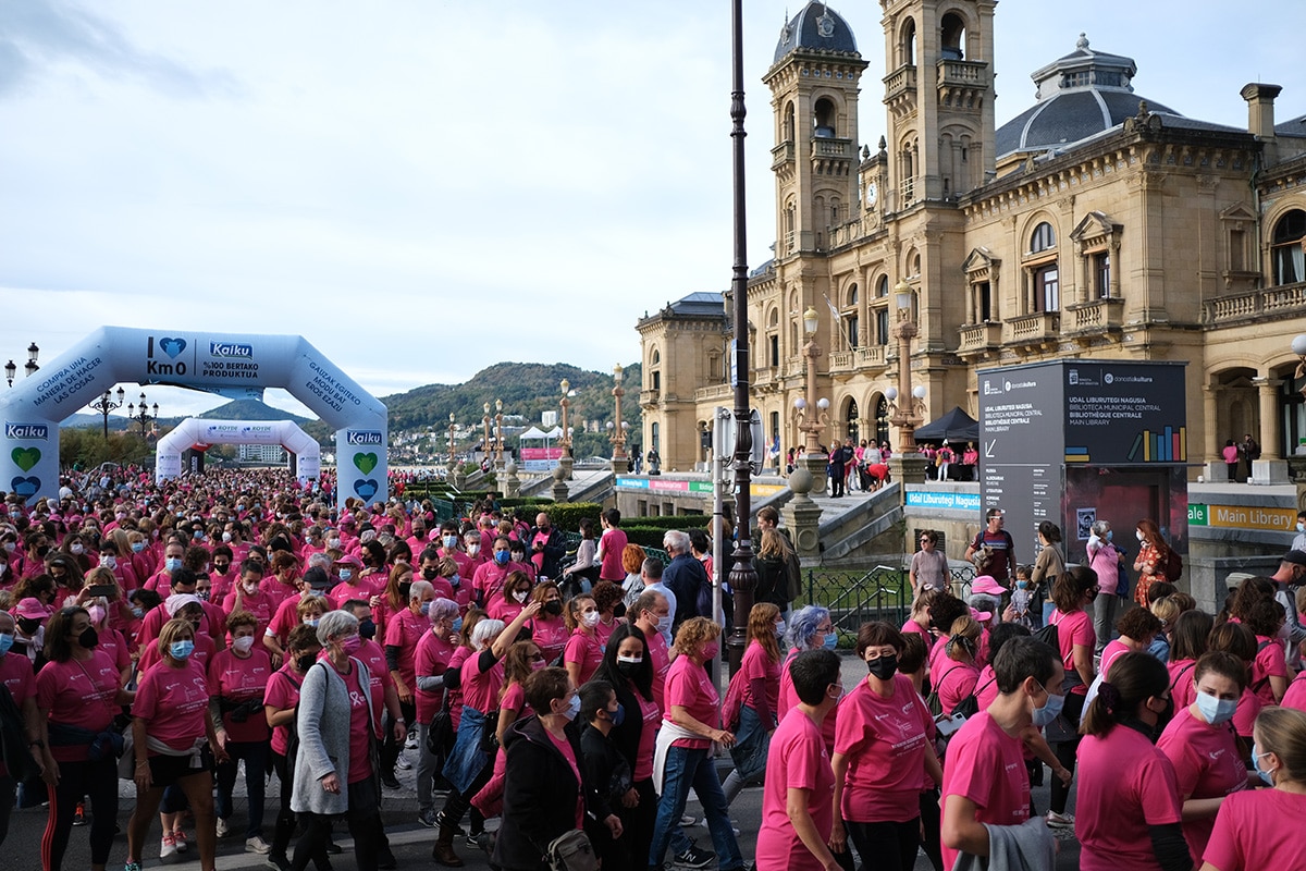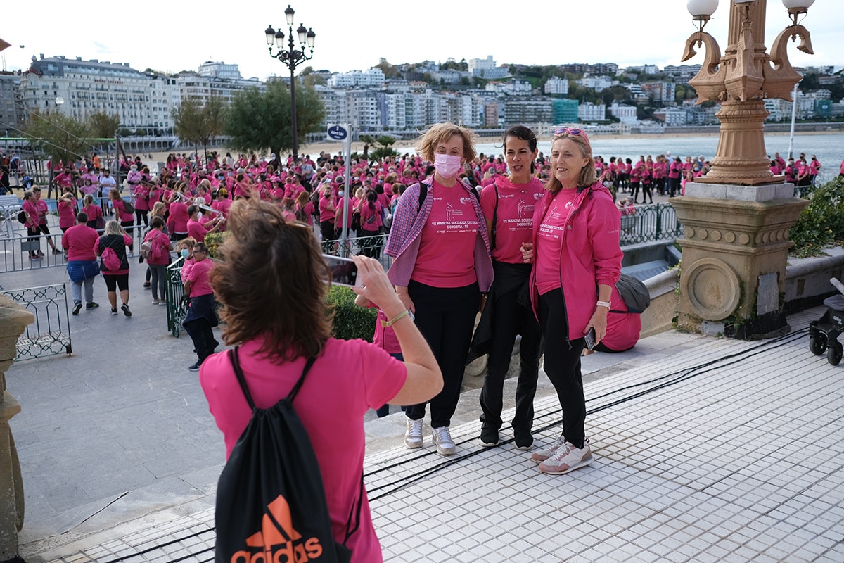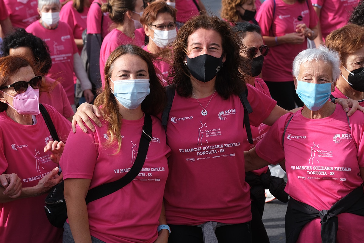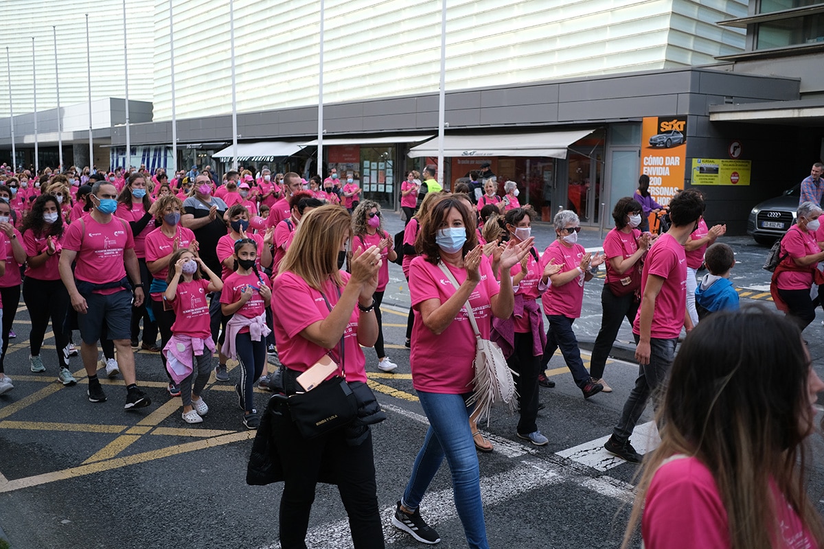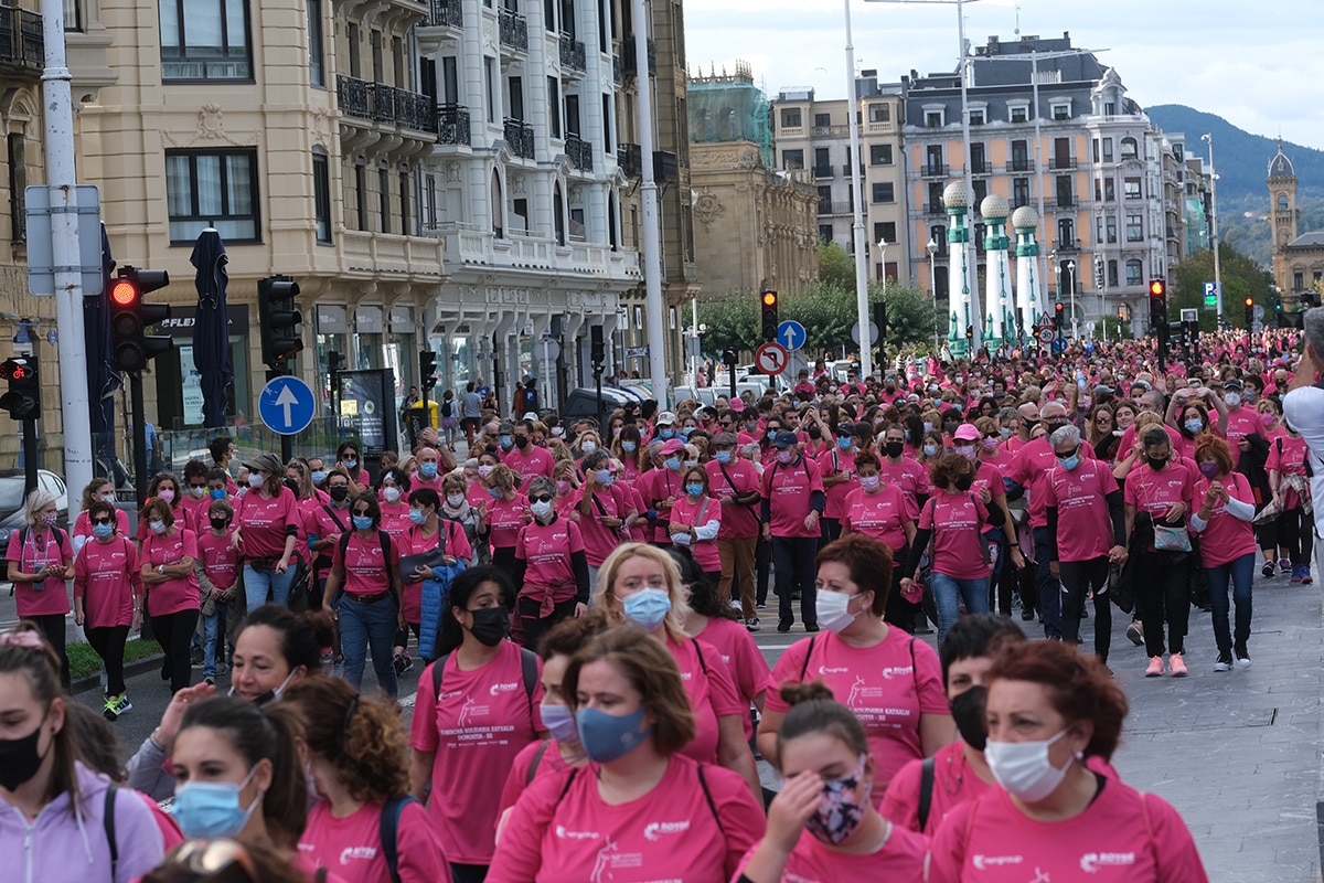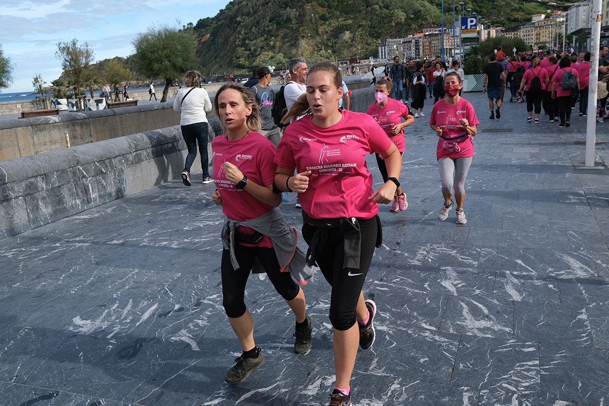 La llamada de Katxalin ha sido respondida por miles de personas que han participado hoy en la marea rosa de Donostia, la séptima que organiza la asociación de Mujeres Afectadas de Cáncer de Mama y Ginecológico de Gipuzkoa para lograr fondos en favor de la investigación. El año pasado no pudo celebrarse por la pandemia.