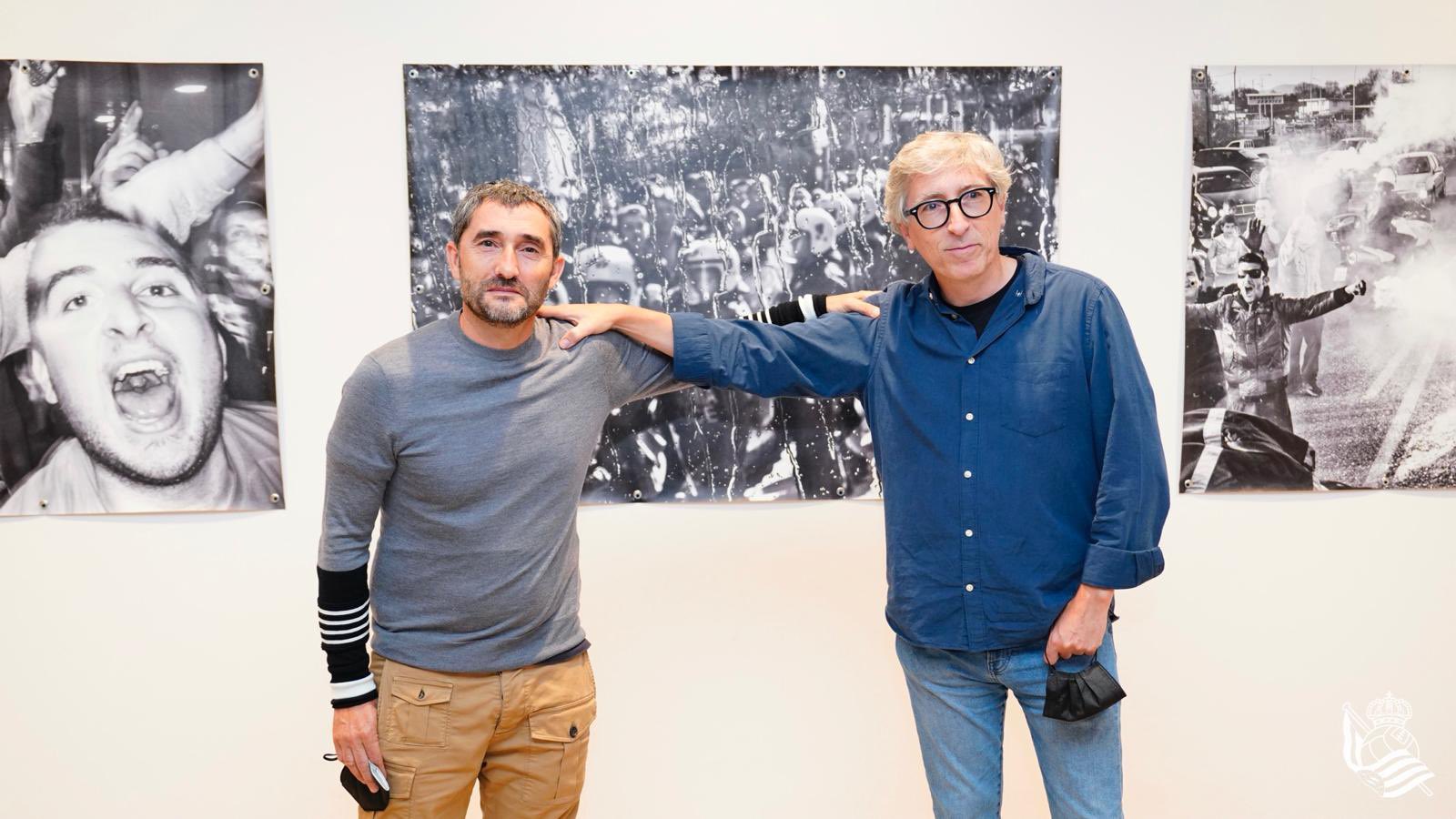 Hoy se ha inaugurado en Ernest Lluch K.E. ‘Beste aldea/El otro lado’, una exposición de fotografías del ex futbolista y entrenador Ernesto Valverde realizadas en los últimos 12 años desde su perspectiva de actor del mundo del fútbol. Se trata de imágenes en blanco y negro y en gran formato que retratan las multitudes de hinchas que se forman antes y después de los partidos.