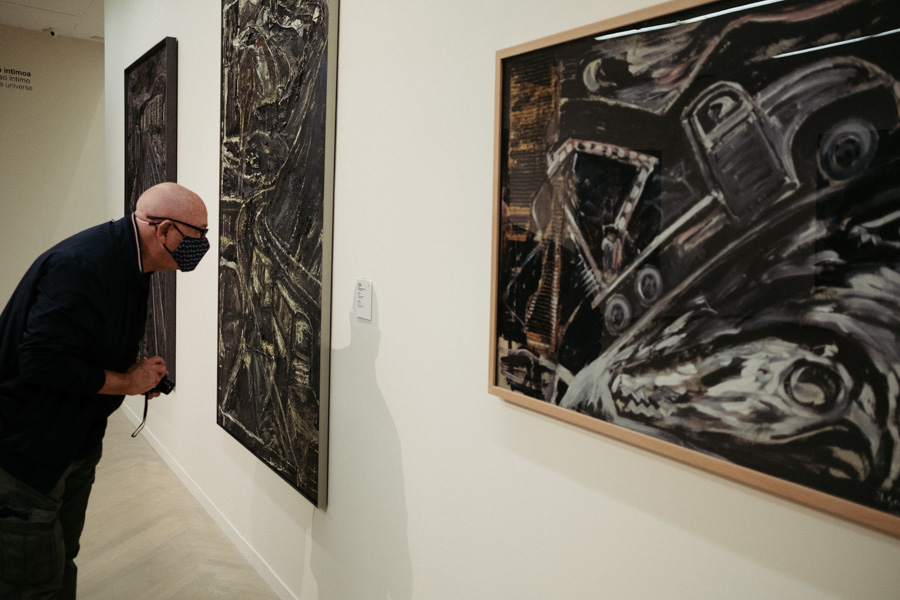 La muestra expuesta en la sala Kubo-Kutxa de San Sebastián se articula en 6 ámbitos temáticos para obtener una lectura cronológica y evolutiva de la producción del autor, más una sala dedicada a la obra sobre papel, que funciona como otro recorrido paralelo, pero también autónomo.