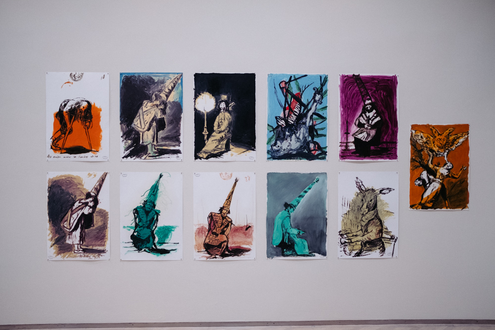 La comisaria Oliva María Rubio ha explicado que la exposición alberga 83 piezas realizadas entre 1960 y 2019 por 54 artistas. Hay artistas muy conocidos de los 30 y 40 como Eduardo Arroyo o Darío Villalba, figuras internacionales como Zoran Muši, Yasumasa Morimura, William Kentridge, Simon Edmonson y nacionales como Simeón Sáez Ruiz, Rogelio López Cuenca, José Manuel Ballester, Pilar Albarracín, Jorge Galindo, Victor Mira, José Manuel Broto o Eva Lootz.