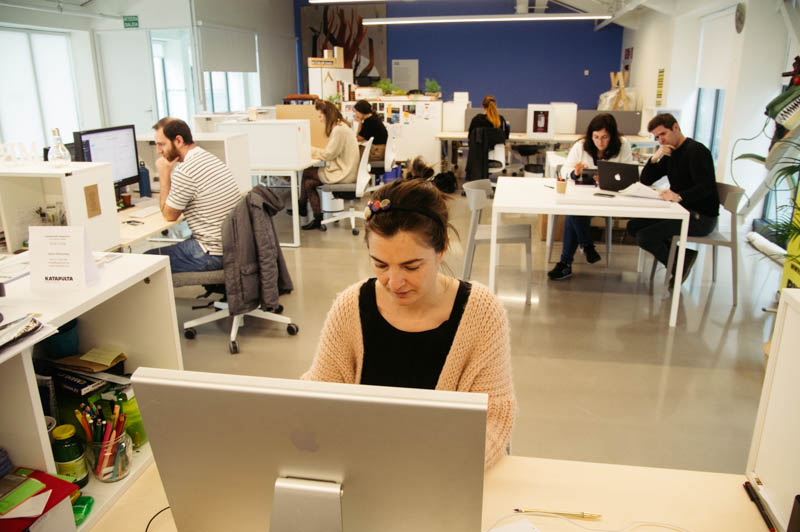 KATAPULTA (www.katapulta.org). Idoia Aizkorreta es la representación en Kutxa Kultur Enea de la plataforma Katapulta, que trabaja con mucha proyección desde 2013 para impulsar a los creadores de Euskadi en todas las disciplinas. «Cuando supimos que dentro de Tabakalera iba a haber un coworking Katapulta envió su propuesta. Somos tres personas y yo trabajo desde aquí. Para nosotros resultaba importante entrar para conocer otros proyectos, buscar colaboraciones, aportar conocimientos, estar al día…»