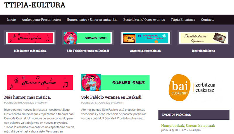 TTIPIA KULTURA (http://www.ttipia-kultura.com) Tiene Txelo Cerro dos compañeros de trabajo en Ttipia Kultura, pero ellos están en Gasteiz y ella, que vive en Donostia, decidió entrar en Enea «para estar muy bien acompañada». Entre los tres distribuyen artes escénicas en formato pequeño y mediano en euskara «y con humor» por toda Euskadi y Navarra. Que se dice fácil. «Hace tres años empezamos a trabajar con artistas que hacían obras de pequeño y mediano formato. Vimos que tenía salida y lanzamos ese formato para los pueblos. Nosotros somos distribuidores. Quienes quieren programar teatro de esas características, como las casas de cultura, se ponen en contacto con nosotros. Somos un poco representantes de los artistas y un poco mediadores con las instituciones».
