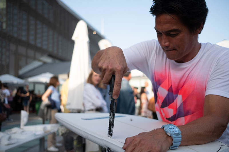 A las imágenes de Zach Cordner en la exposición fotográfica reinante, al trabajo del diseñador de tablas Ben Wei y el consiguiente ambiente surfero se le sumaron ayer los diseños de los residentes de Kutxa Kultur Moda, que protagonizaron la jornada. También ha habido música y talleres. Y lo que aún queda por delante antes y después del Vermut con DJ que está previsto al mediodía.