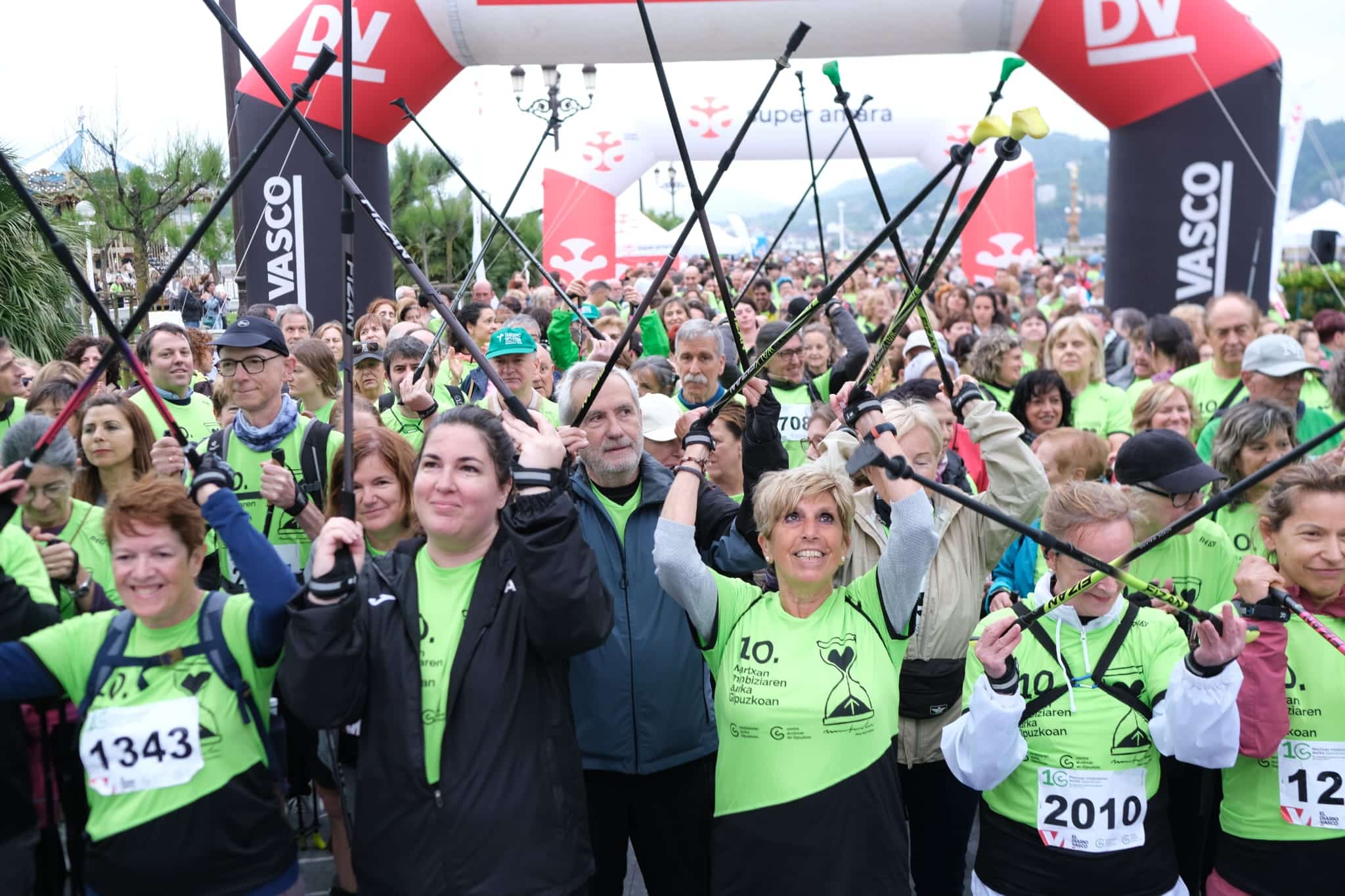 Cerca de 900 personas han participado después en las dos modalidades de marcha, a pié y nórdica, cuya salida ha sido marcada a las 11.45 por el corte de cinta del alcalde y la diputada, que han hecho el trayecto de 3 kilómetros que ha discurrido por el paseo de La Concha, al igual que concejales de todos los grupos políticos municipales de San Sebastián y algunos procuradores de las Juntas Generales del territorio.