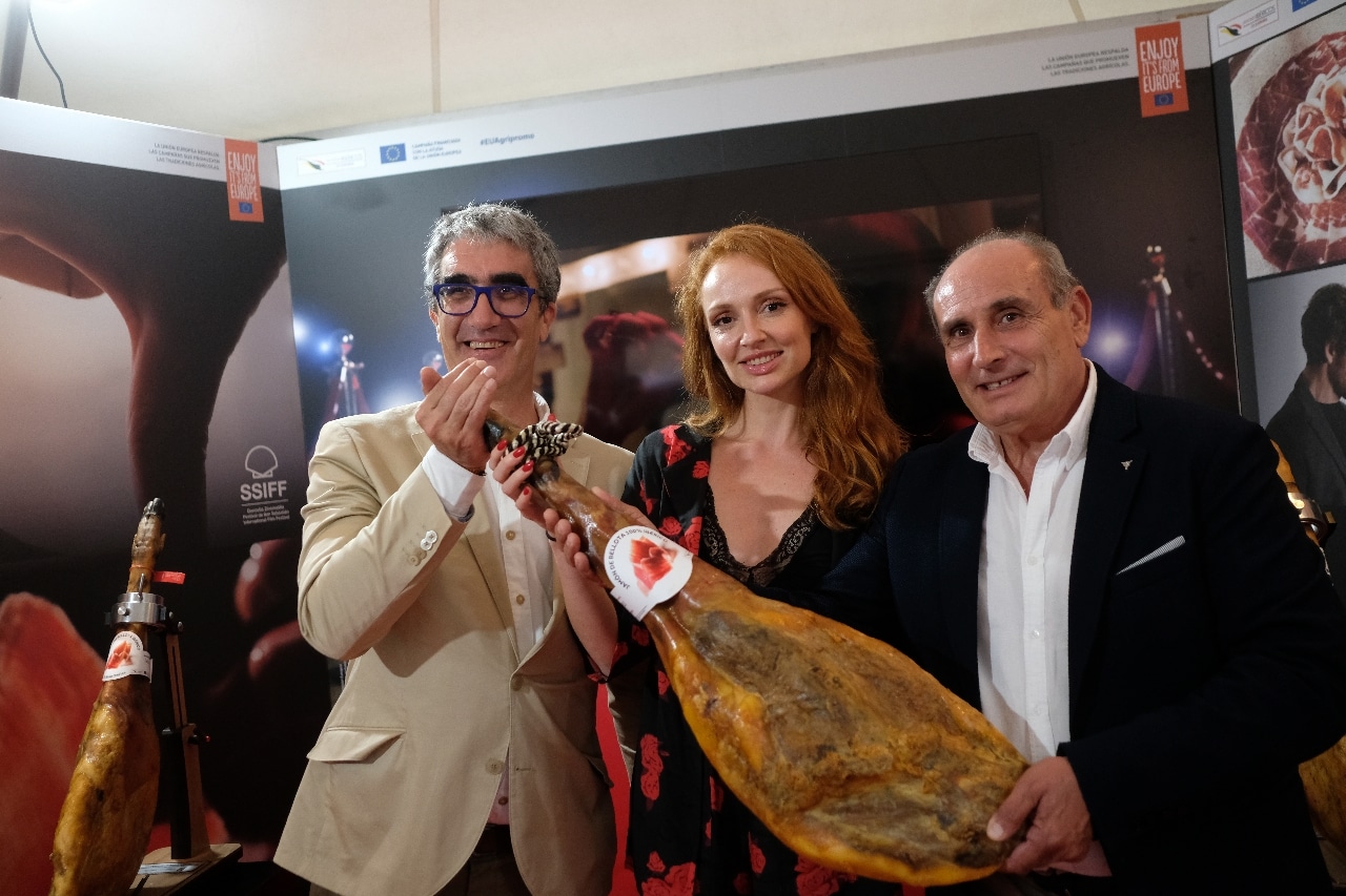 La actriz Cristina Castaño ya tiene su jamón, una tradición en el marco del Festival de San Sebastián a la que ASICI (Asociación Interprofesional del Cerdo Ibérico) no falta un año. Castaño, que alcanzó la popularidad por series televisivas como ‘Al salir de Clase’ y ‘La que se avecina’, así como en la serie de Netflix ‘Toy Boy’, se ha declarado encantada con el regalo y muy fan de este producto.