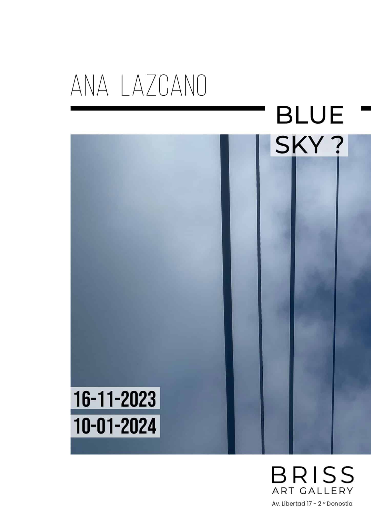 La Galería de Arte Contemporáneo, Briss Art Gallery, que recientemente ha abierto las puertas de su nuevo espacio físico, expone las obras de la artista donostiarra Ana Lazcano. La galería está ubicada en la segunda planta de la Avenida de la Libertad 17, en Donostia, y puede visitarse de lunes a viernes de 9 a 18 horas. Fuera de este horario se puede acudir con cita previa.