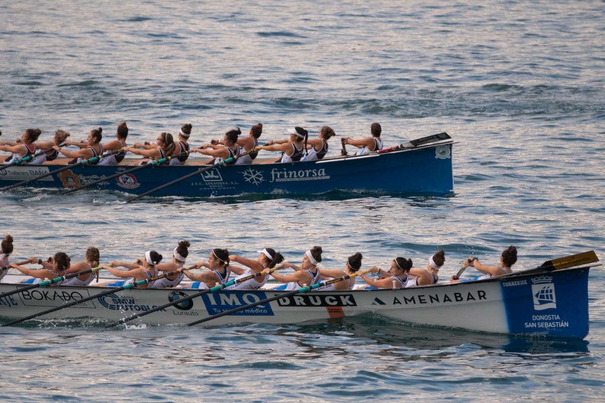La tripulación femenina de Orio-BabyAuto y la masculina de Go Fit Hondarribia son las vencedoras de la Bandera de la Concha 2019 en un ambiente maravilloso, bajo un sol espléndido y ante miles de aficionados que este mediodía se han acercado a la bahía de la Concha para disfrutar del evento.