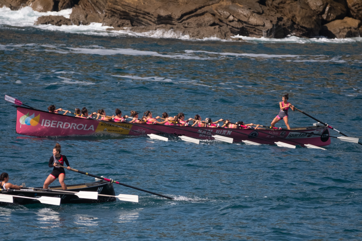 La tripulación femenina de Orio-BabyAuto y la masculina de Go Fit Hondarribia son las vencedoras de la Bandera de la Concha 2019 en un ambiente maravilloso, bajo un sol espléndido y ante miles de aficionados que este mediodía se han acercado a la bahía de la Concha para disfrutar del evento.
