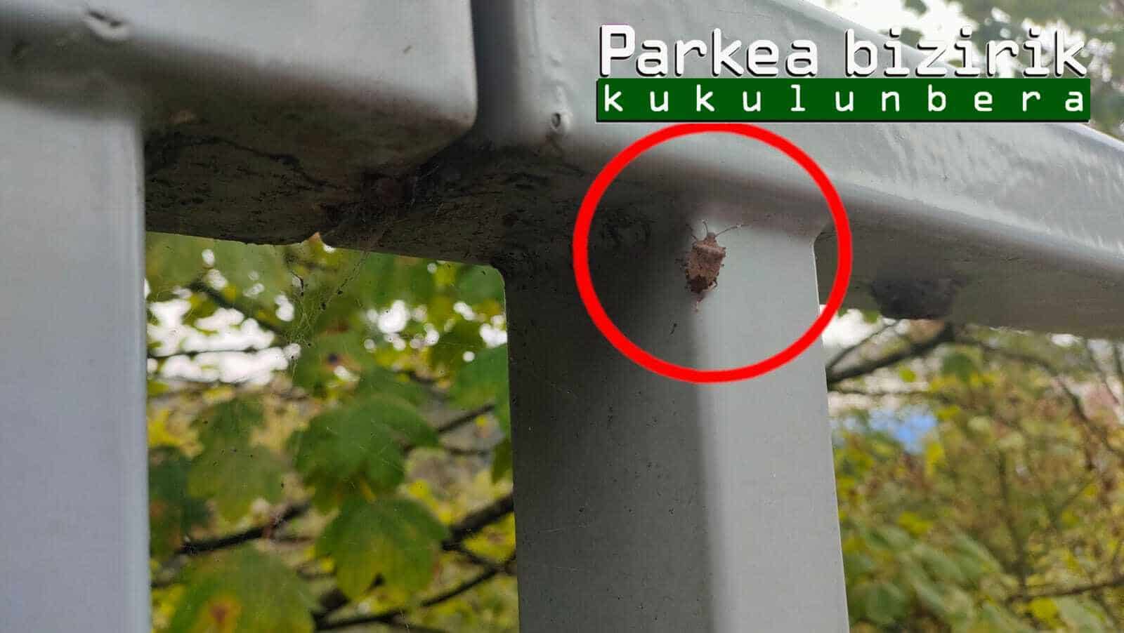 La asociación Parkea Bizirik kukulunbera advierte de la presencia en Donostia y alrededores de una especie invasora, la chinche marrón marmolada, que se alimenta de las hojas de los árboles y es considerada plaga en Argentina y Estados Unidos por su daño a los cultivos. «En algunas regiones de Italia esta chinche ha dañado y anulado el 50% del cultivo de peras, incidiendo directamente en la carestía del producto», explica la asociación. (Vídeo abajo)