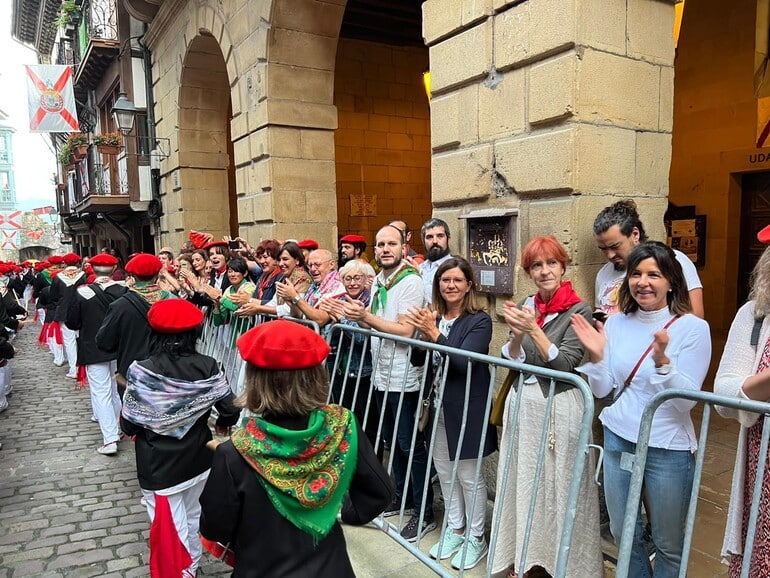 Tampoco se han visto pancartas contrarias a la compañía mixta en los balcones, que en su mayoría estaban adornados con pañuelos y la bandera de la villa, que recuerda la victoria, el 7 de septiembre de 1638, frente a las tropas francesas tras el sitio de 69 días de duración.