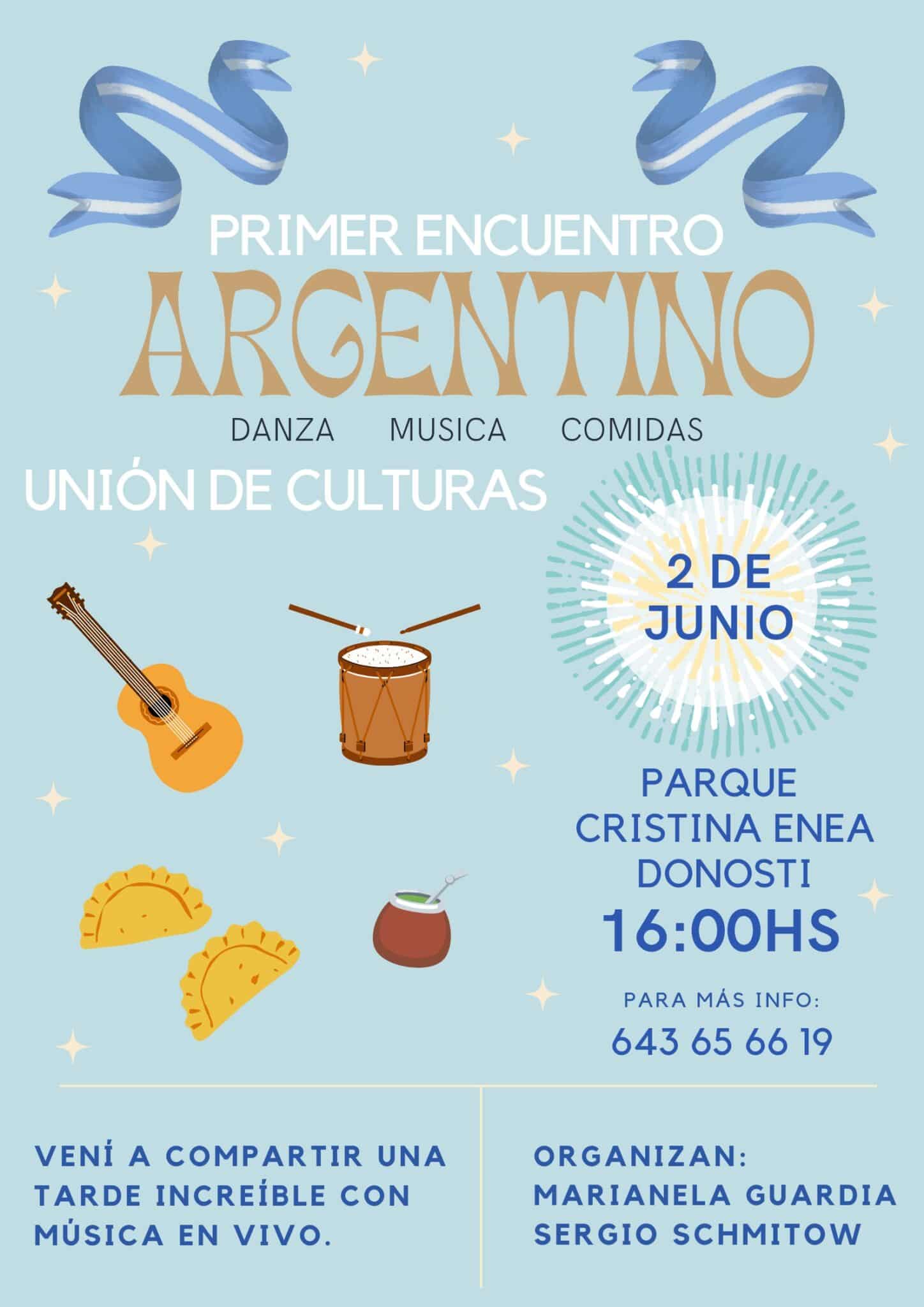 «Cada uno que traiga algo para comer o beber (no se va a poder comprar nada) y venga a compartir una linda tarde rodeados de nuestra cultura. Es un encuentro totalmente informal, invitamos también a todo el que quiera hacer algo de música o bailar, pero sin ningún tipo de ánimo lucrativo», explicó para DonostiTik Sergio, que es músico, lleva cinco años en San Sebastián y seguro que pone ritmo a la reunión.