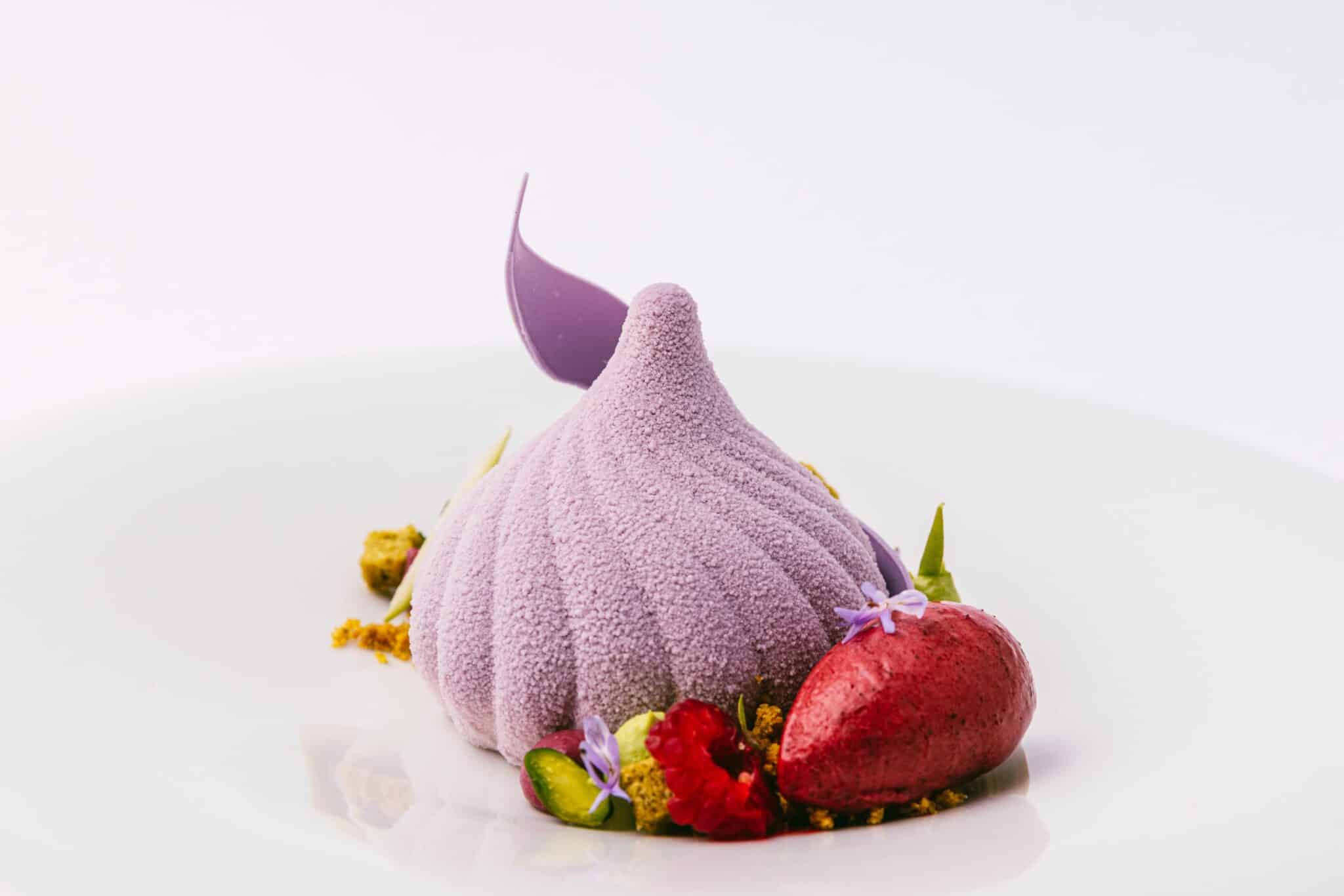 Consiste en un adorno de chocolate que simboliza el movimiento de una bailarina sobre una mousse de manzana verde rellena de compota de manzana en representación a la fruta por excelencia de Zumaia, su lugar de nacimiento. Ambas preparaciones fueron terminadas con un efecto terciopelado de color lila, color favorito de Lucía Lacarra. Alrededor de la mousse, el postre cuenta con un sorbete de mora y frambuesa, bizcocho genovés y crumble de pistacho, cremoso de mora, ganache de chocolate blanco, lima y albahaca, gel de manzana verde y frambuesas frescas.