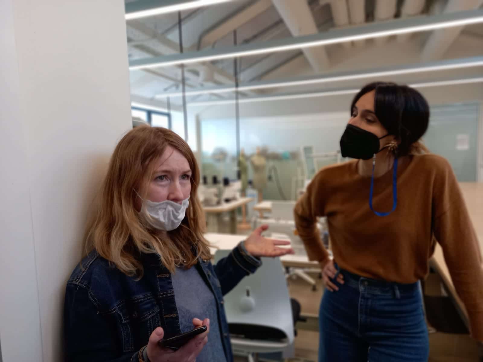 Ianire Soraluce, asesora en Kutxa Kultur Moda, y Naiara Palacios, la responsable del programa, la acompañan en este desembarco.