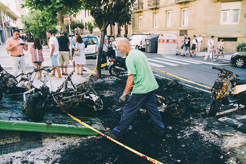 Los incendios intencionados de motocicletas aparcadas en diferentes calles de la capital donostiarra comenzaron el día 19 de abril. Hasta la fecha han sido seis los fuegos consumados que se han producido en el centro, en la Parte Vieja y en los barrios de Gros y Amara. El último, el pasado 6 de septiembre, en el citado barrio de Gros.