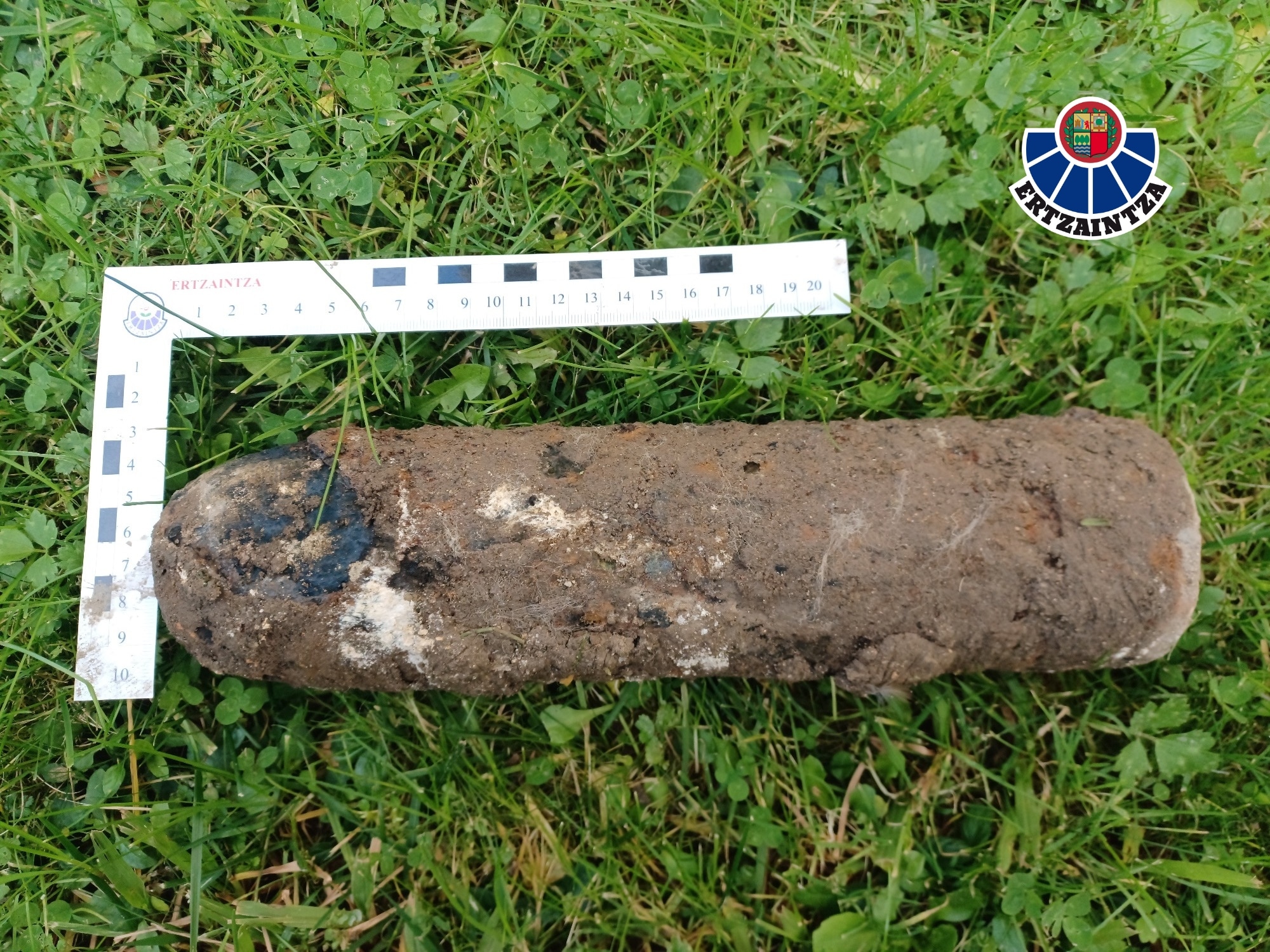 El artefacto fue localizado por operarios que se encontraban realizando obras en el terreno y lo extrajeron con una excavadora creyendo que era escombro. Tras percatarse del error lo dejaron en el lugar e informaron a la Policía Local, que acordonó la zona y avisó a la Ertzaintza.