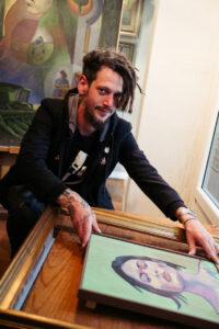 Resulta también higiénico, porque así los visitantes no tienen que entrar al interior de la tienda. Estoy encantado de exponer en el Rincón del Arte, donde suelo enmarcar mis cuadros. Lo lleva Gorka Santamaría, que es del tipo de gente que me gusta, entre culta y callejera, y que prima el conocimiento sobre el beneficio.