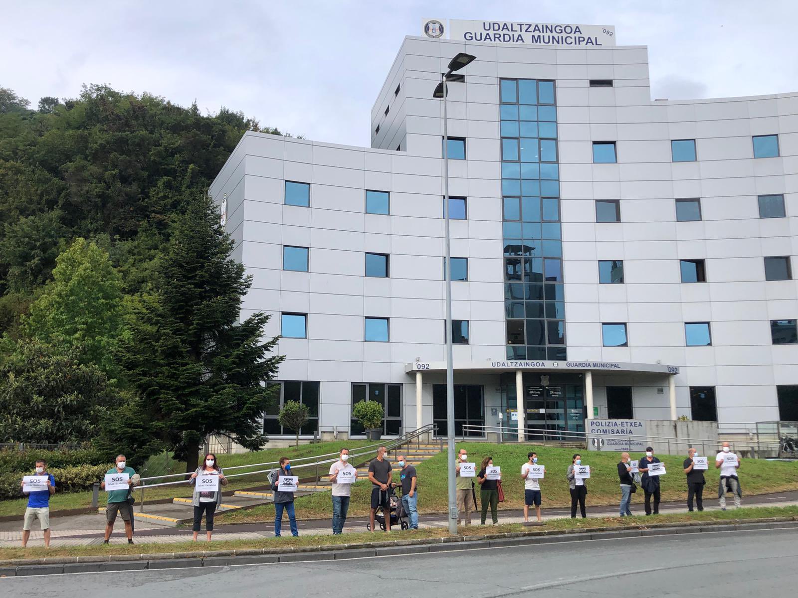 Efectivos de la Guardia Municipal de Donostia se han concentrado de nuevo esta mañana en la rotonda de Morlans, frente a la comisaría, para denunciar «la falta de trabajadores en este colectivo y sus consecuencias».