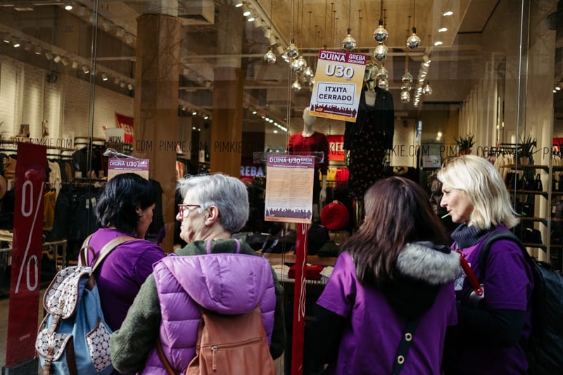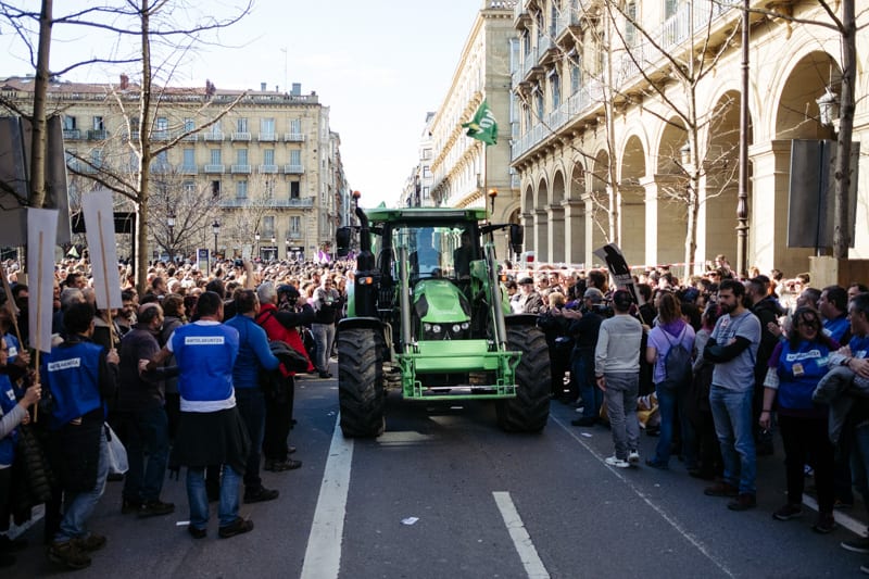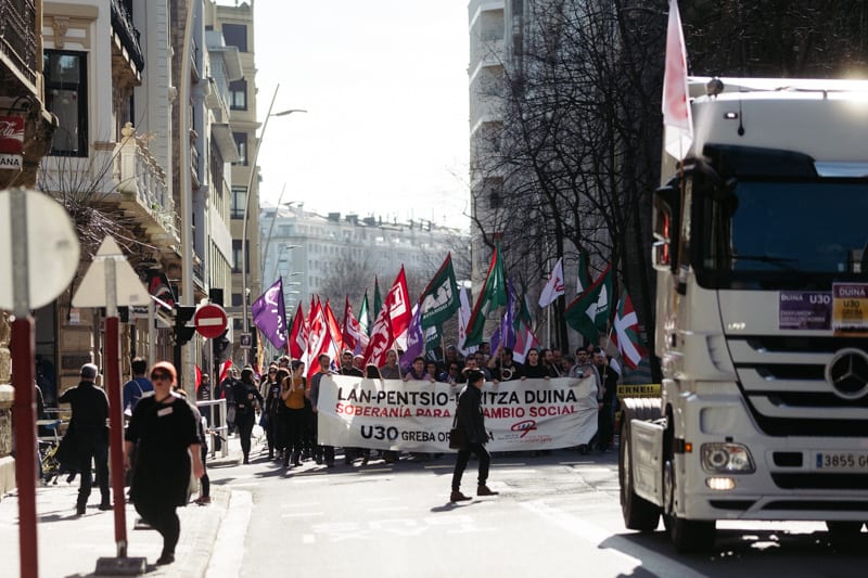 Los sindicatos convocantes (ELA, LAB, ESK, Steilas, EHNE, Hiru…) junto al Movimiento de pensionistas, el feminista, el ecologista y otros de carácter reivindicativo y social están detrás del llamamiento de hoy, de cuyo seguimiento en la primera mitad de la jornada se han mostrado muy satisfechos.