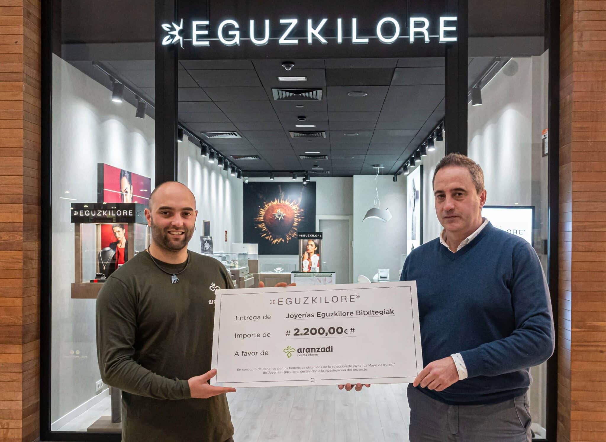 La joyería Eguzkilore ha donado parte de los beneficios conseguidos de los colgantes de la Mano de Irulegi durante el periodo navideño. Esta donación contribuye directamente a la investigación arqueológica y científica del yacimiento de Irulegi. Y es que tras el hallazgo, que tuvo eco en medios de todo el mundo, muchos artistas y empresas han realizado productos de ‘merchandising’ (camisetas, bolsas, joyas) y con parte de los beneficios están ayudando a avanzar en la investigación ecológica de Aranzadi.