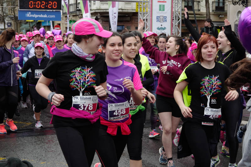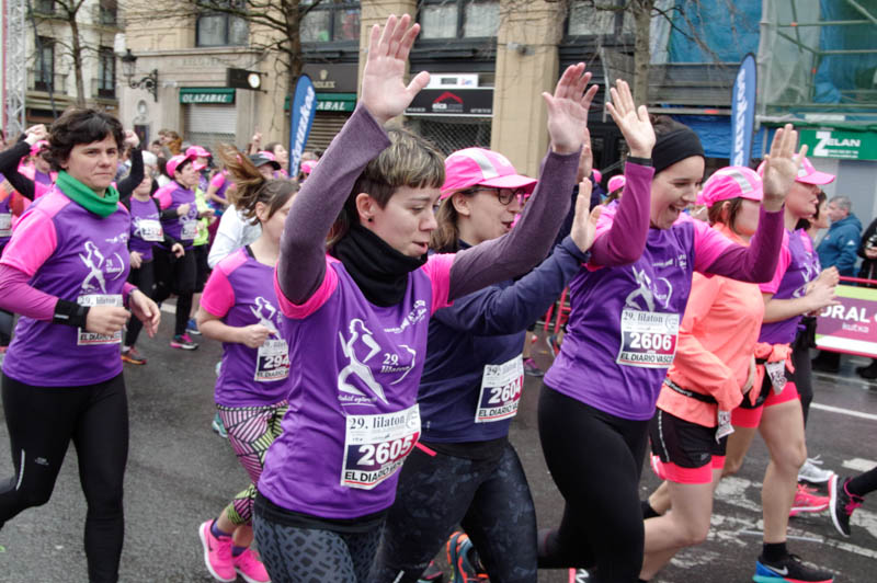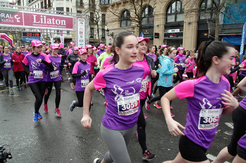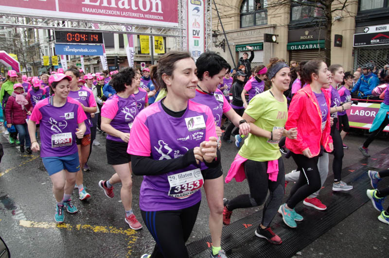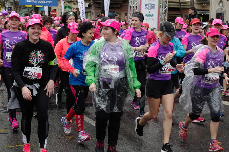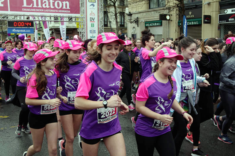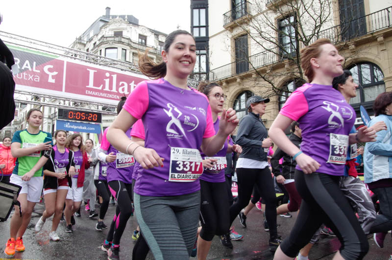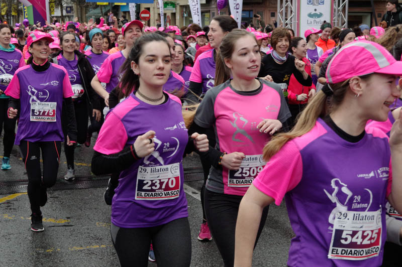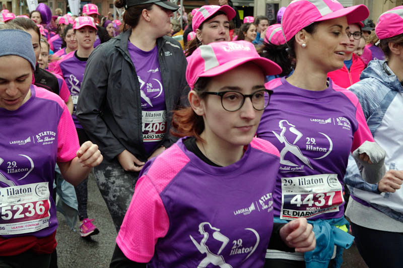 No han llegado a correr las 6.000 inscritas pero la Lilatón de hoy ha batido récords con más de 5.200 participantes y eso que ha transcurrido bajo la lluvia. Hecho que no ha servido para desmoralizar a las corredoras, que viven esta cita deportiva y reivindicativa como una verdadera fiesta. De hecho empieza con un calentamiento a base de zumba y termina con un lilapote que puede alargar la jornada todo lo que se quiera.