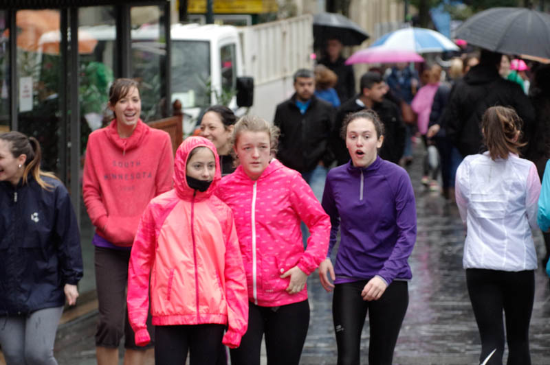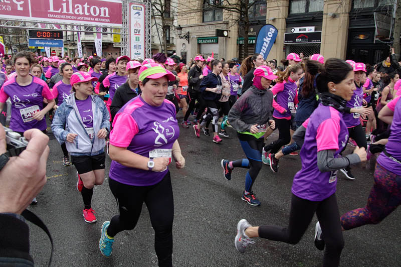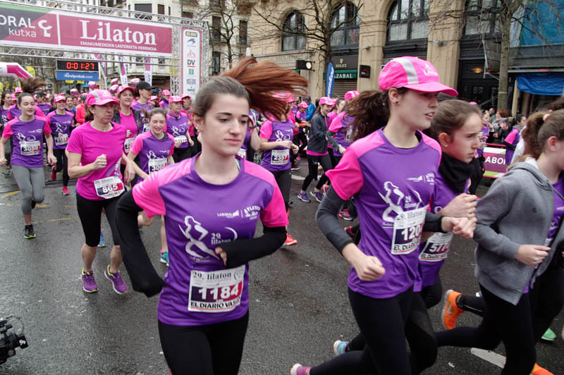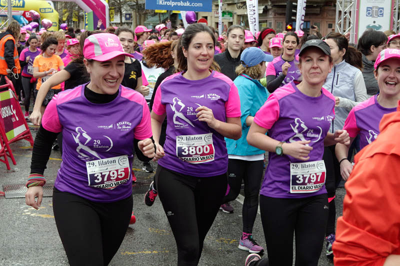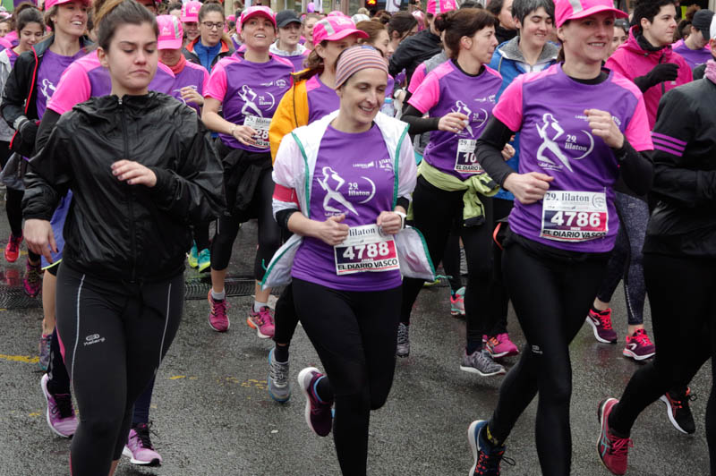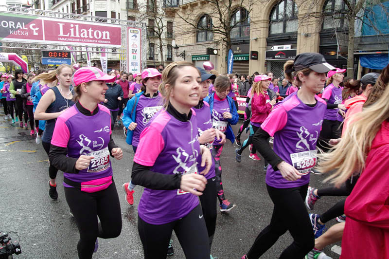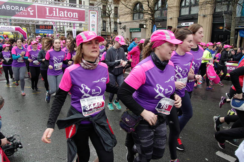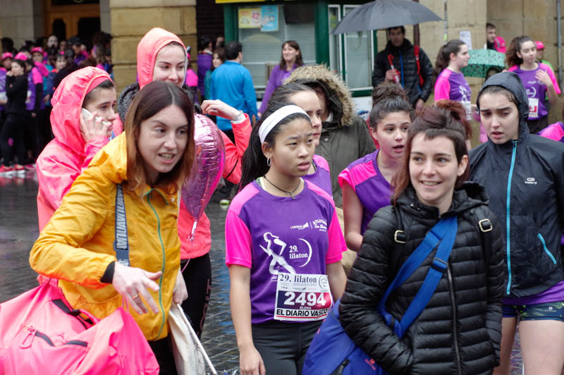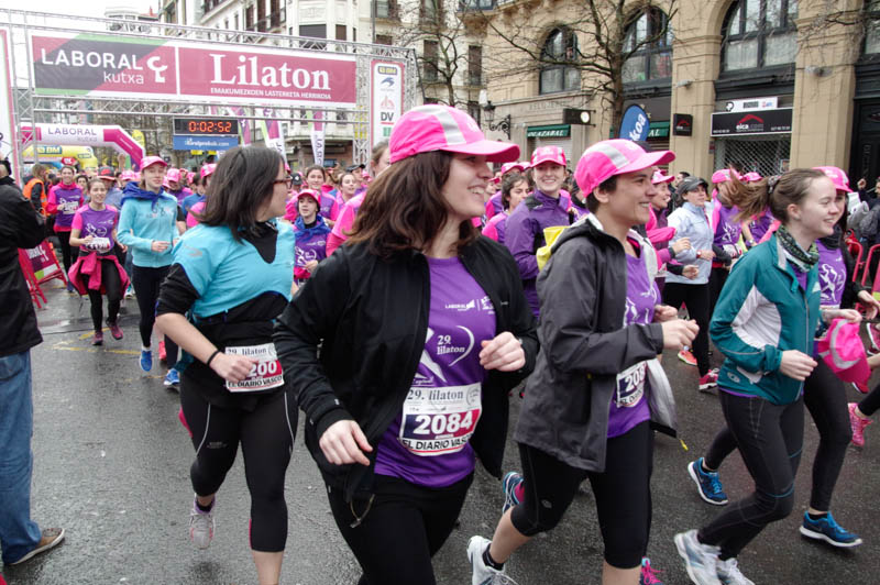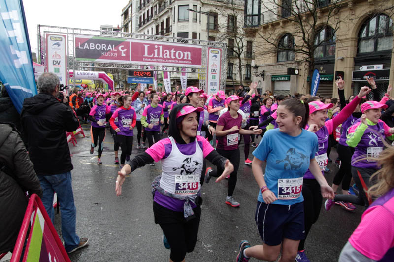 No han llegado a correr las 6.000 inscritas pero la Lilatón de hoy ha batido récords con más de 5.200 participantes y eso que ha transcurrido bajo la lluvia. Hecho que no ha servido para desmoralizar a las corredoras, que viven esta cita deportiva y reivindicativa como una verdadera fiesta. De hecho empieza con un calentamiento a base de zumba y termina con un lilapote que puede alargar la jornada todo lo que se quiera.