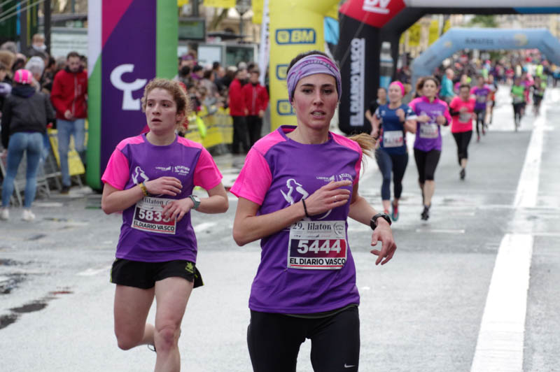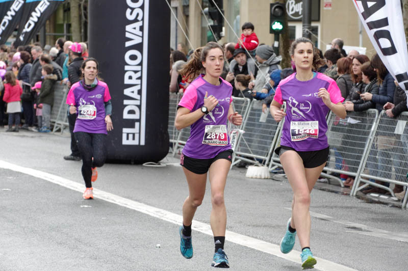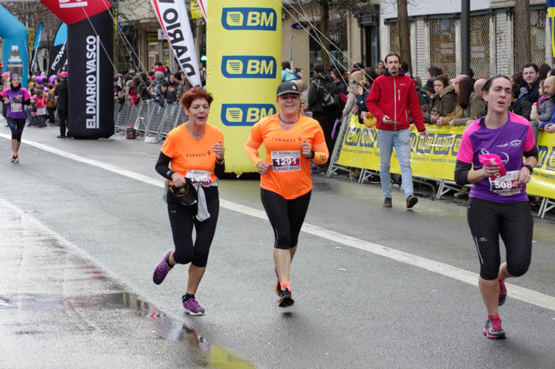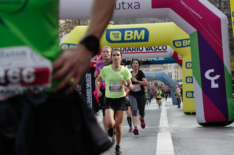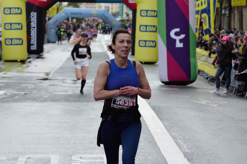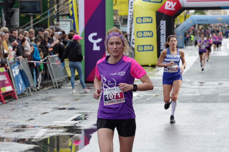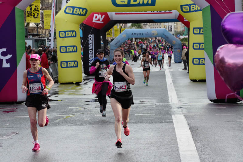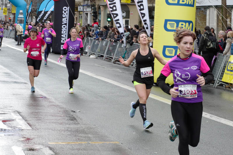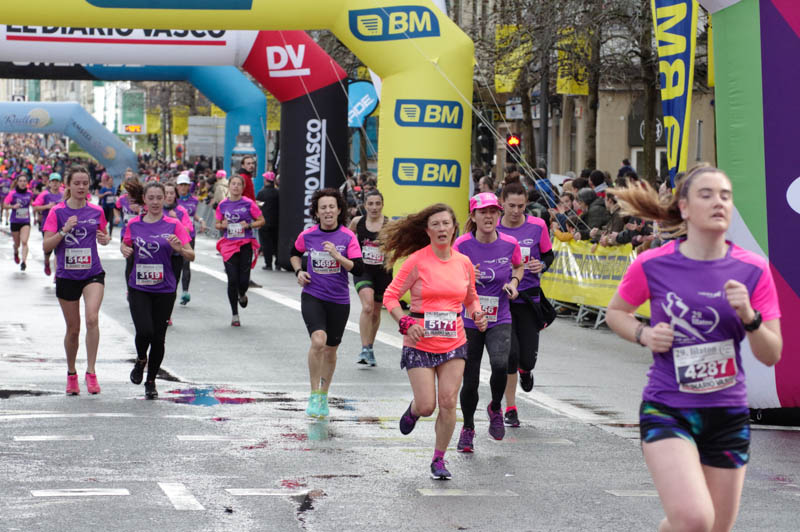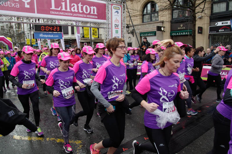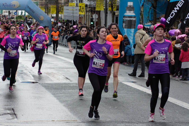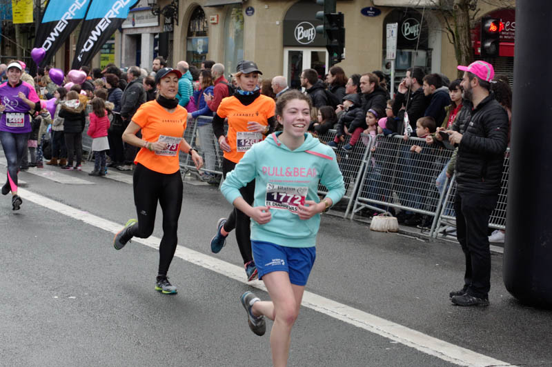 La primera en llegar a la meta tras haber corrido los cinco kilómetros ha sido la donostiarra Lorea Ayala con un tiempo de 00:18:07 seguida doce segundos después por la vecina de Irun Marina González y por Izaro Rubio, de Ordizia. La cuarta ha sido una veterana, Lourdes Colomo, de Zizurkil, con una crono de 00:19:19.