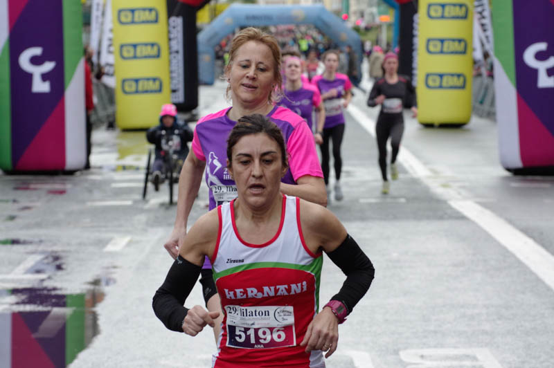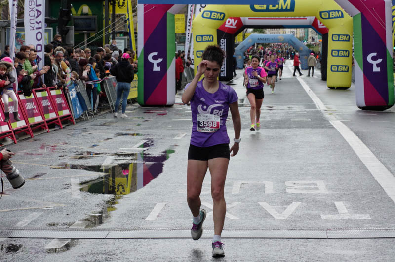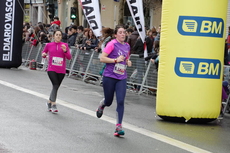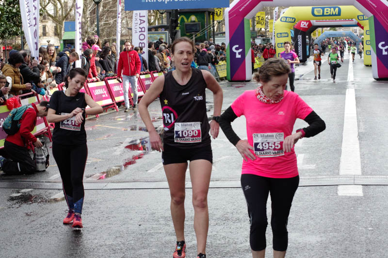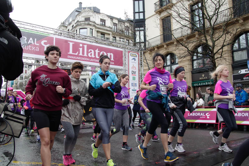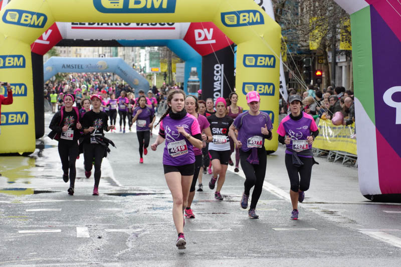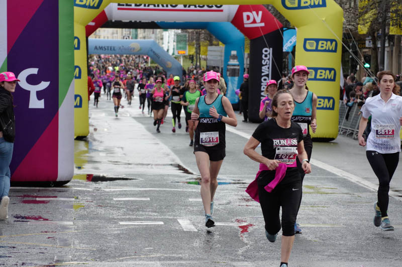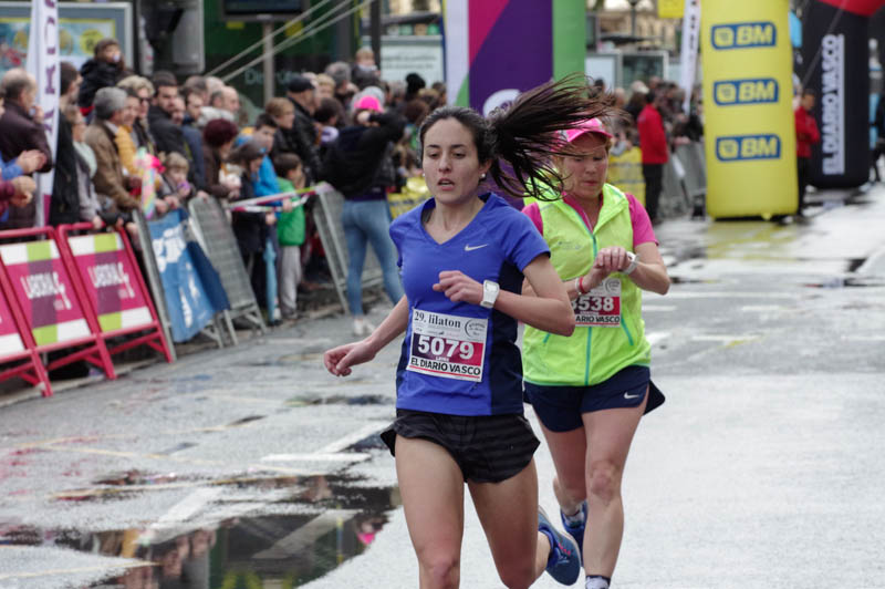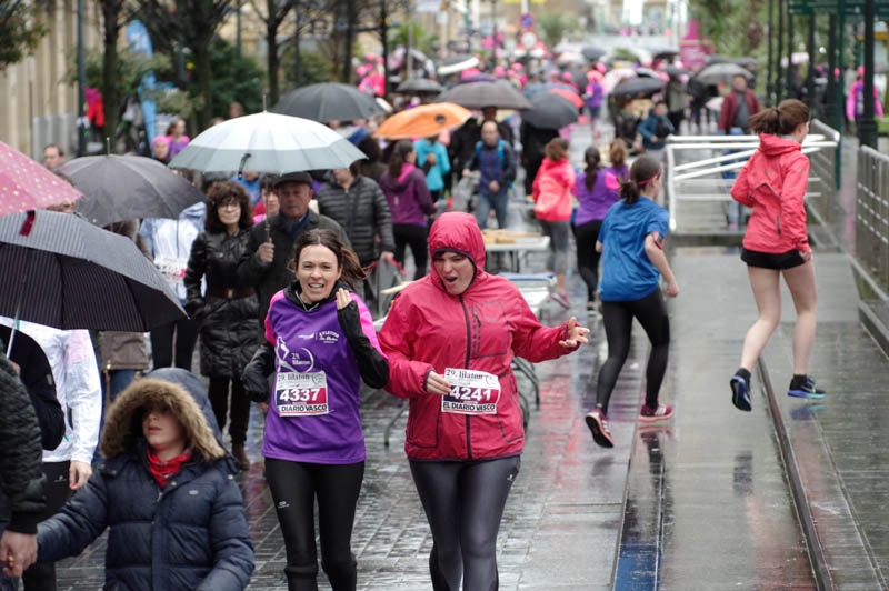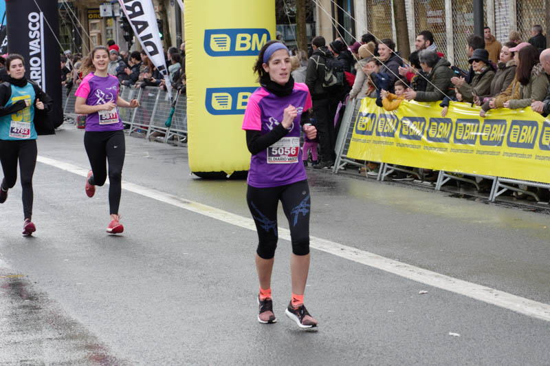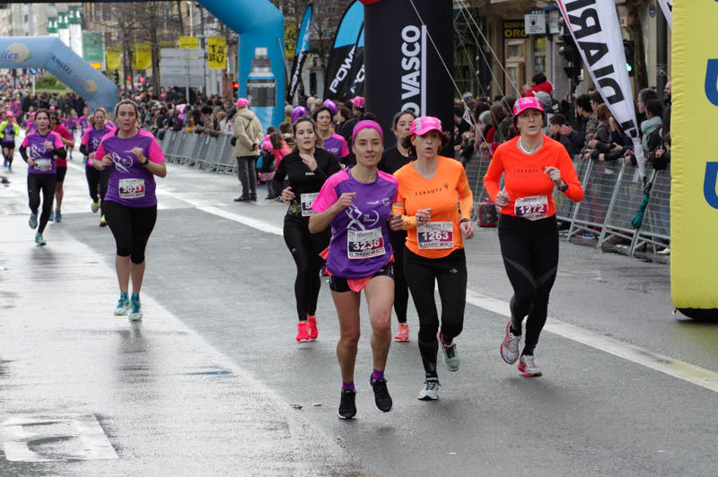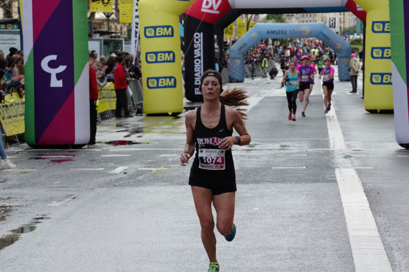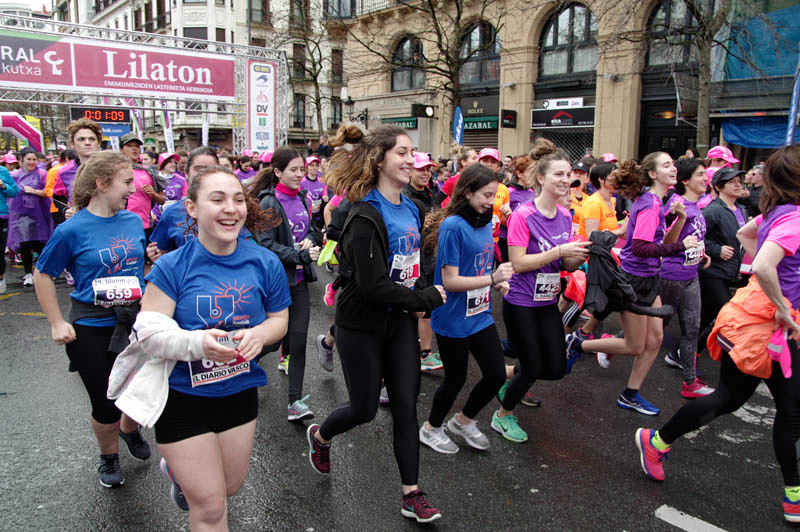 La primera en llegar a la meta tras haber corrido los cinco kilómetros ha sido la donostiarra Lorea Ayala con un tiempo de 00:18:07 seguida doce segundos después por la vecina de Irun Marina González y por Izaro Rubio, de Ordizia. La cuarta ha sido una veterana, Lourdes Colomo, de Zizurkil, con una crono de 00:19:19.