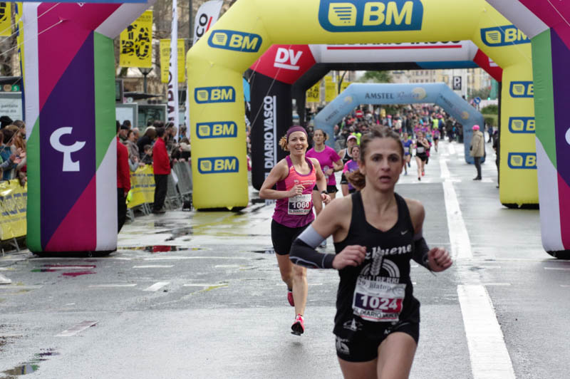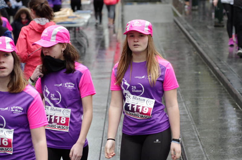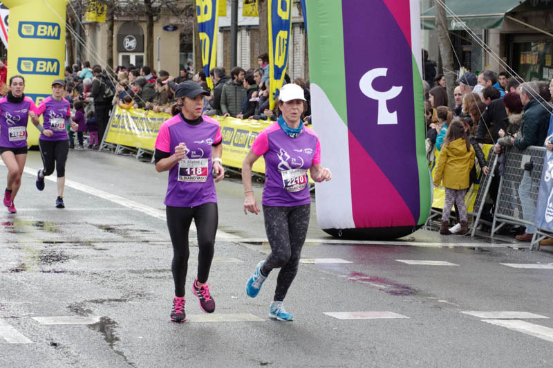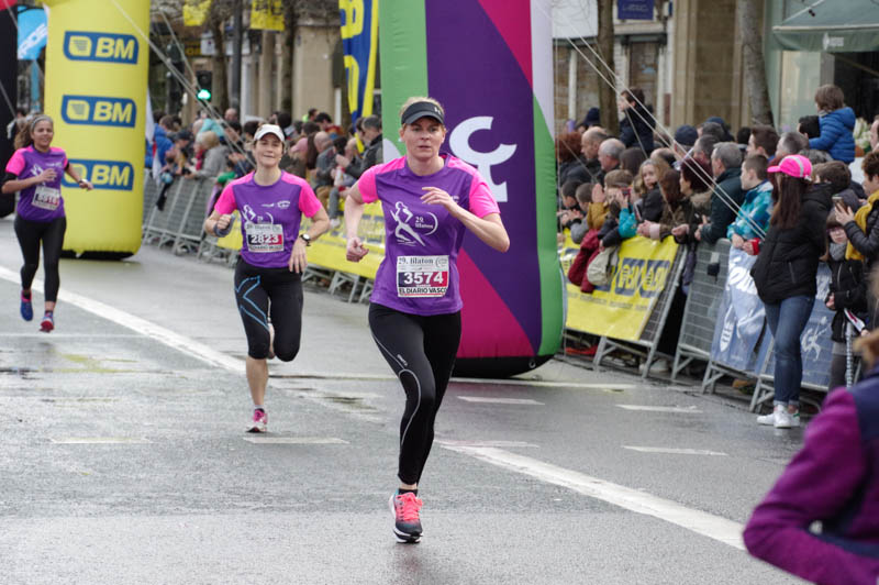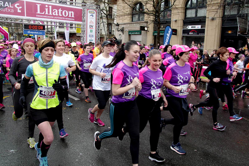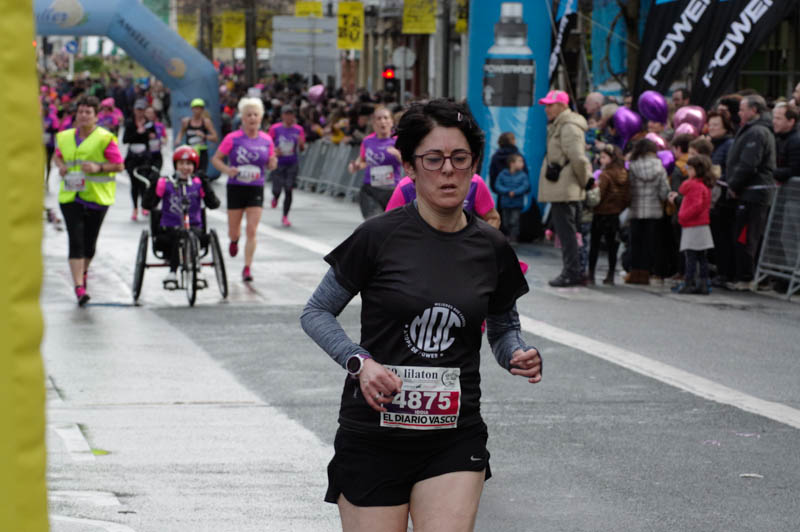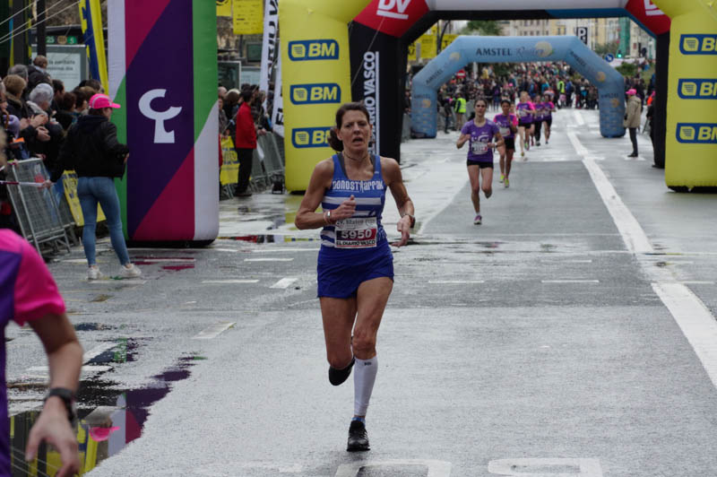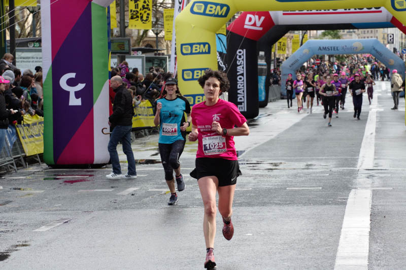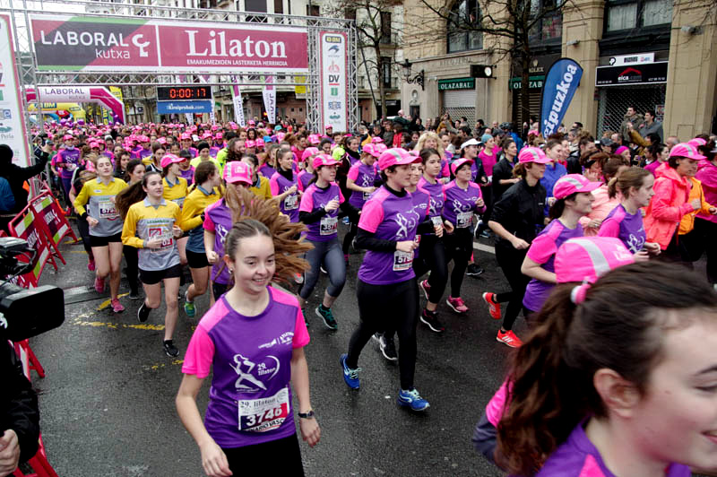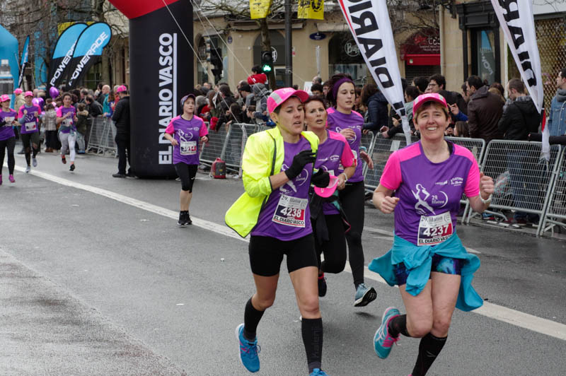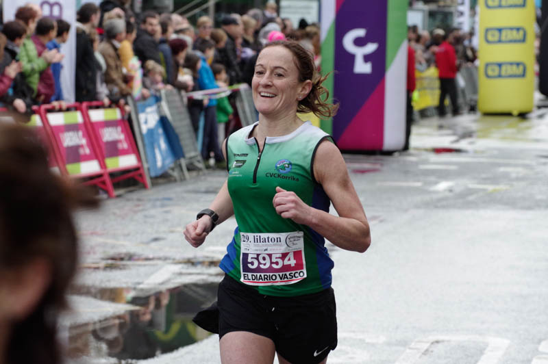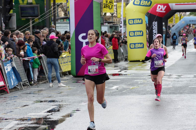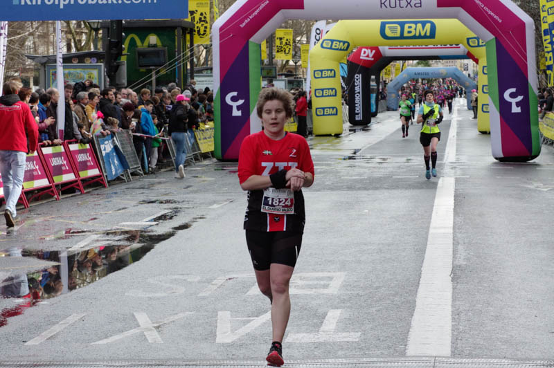 La primera en llegar a la meta tras haber corrido los cinco kilómetros ha sido la donostiarra Lorea Ayala con un tiempo de 00:18:07 seguida doce segundos después por la vecina de Irun Marina González y por Izaro Rubio, de Ordizia. La cuarta ha sido una veterana, Lourdes Colomo, de Zizurkil, con una crono de 00:19:19.