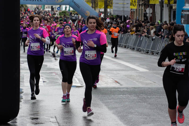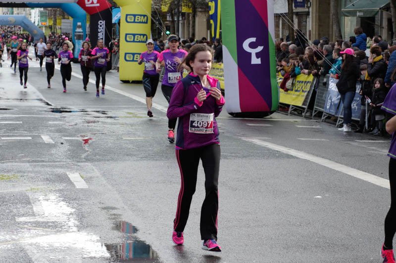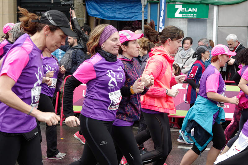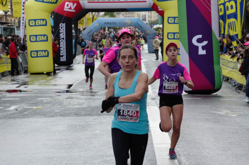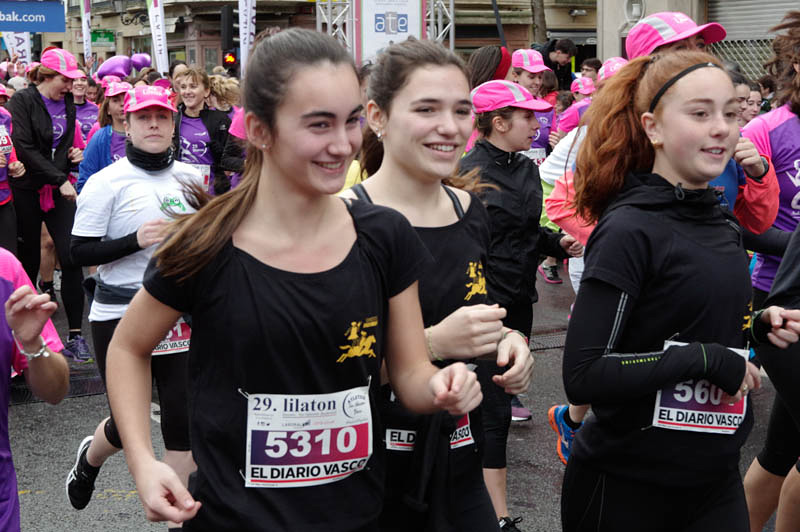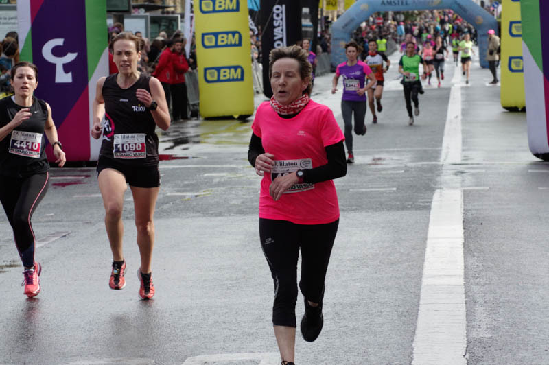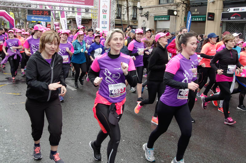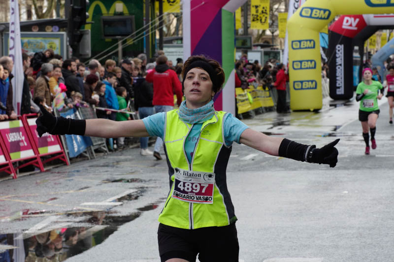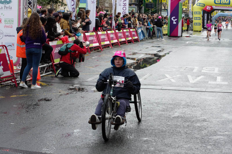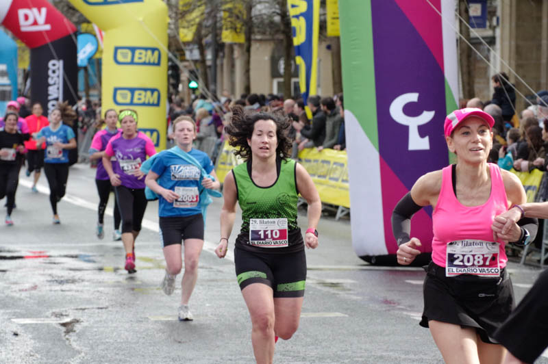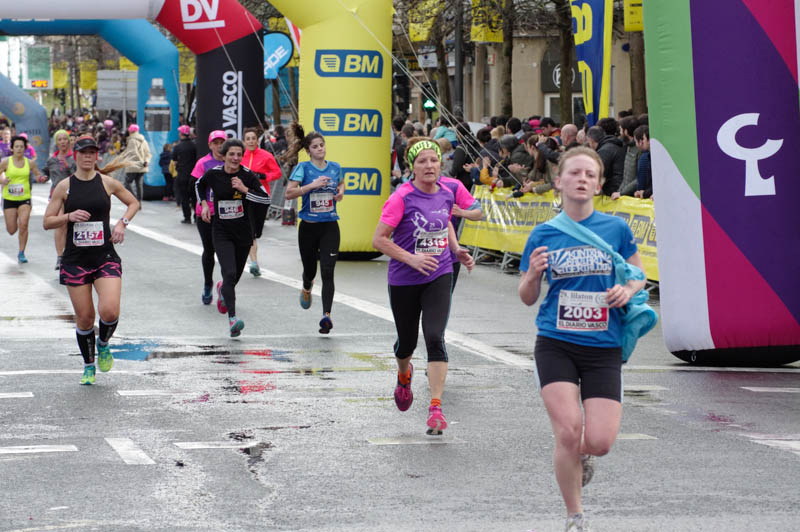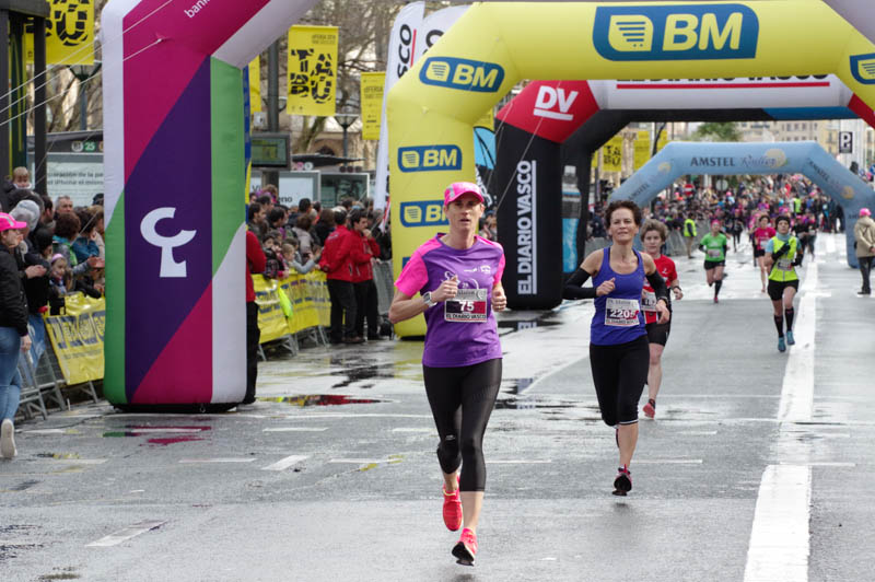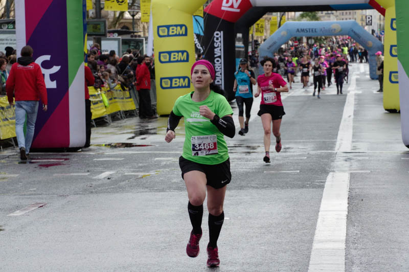 La primera en llegar a la meta tras haber corrido los cinco kilómetros ha sido la donostiarra Lorea Ayala con un tiempo de 00:18:07 seguida doce segundos después por la vecina de Irun Marina González y por Izaro Rubio, de Ordizia. La cuarta ha sido una veterana, Lourdes Colomo, de Zizurkil, con una crono de 00:19:19.