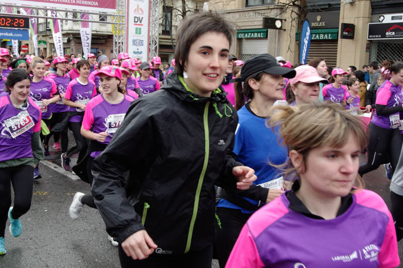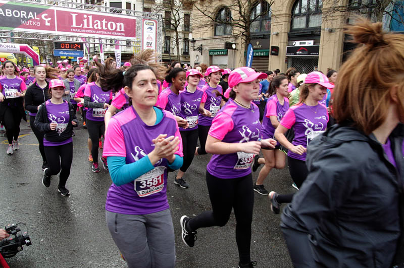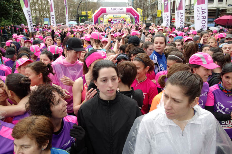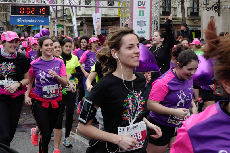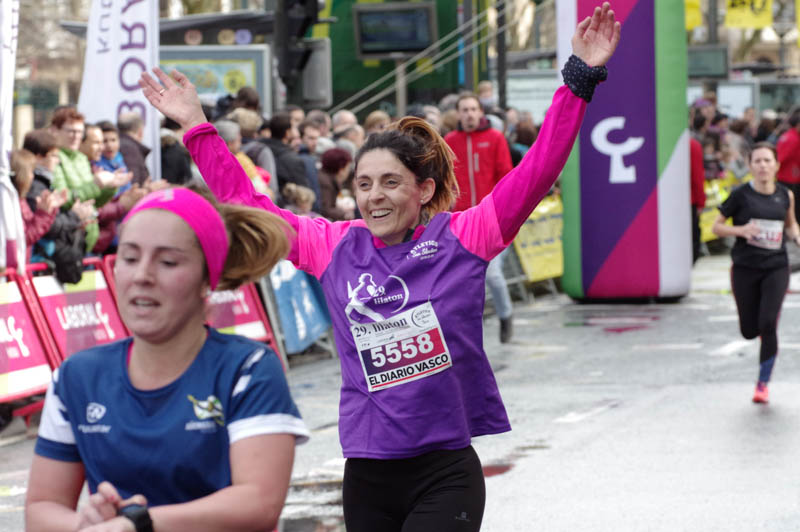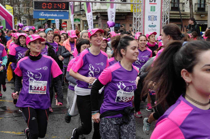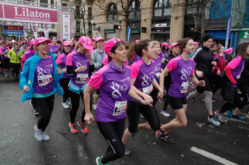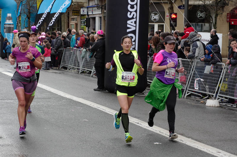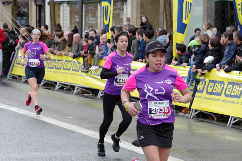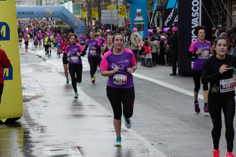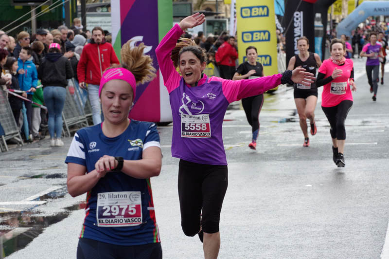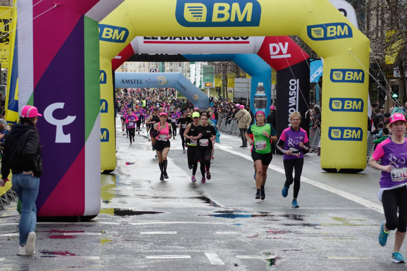 La primera en llegar a la meta tras haber corrido los cinco kilómetros ha sido la donostiarra Lorea Ayala con un tiempo de 00:18:07 seguida doce segundos después por la vecina de Irun Marina González y por Izaro Rubio, de Ordizia. La cuarta ha sido una veterana, Lourdes Colomo, de Zizurkil, con una crono de 00:19:19.
