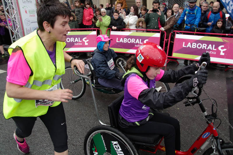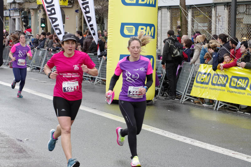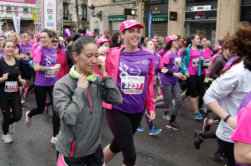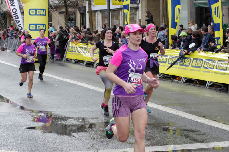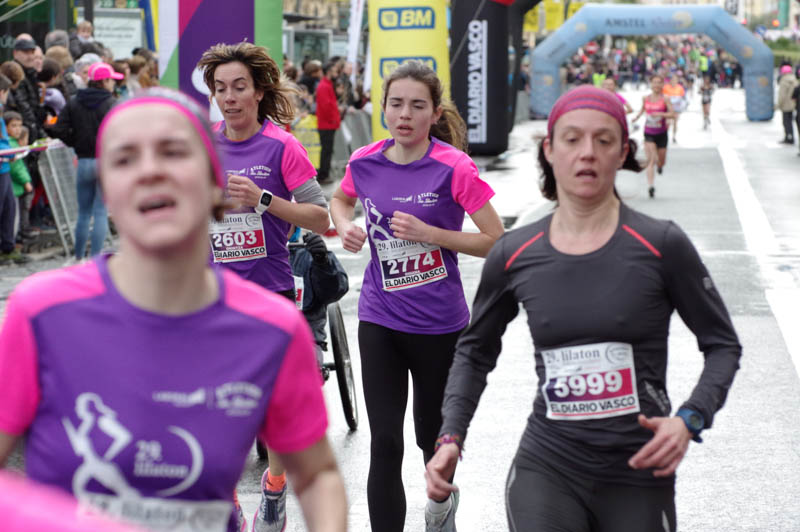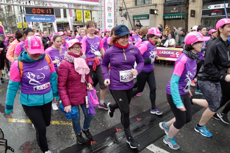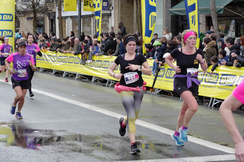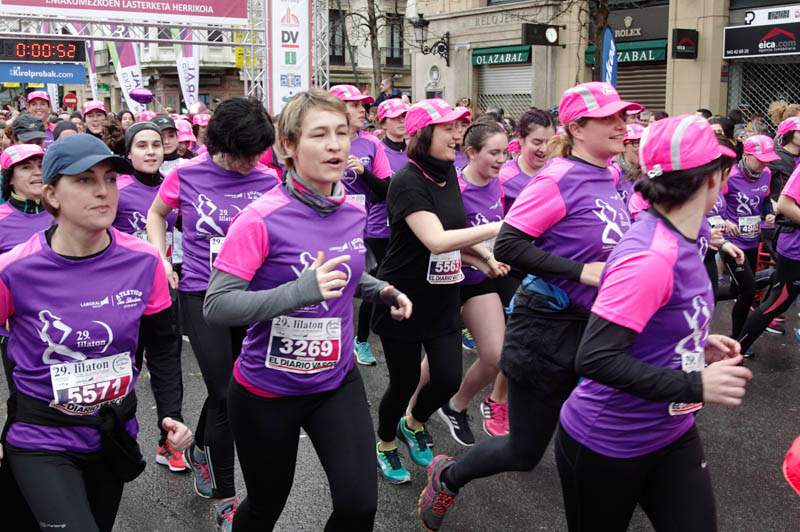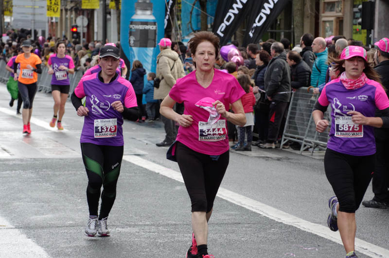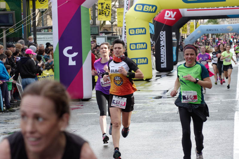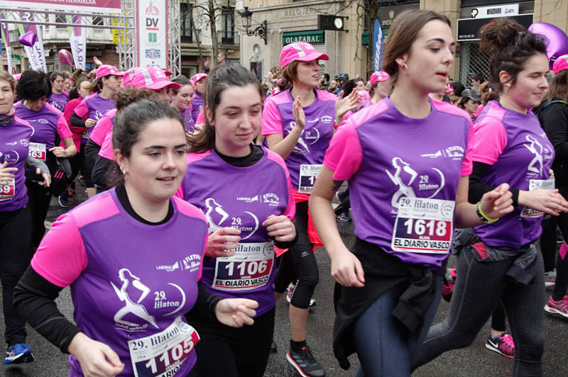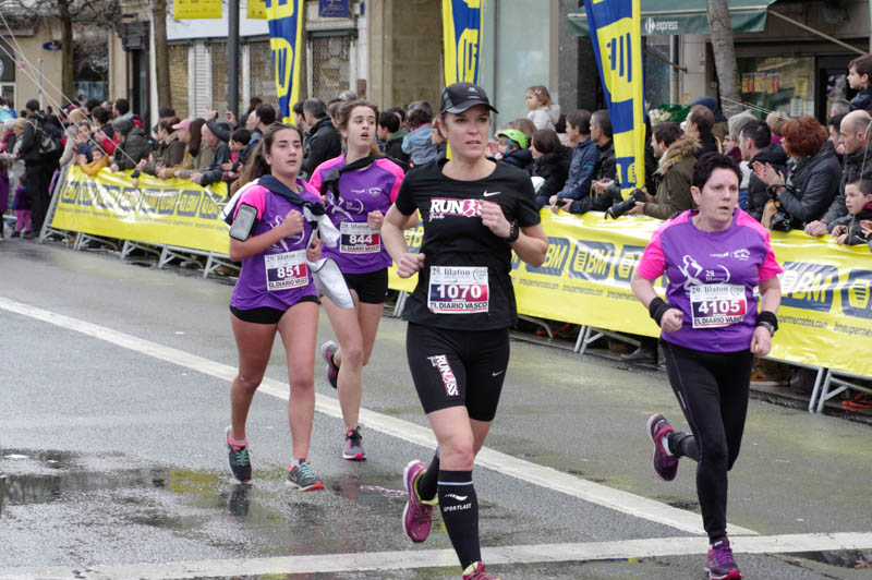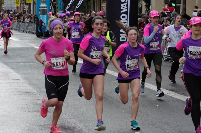 La primera en llegar a la meta tras haber corrido los cinco kilómetros ha sido la donostiarra Lorea Ayala con un tiempo de 00:18:07 seguida doce segundos después por la vecina de Irun Marina González y por Izaro Rubio, de Ordizia. La cuarta ha sido una veterana, Lourdes Colomo, de Zizurkil, con una crono de 00:19:19.